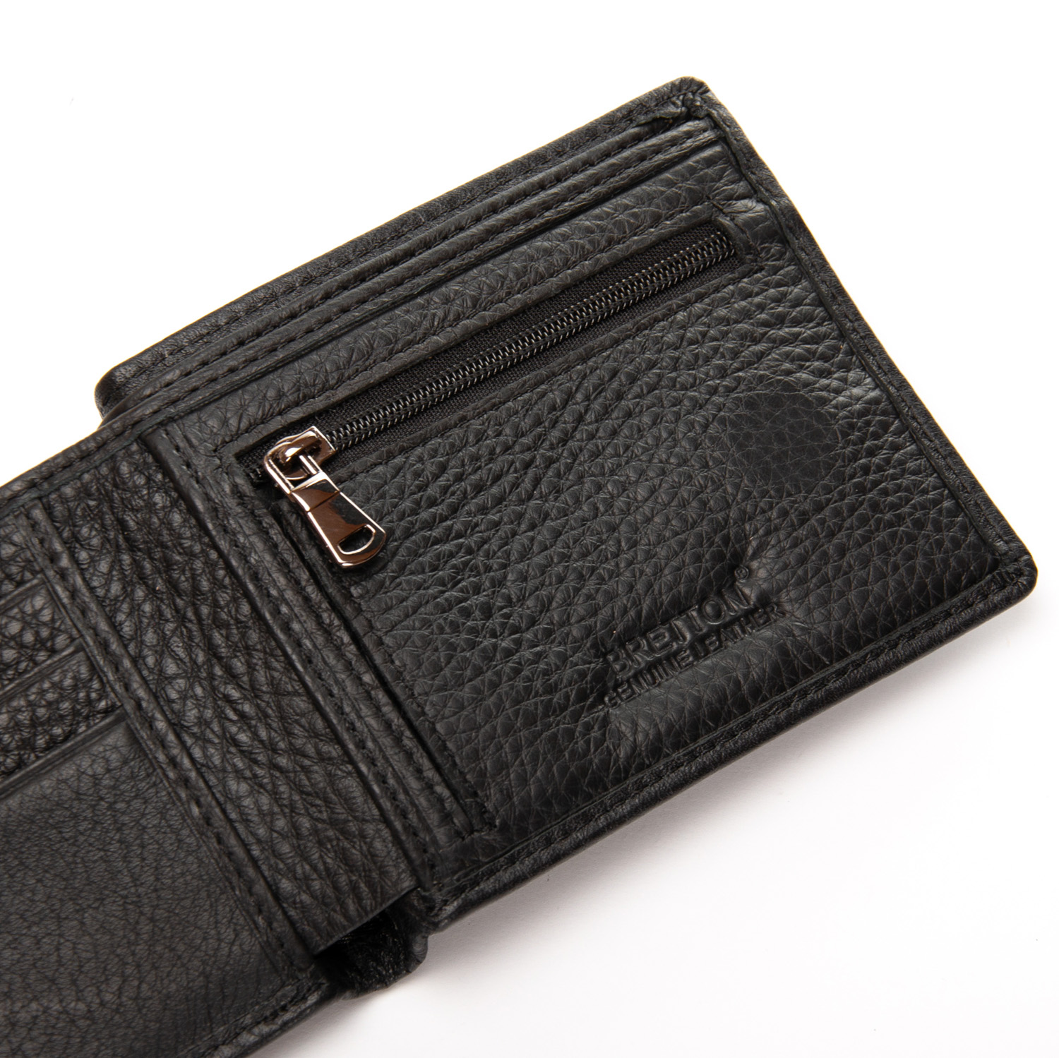 Изготовлен из мягкой натуральной кожи. Внутри есть два открытых и одно на молнии отделения для банкнот, 3 кармана для визитных карт, 2 больших кармана и монетница на молнии.