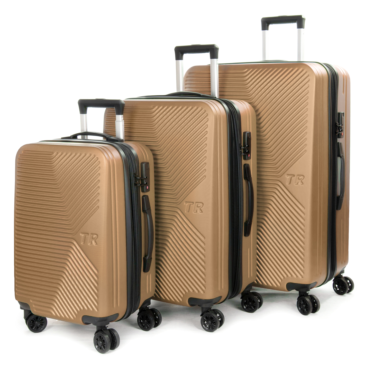 Комплект из трех пластиковых чемоданов.
