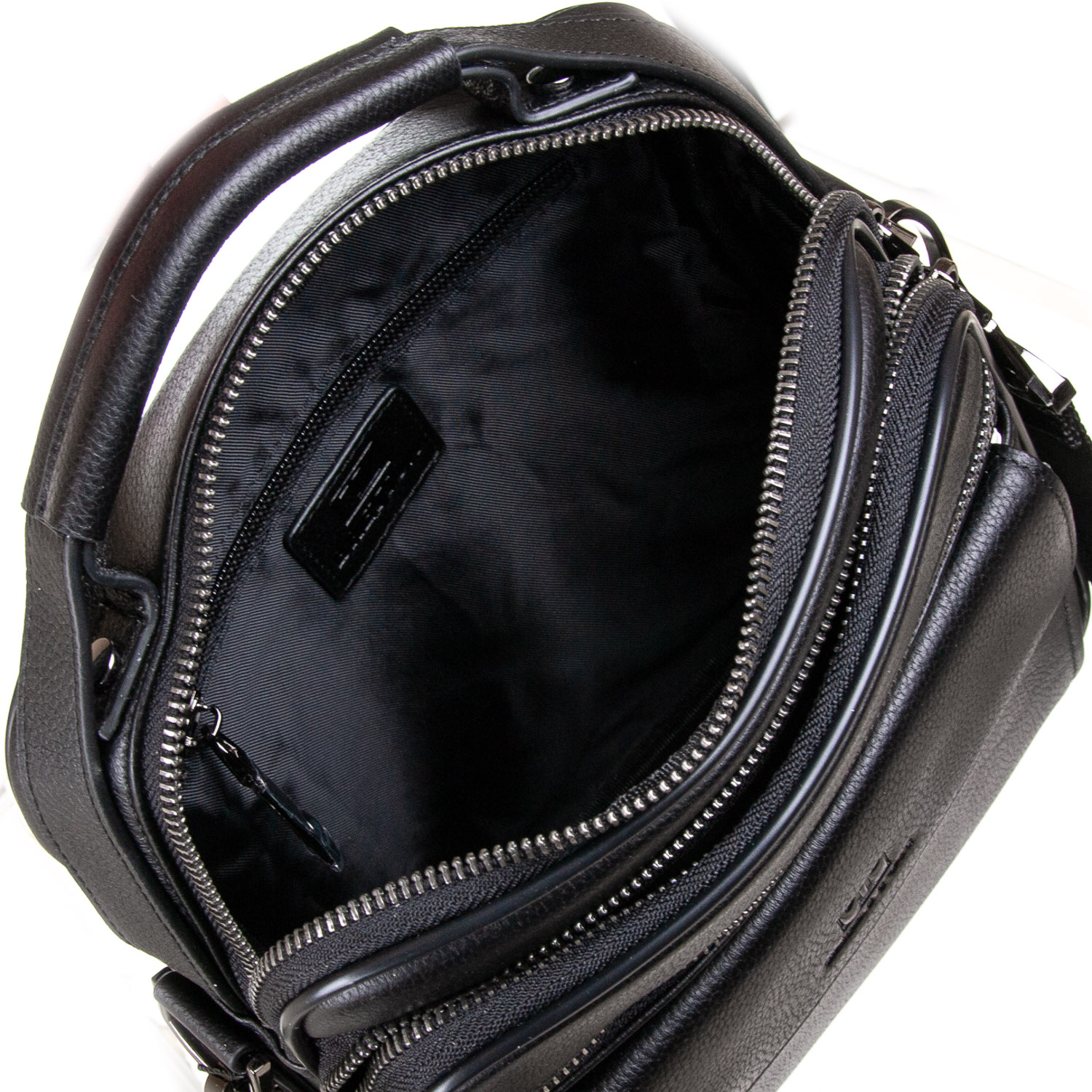 Два отделения, закрываются на молнию. Внутри основного отделения есть боковой открытый карман и карман на молнии. На фасаде сумки есть два больших кармана: один закрывается на клапан, а второй на молнию. На обратной стороне расположен карман на молнии.