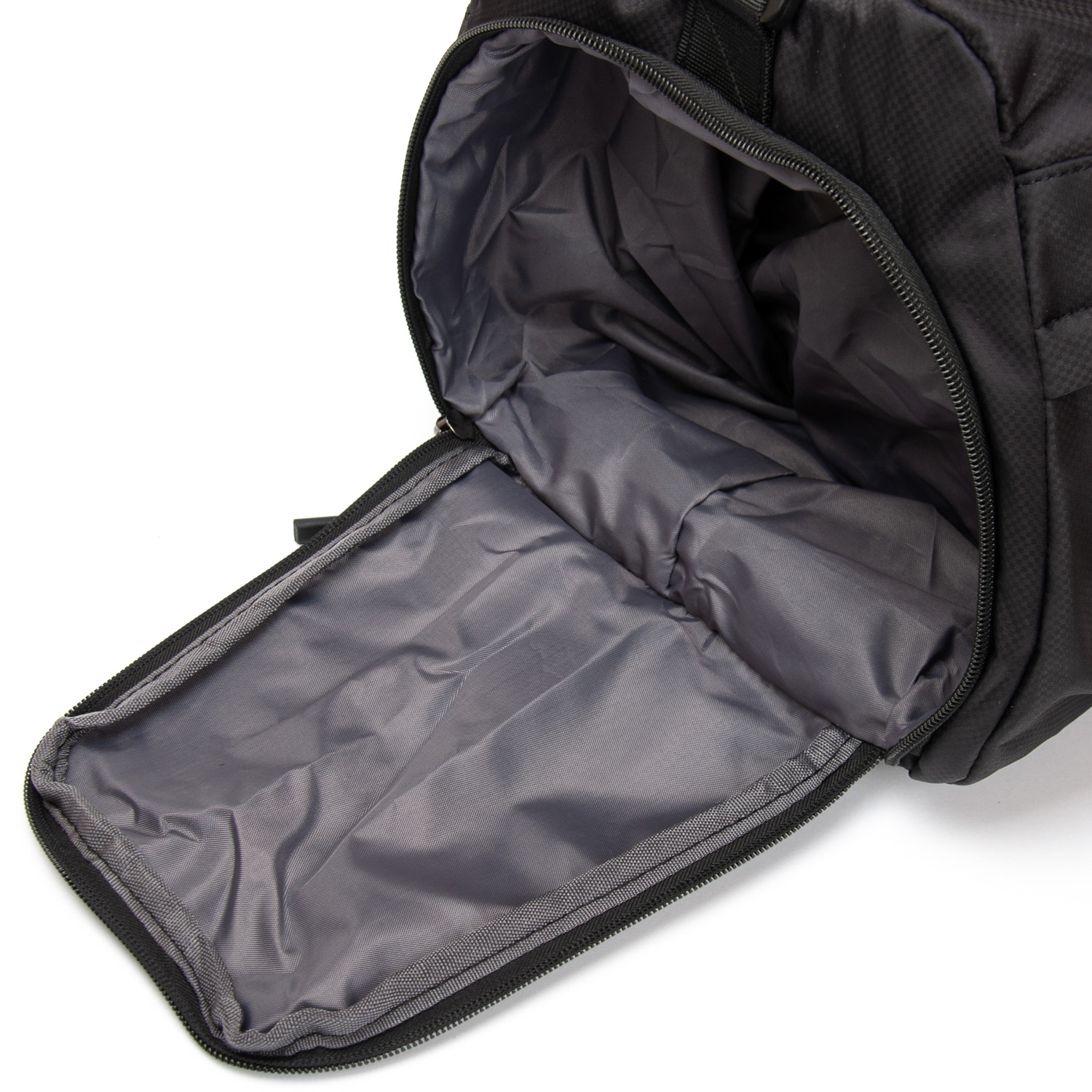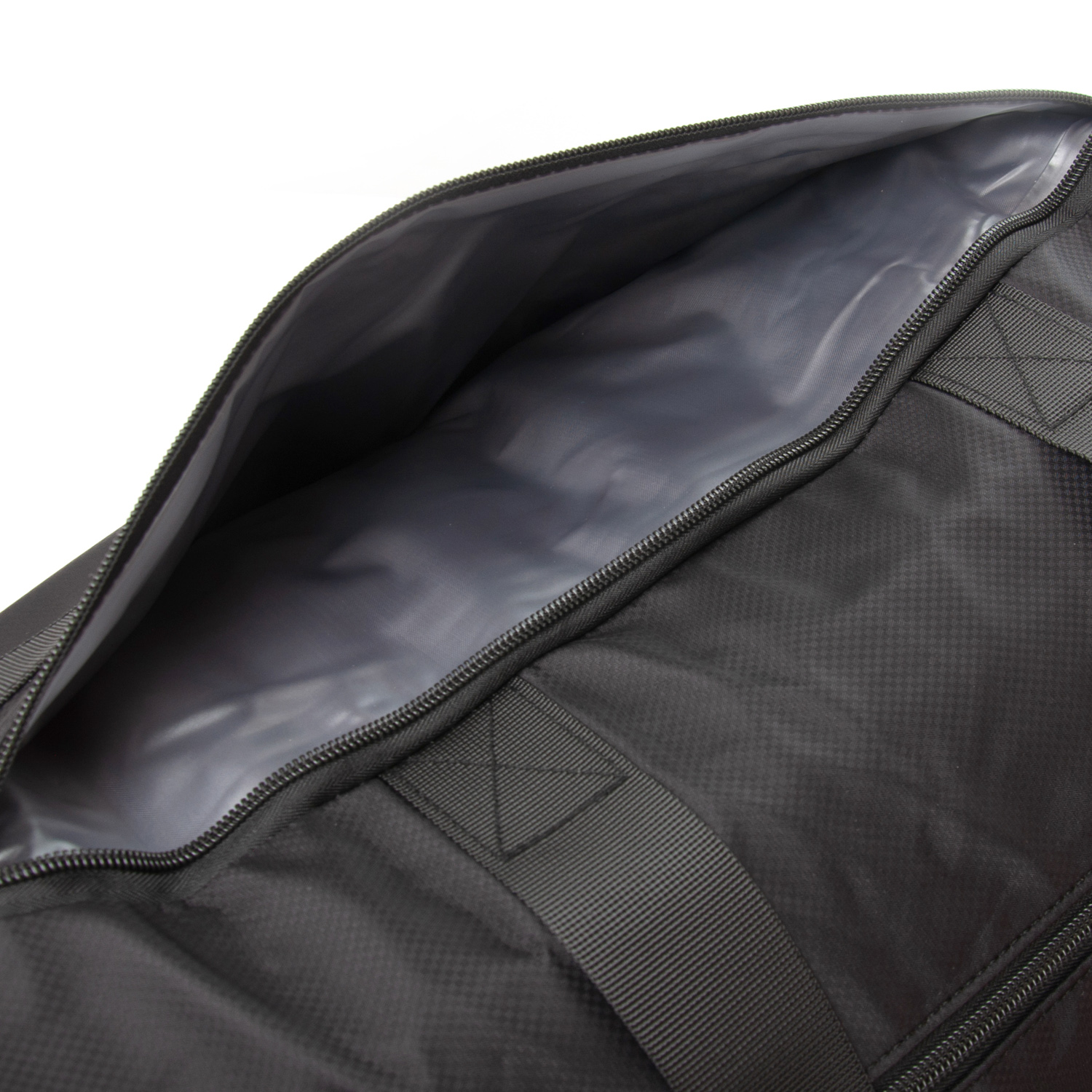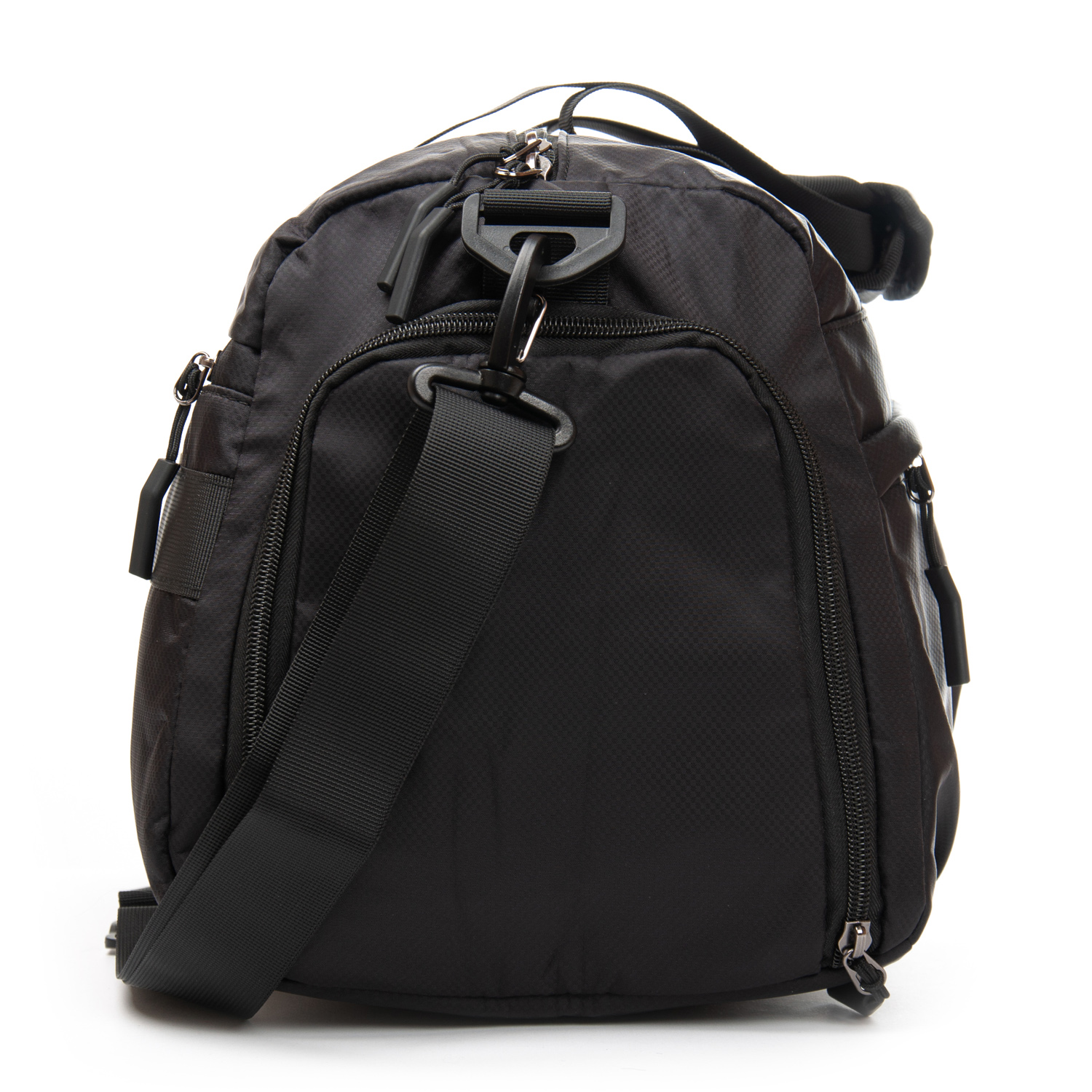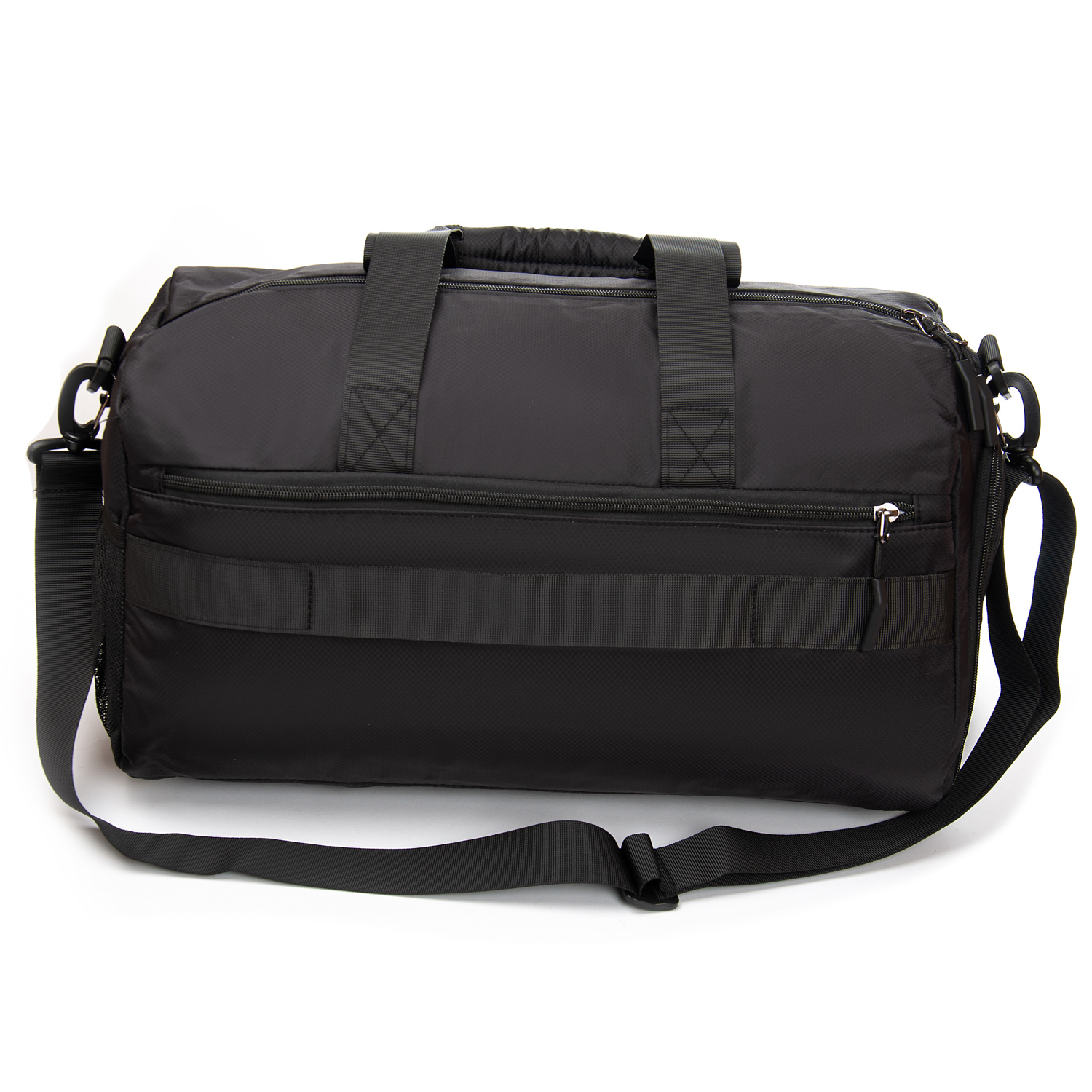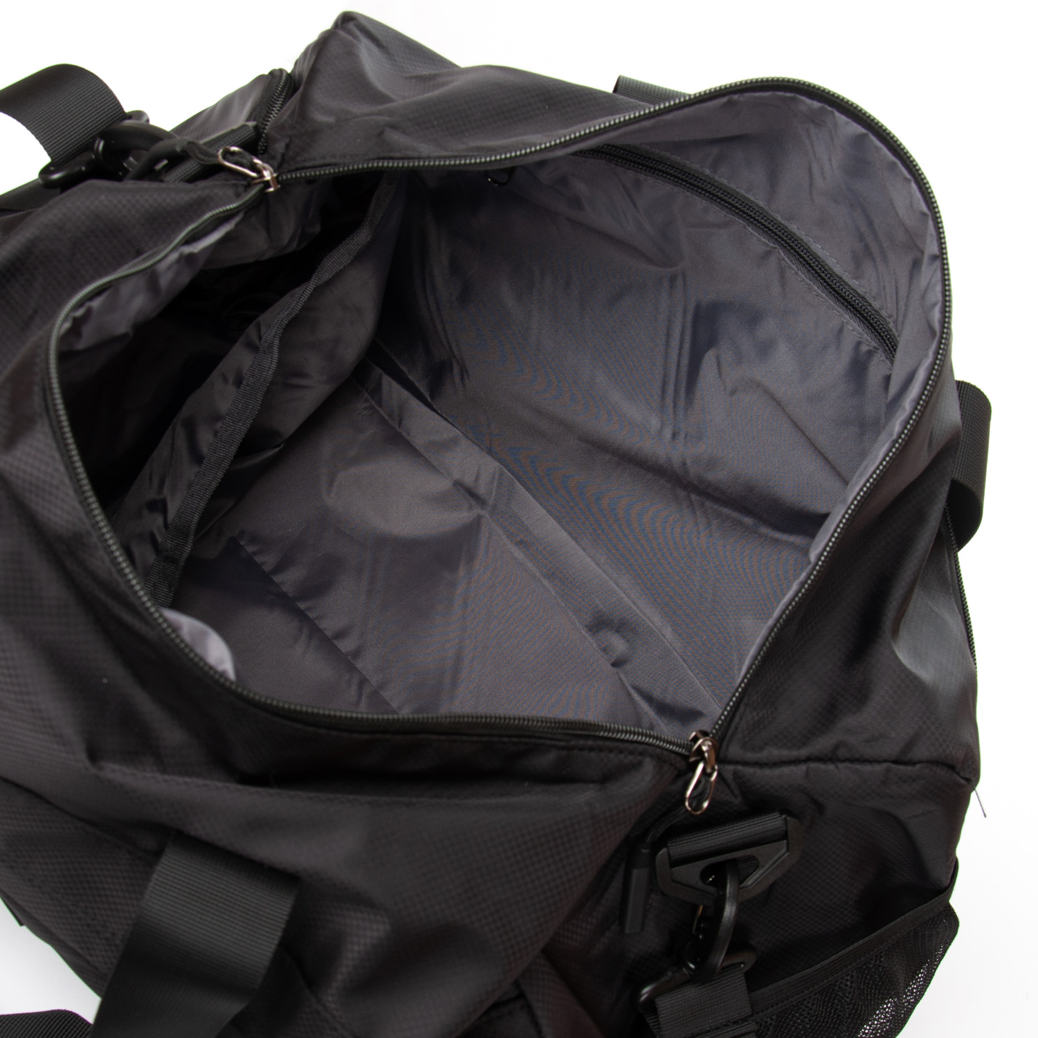 Одно отделение, закрывается на молнию. Внутри отделения есть карман на молнии и двойной открытый карман. На фасаде находится карман на молнии. На обратной стороне расположен большой карман на молнии с герметичной подкладкой. На торцах сумки расположены карман для обуви и открытый карман.