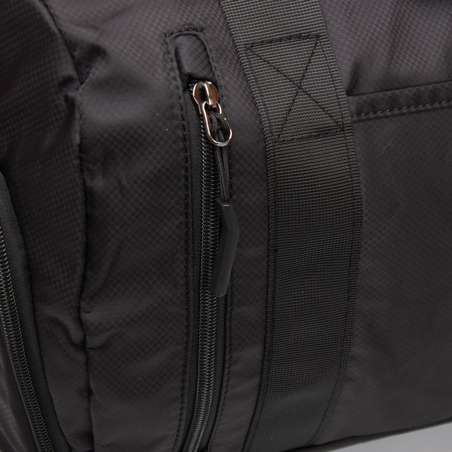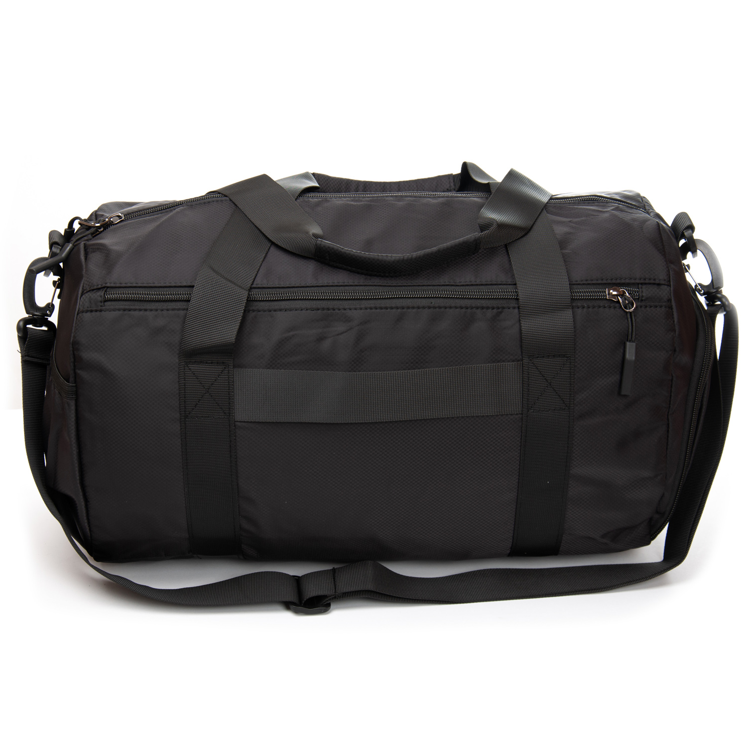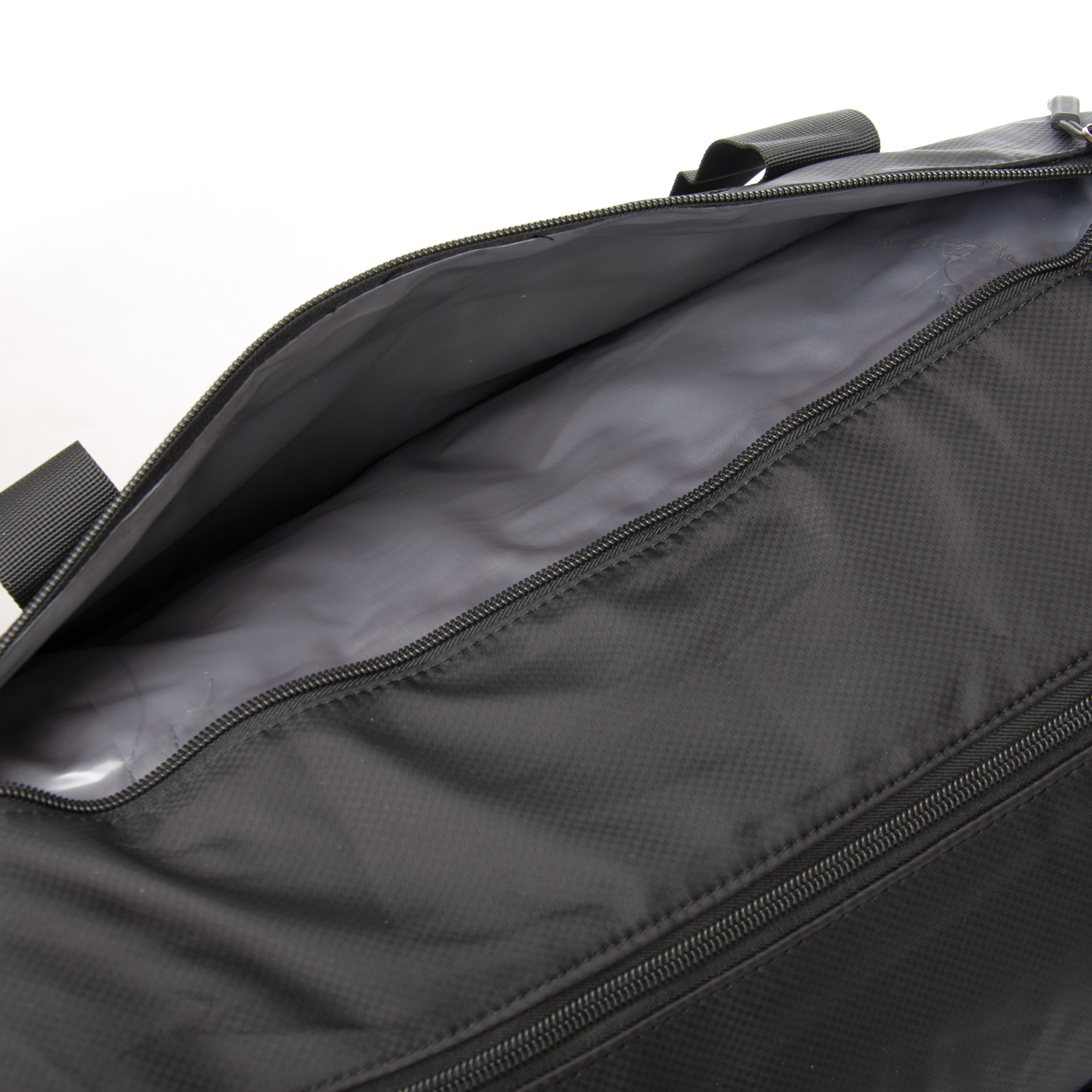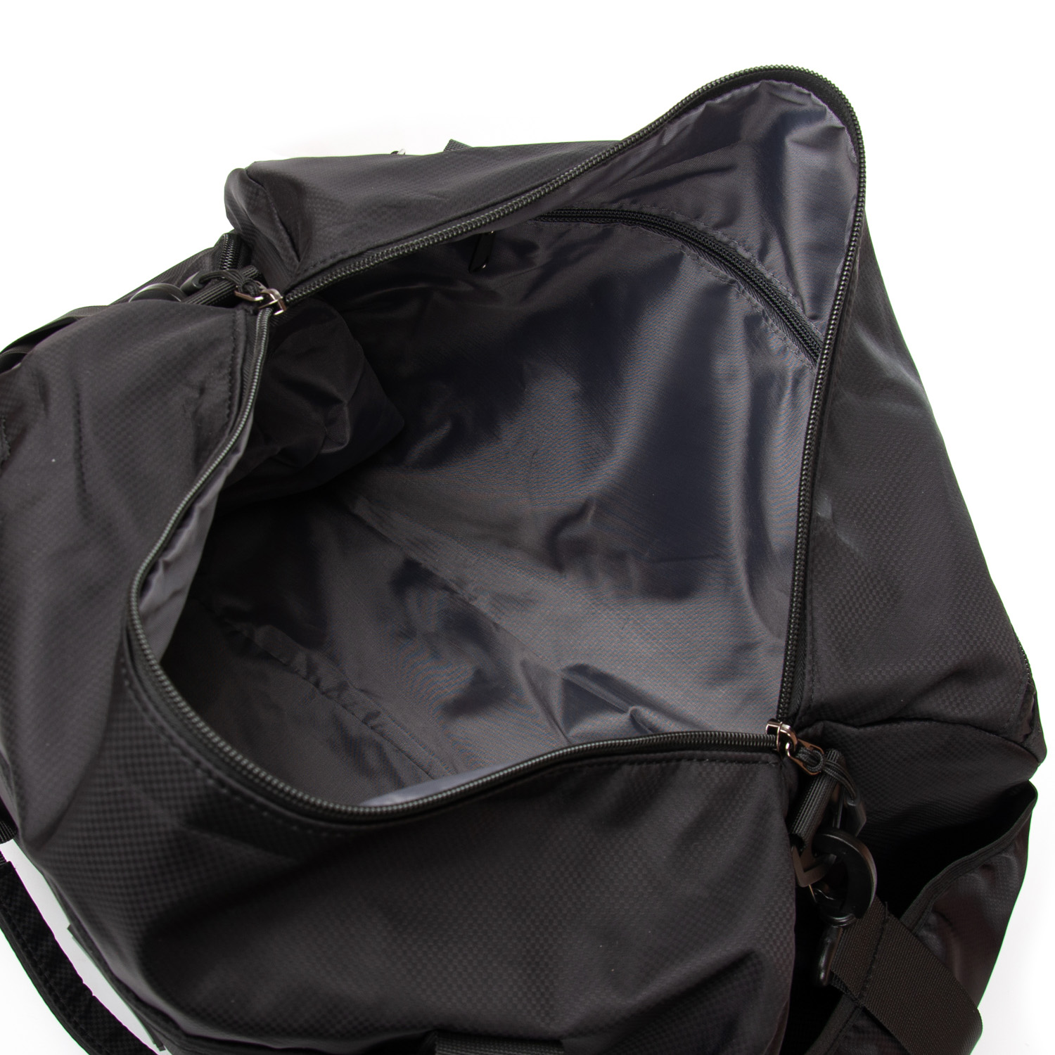 Одно отделение, закрывается на молнию. Внутри отделения есть карман на молнии и двойной открытый карман. На фасаде находится карман на молнии и открытый карман. На обратной стороне расположен большой карман на молнии с герметичной подкладкой. На торцах сумки расположены карман для обуви и открытый карман.