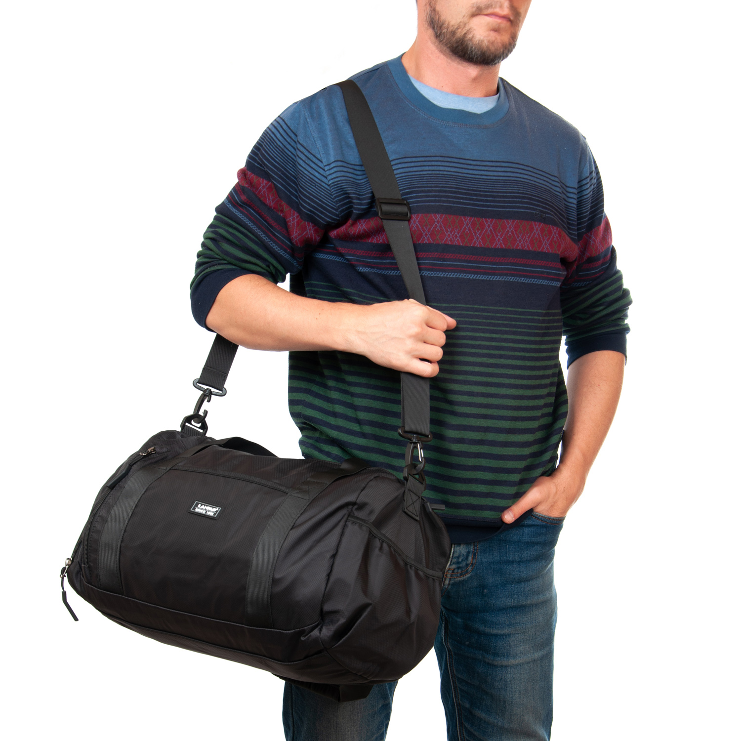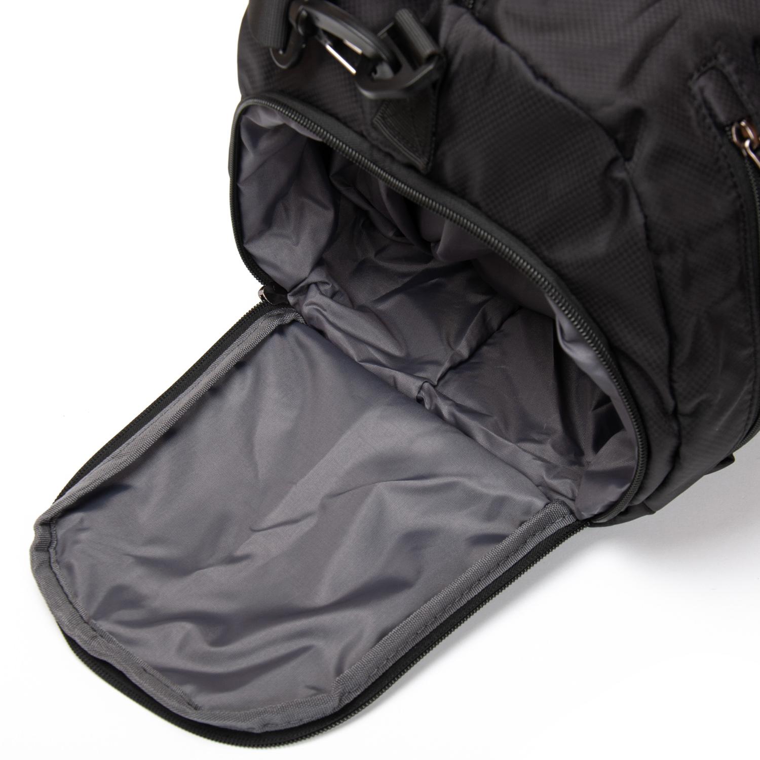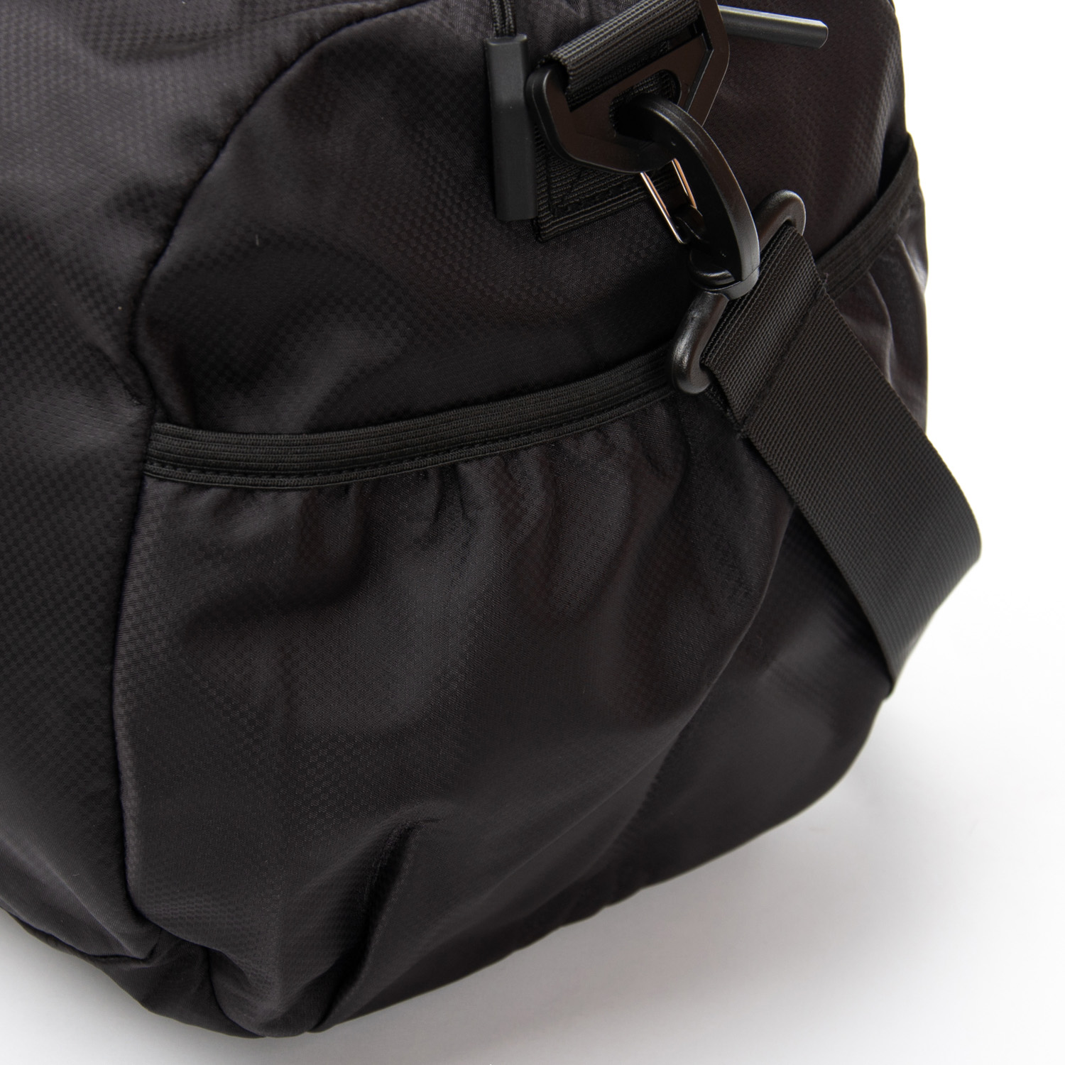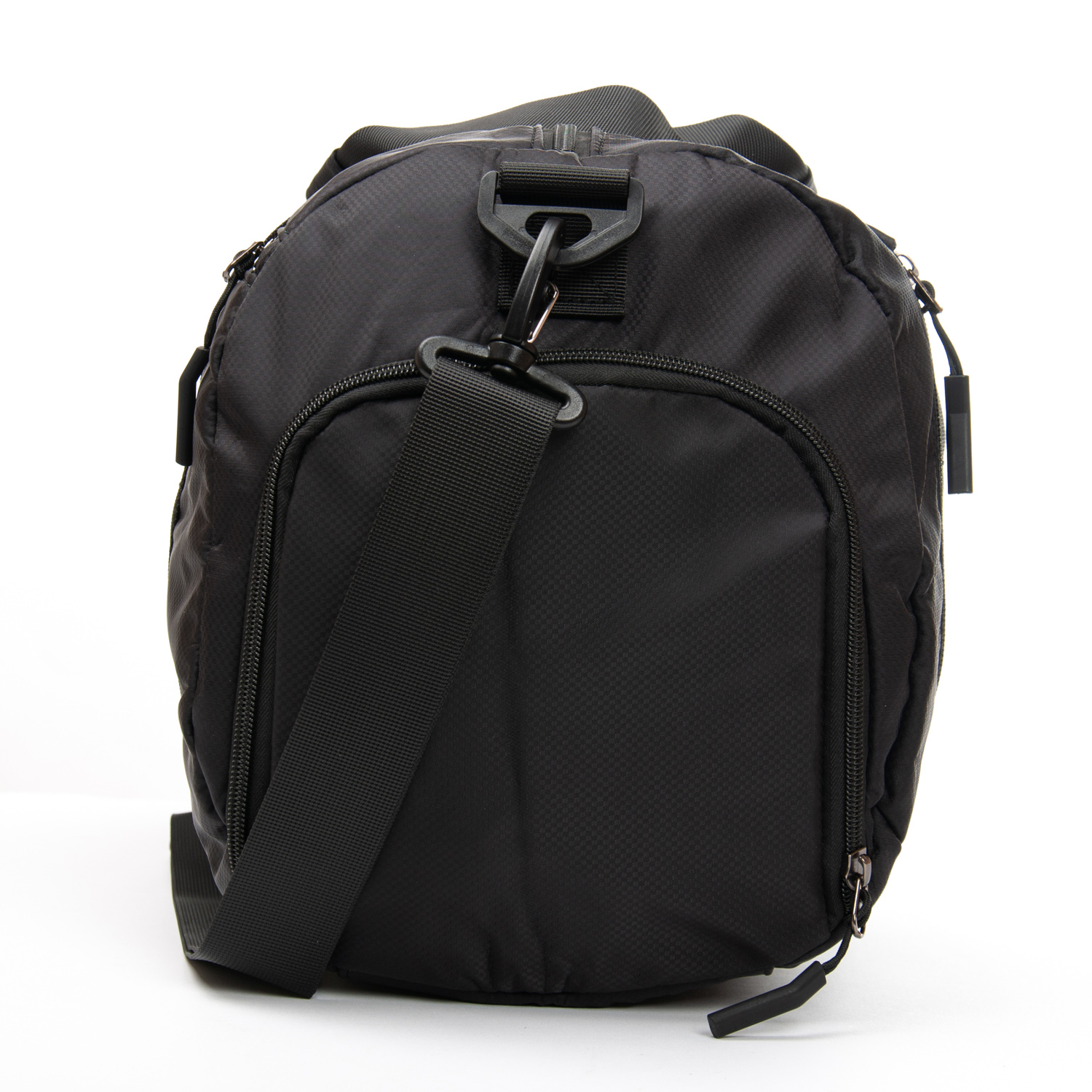 Одно отделение, закрывается на молнию. Внутри отделения есть карман на молнии и двойной открытый карман. На фасаде находится карман на молнии и открытый карман. На обратной стороне расположен большой карман на молнии с герметичной подкладкой. На торцах сумки расположены карман для обуви и открытый карман.