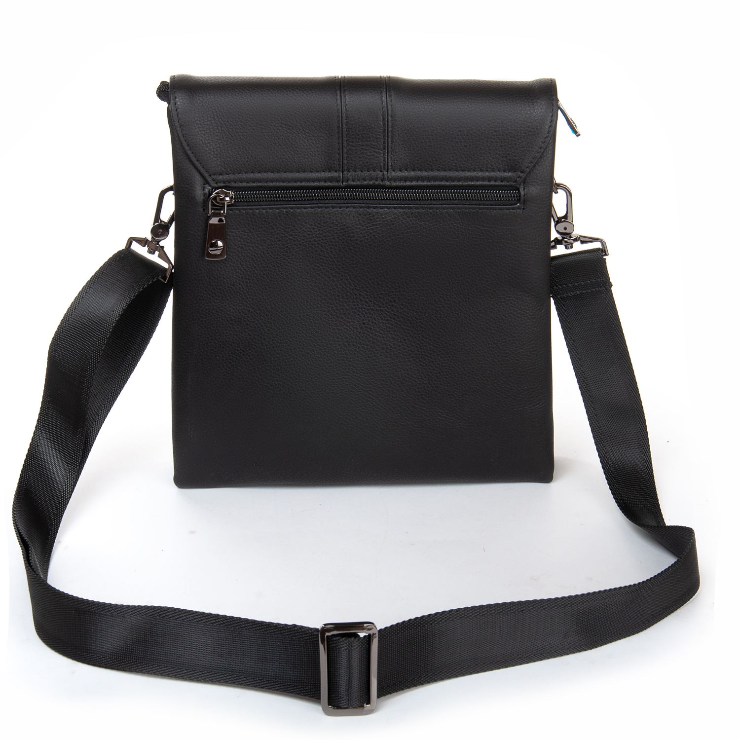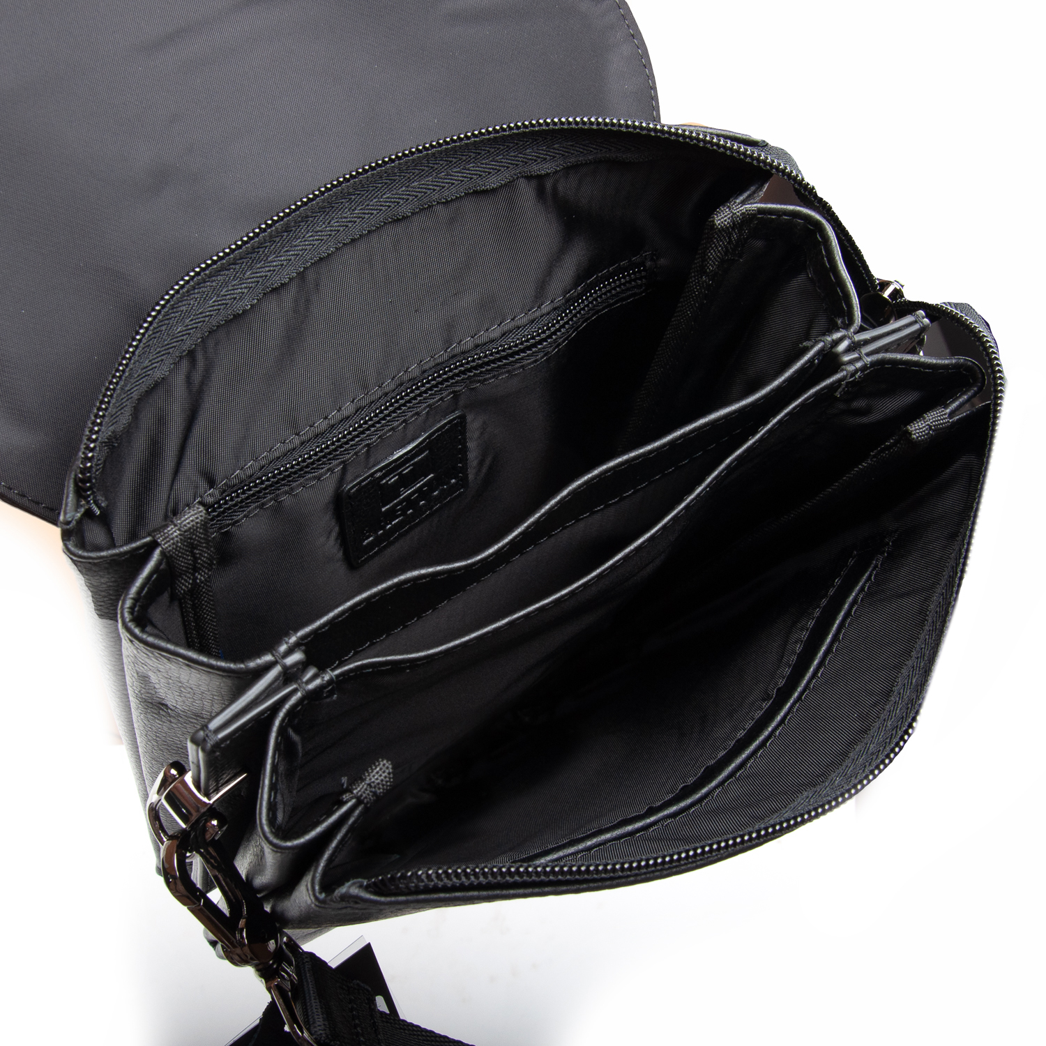 Изготовлена из мягкой натуральной кожи. Под клапаном дополнительно закрывается на молнию. Внутри находятся два отделения, разделенные карманом-перегородкой. Внутри отделений есть открытый карман и боковой карман на молнии. Снаружи сумки на обратной стороне сумки находится карман на молнии.