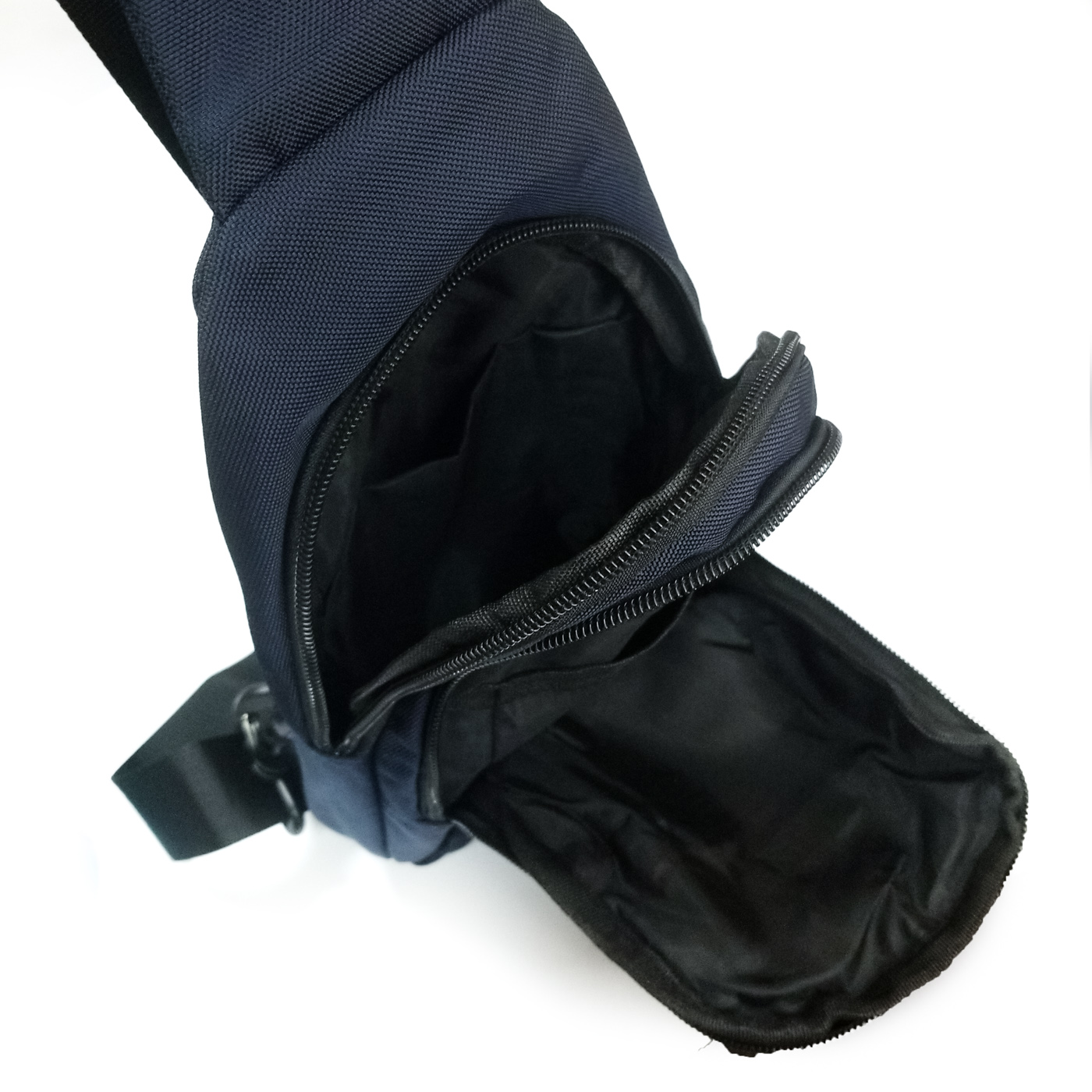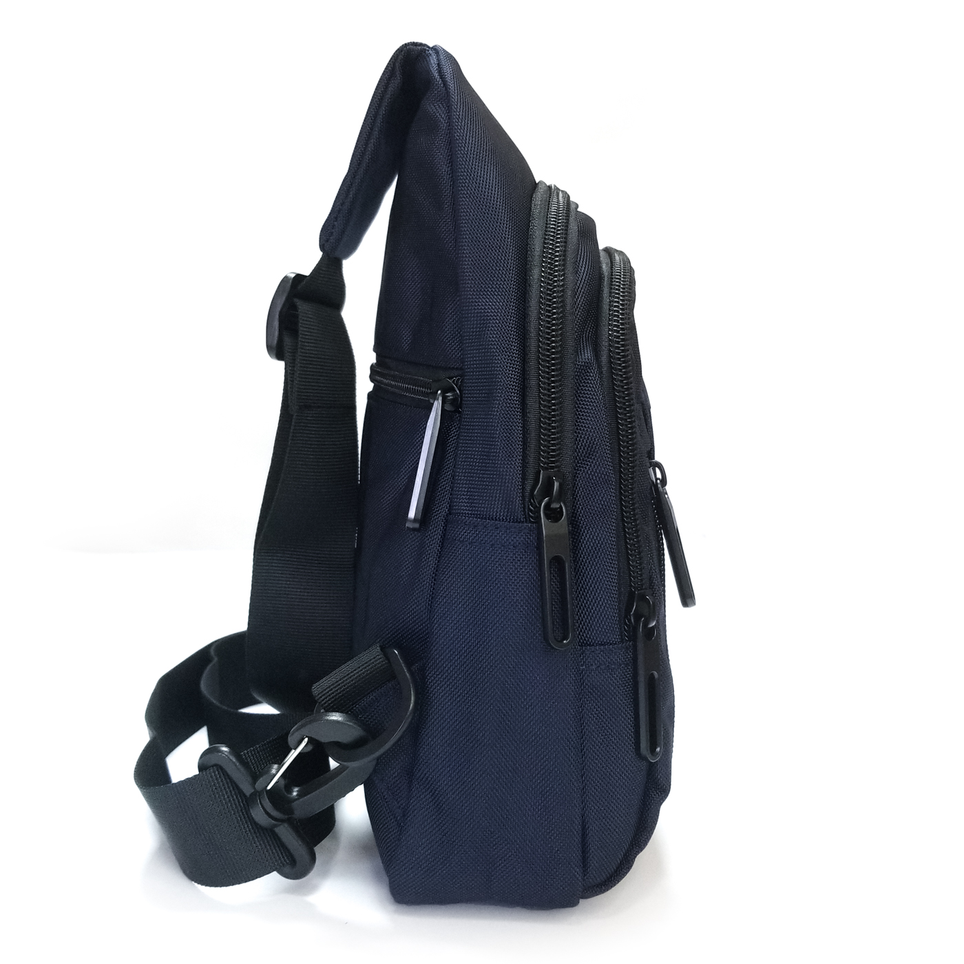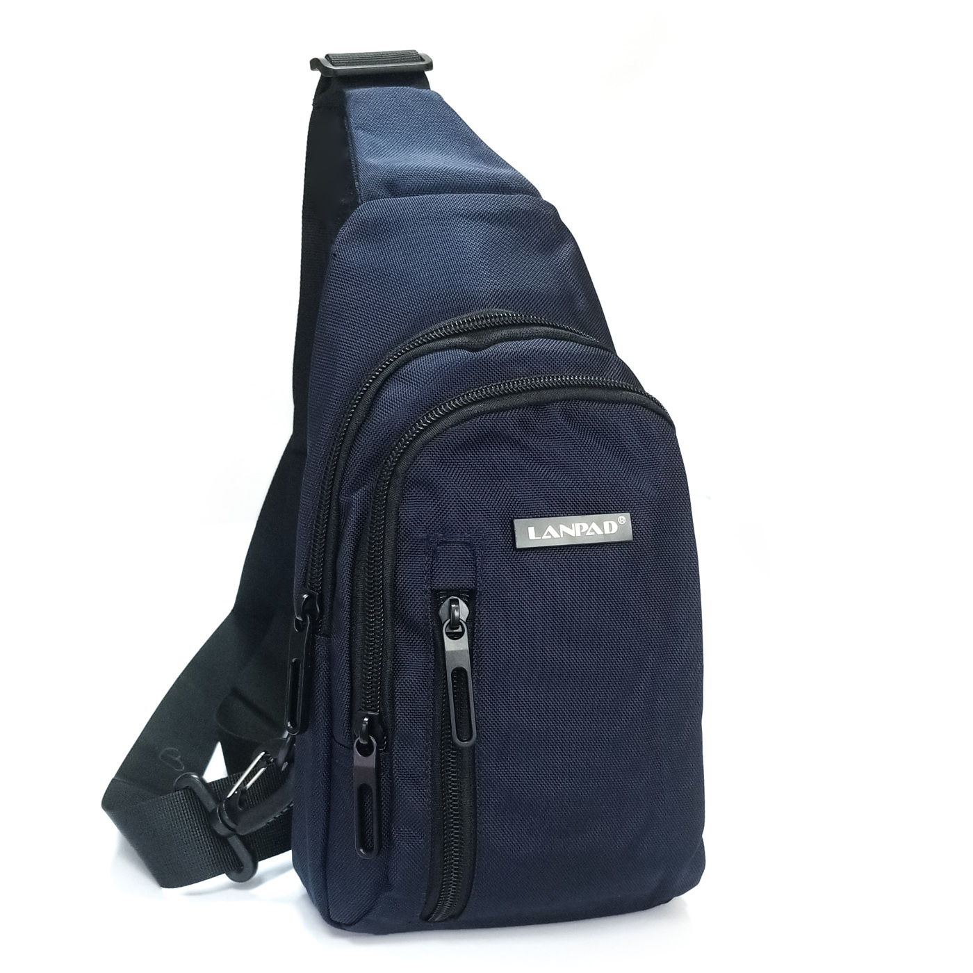 Мужская сумка Lanpad. Два отделения, закрываются на молнию. Внутри отделений есть открытые карманы. На фасаде и обратной стороне расположены карманы на молнии. Плечевой ремень, можно переставлять на левое/правое плечо.