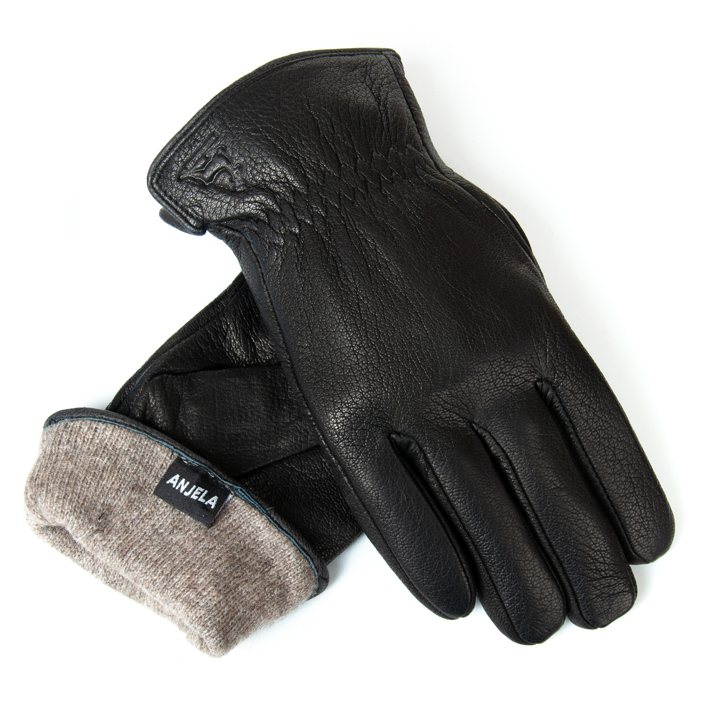 Перчатка Мужская кожа-олень S-104 black шерсть