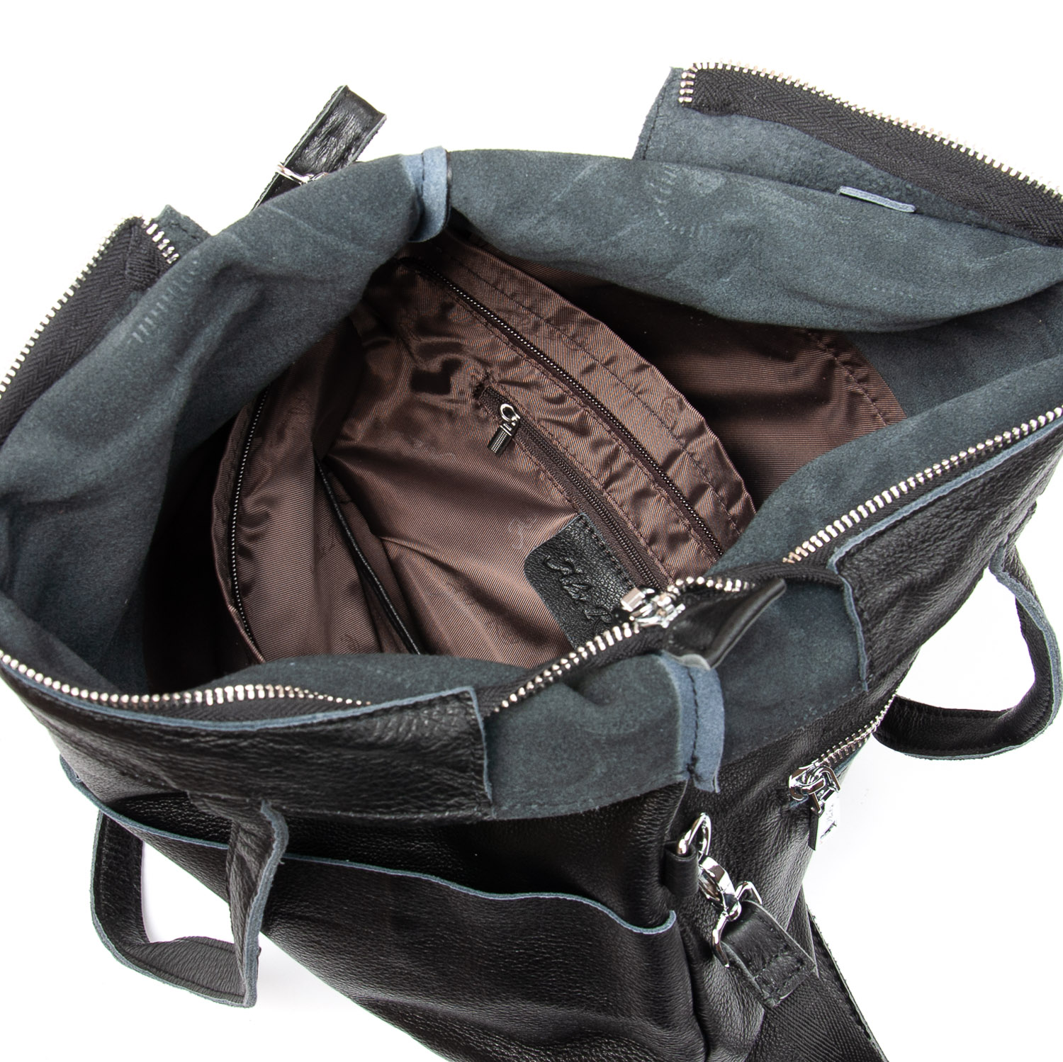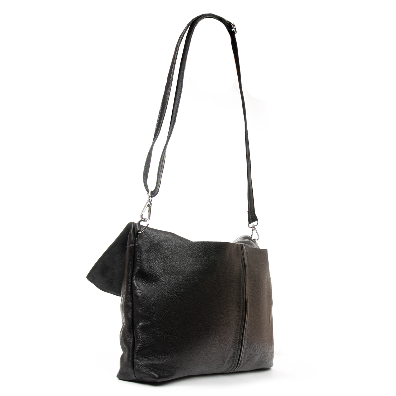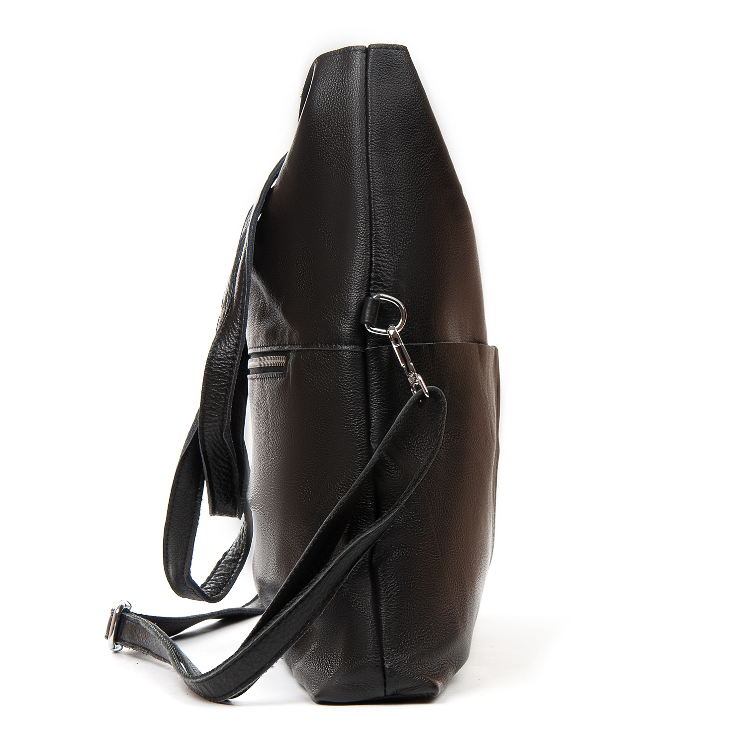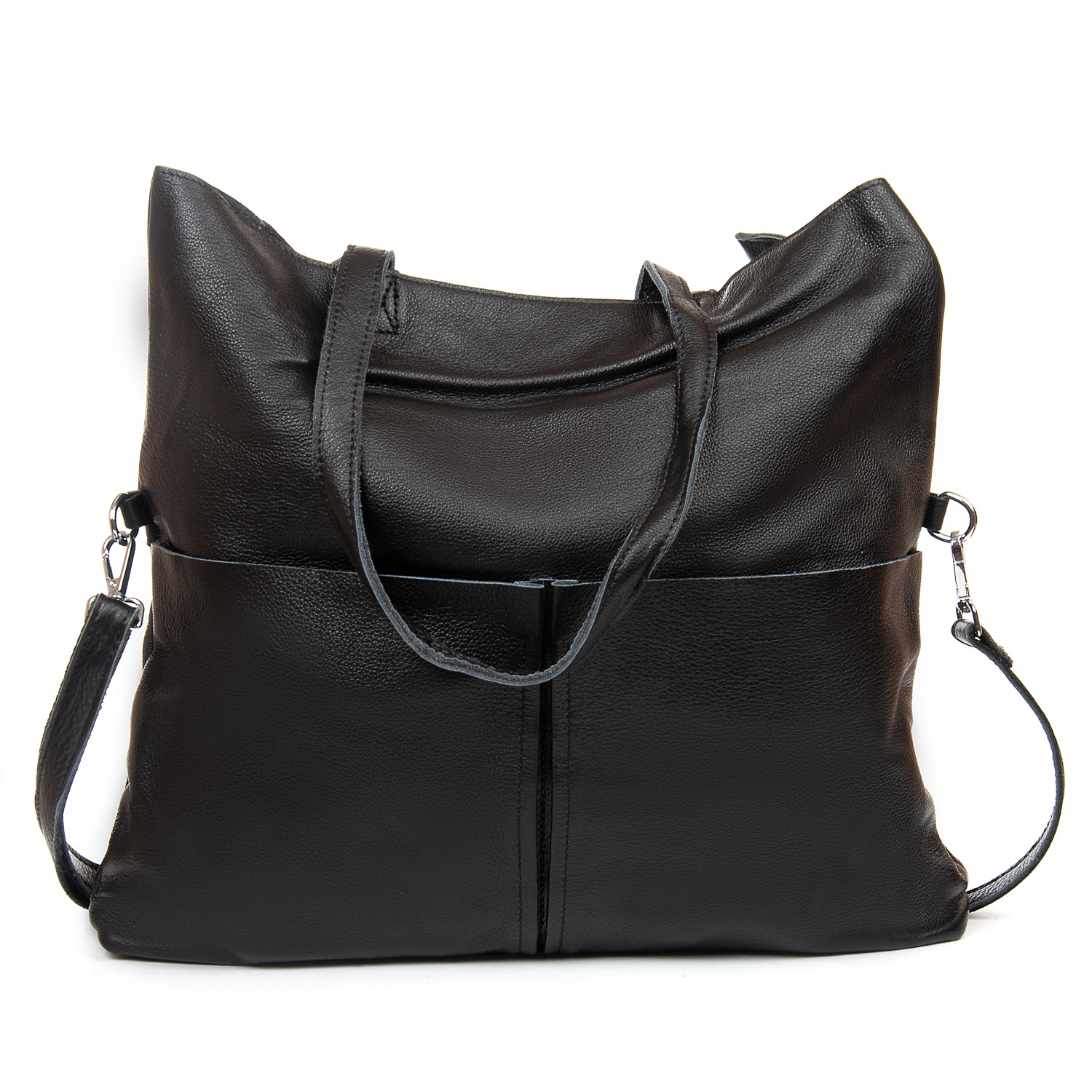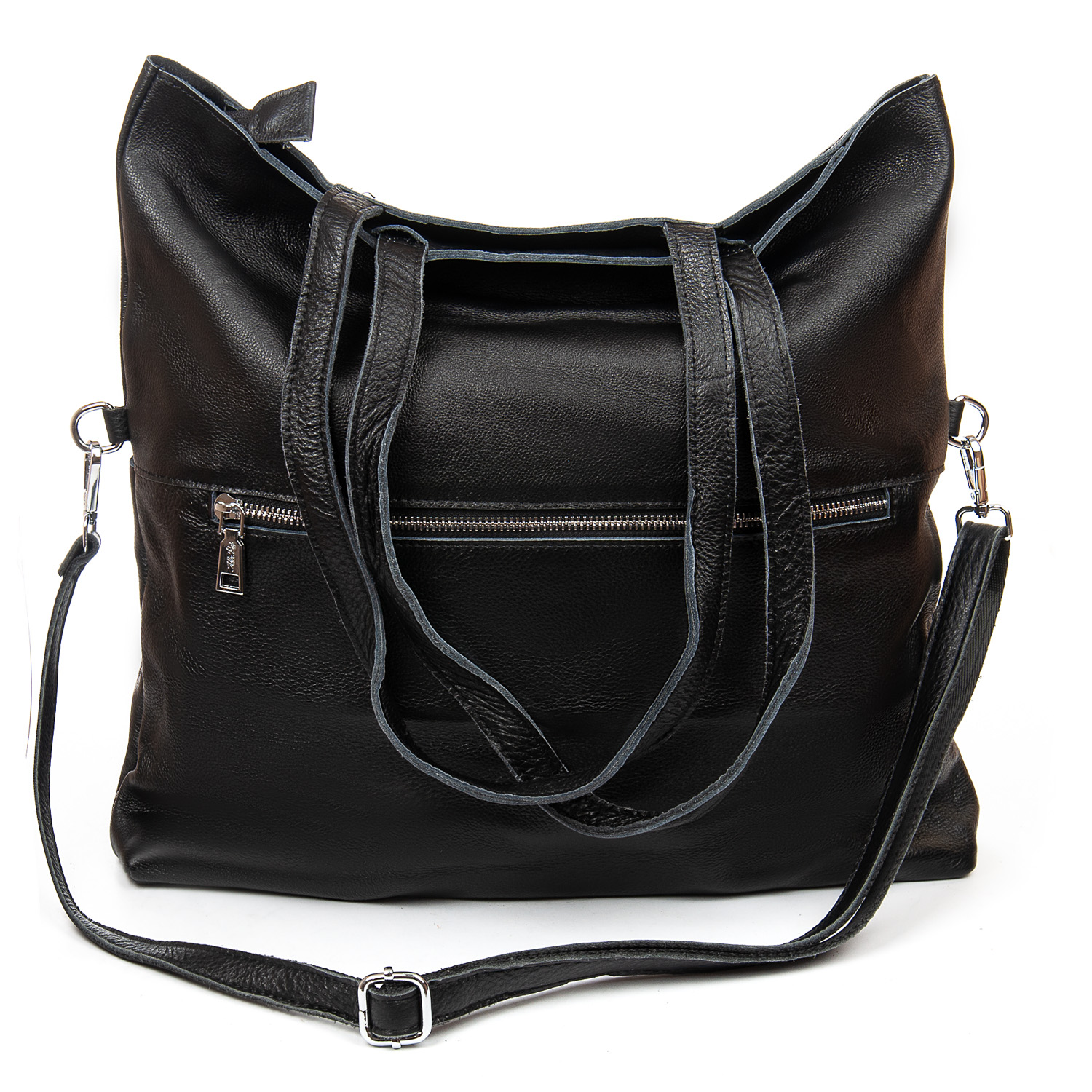 Женская большая кожаная сумка Alex Rai. Изготовлена из натуральной мягкой кожи. Сумку можно сложить вдвое и носить на плечевом ремне. Закрывается на молнию. Внутри находится одно большое отделение с открытым боковым карманом и карманом на молнии. Снаружи сумки на фасаде расположены два больших открытых кармана, а на обратной стороне находится карман на молнии. Жесткое дно.