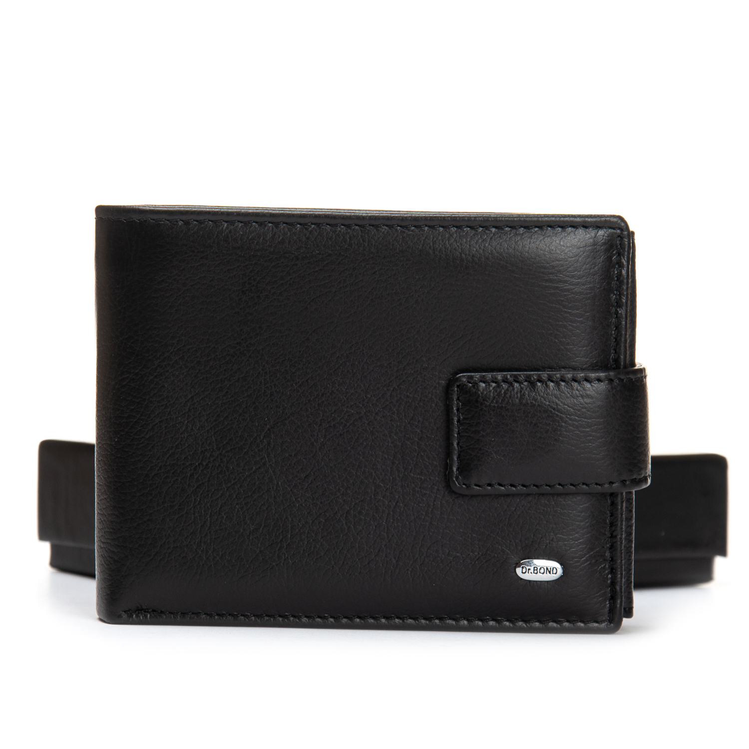Большой мужской кошелек DR. BOND. Изготовлен из мягкой натуральной кожи. Закрывается клапаном со скрытым магнитом. Кожаные перегордки в отделениях для банкнот. Закрывается на клапан. Два открытых и одно на молнии отделение для банкнот. 6 карманов для карт, в откидном блоке два больших прозрачных кармана. Внутренний карман на молнии. Монетница на кнопке.