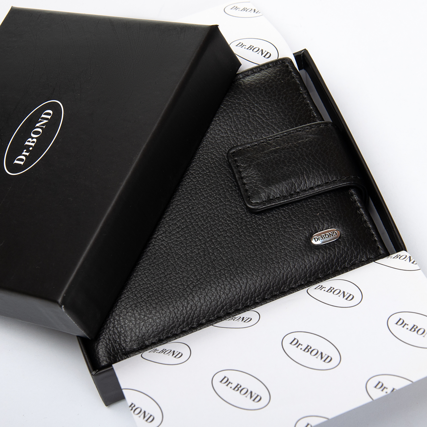 Мужской кошелек DR. BOND. Изготовлен из мягкой натуральной кожи. Закрывается клапаном со скрытым магнитом. Кожаные перегордки в отделениях для банкнот. Закрывается на клапан. Два открытых отделения для банкнот. 7 карманов для карт, в откидном блоке 3 больших прозрачных кармана. Монетница на кнопке.