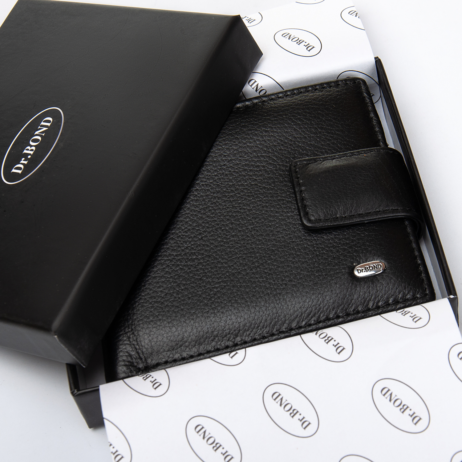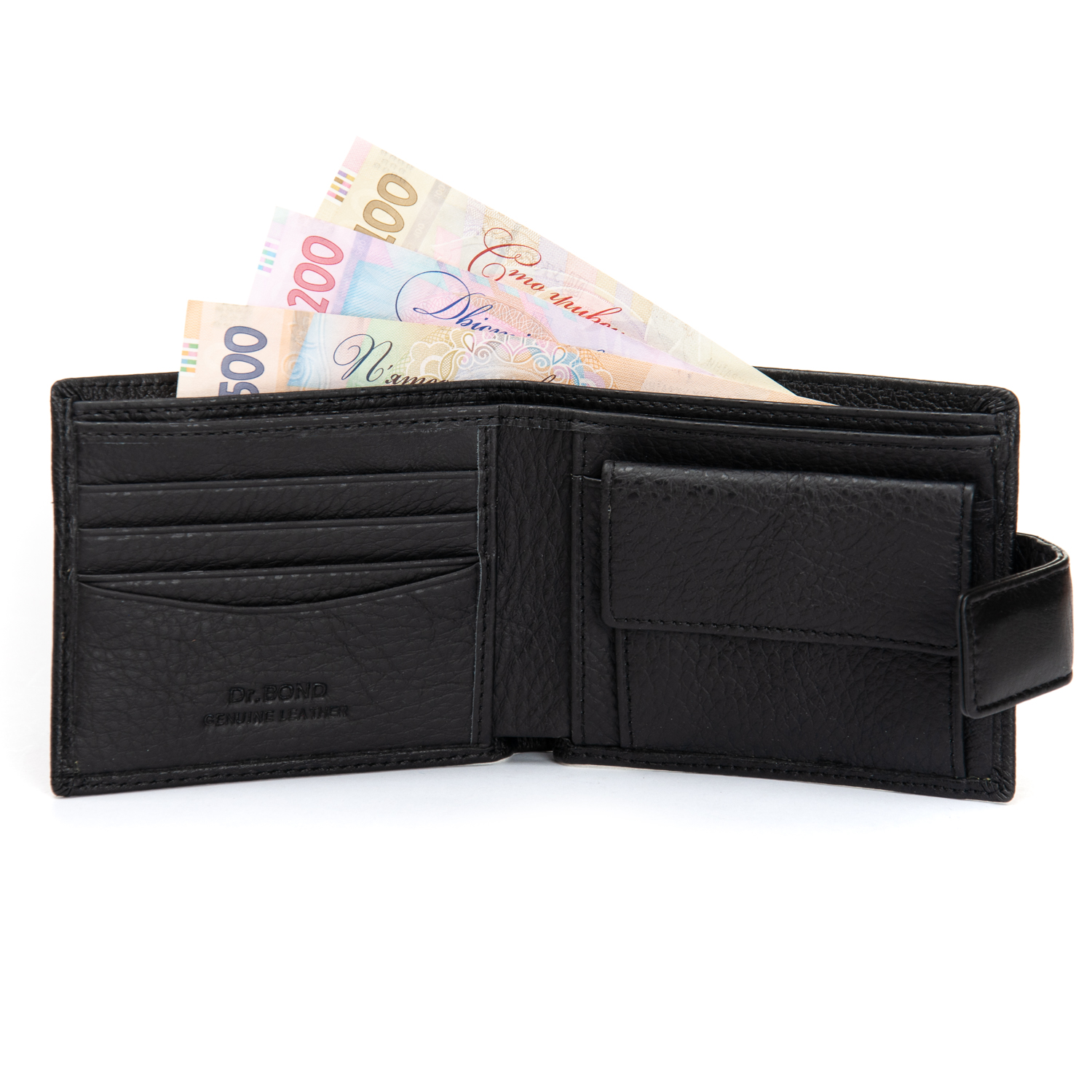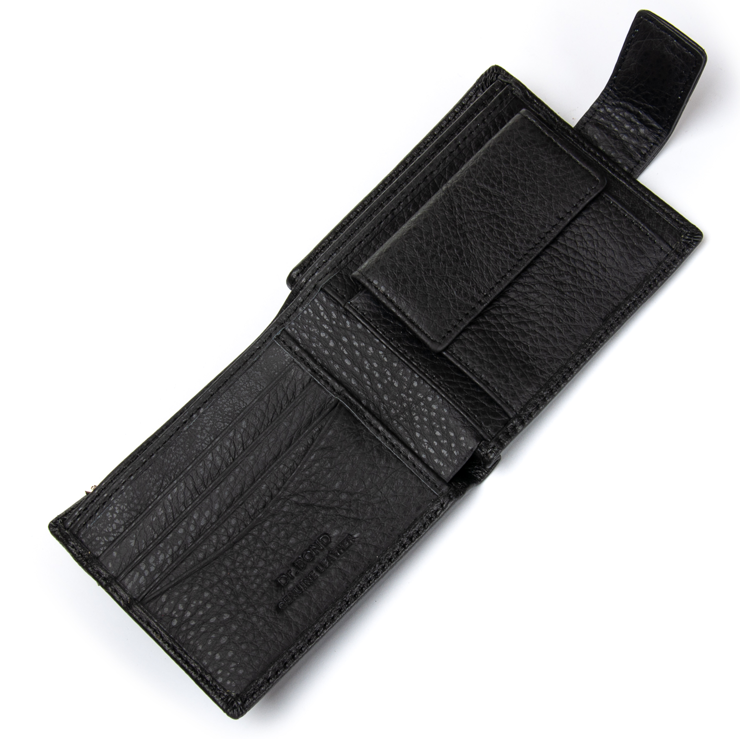 Мужской кошелек DR. BOND. Изготовлен из мягкой натуральной кожи. Закрывается клапаном со скрытым магнитом. Кожаные перегордки в отделениях для банкнот. Два открытых отделения для банкнот. 3 кармана для карт, 2 больших открытых кармана, монетница на кнопке.