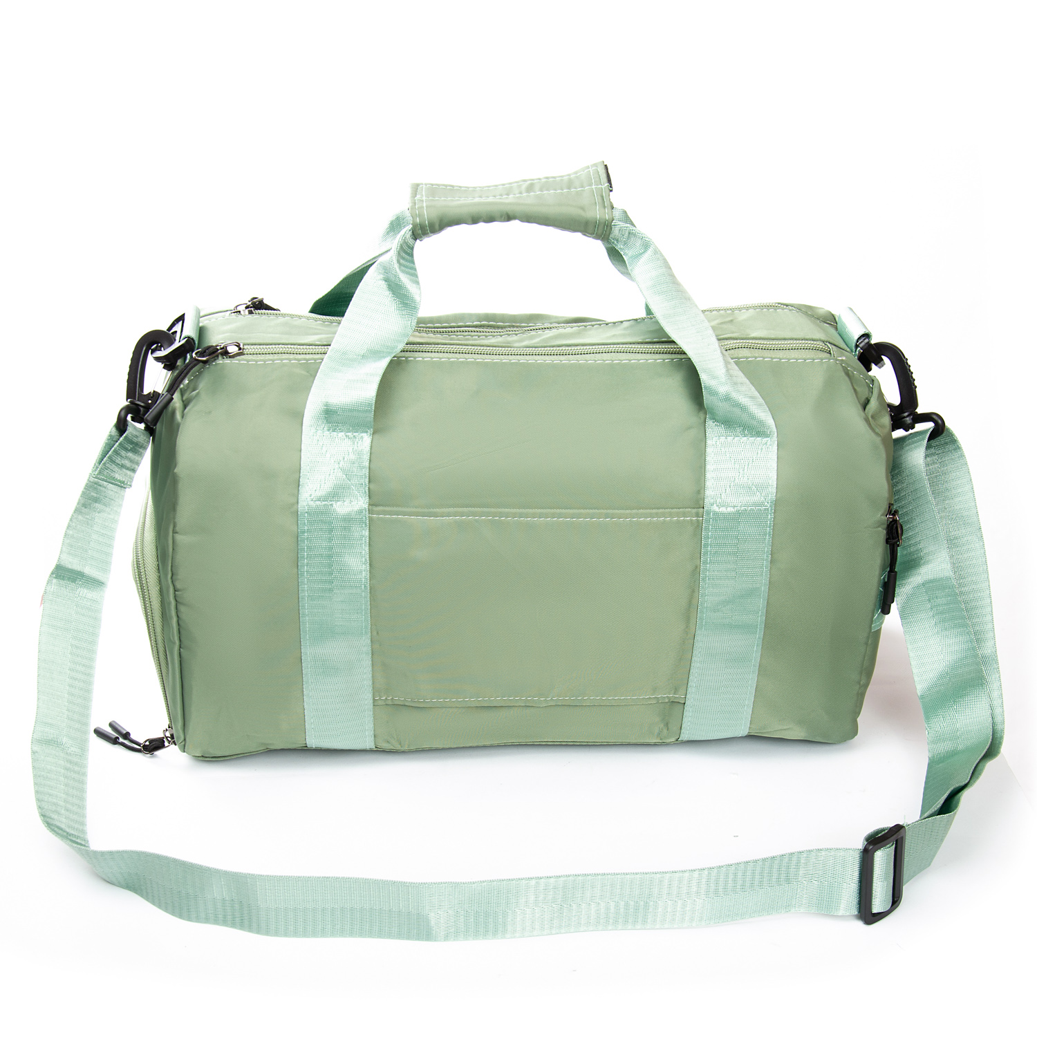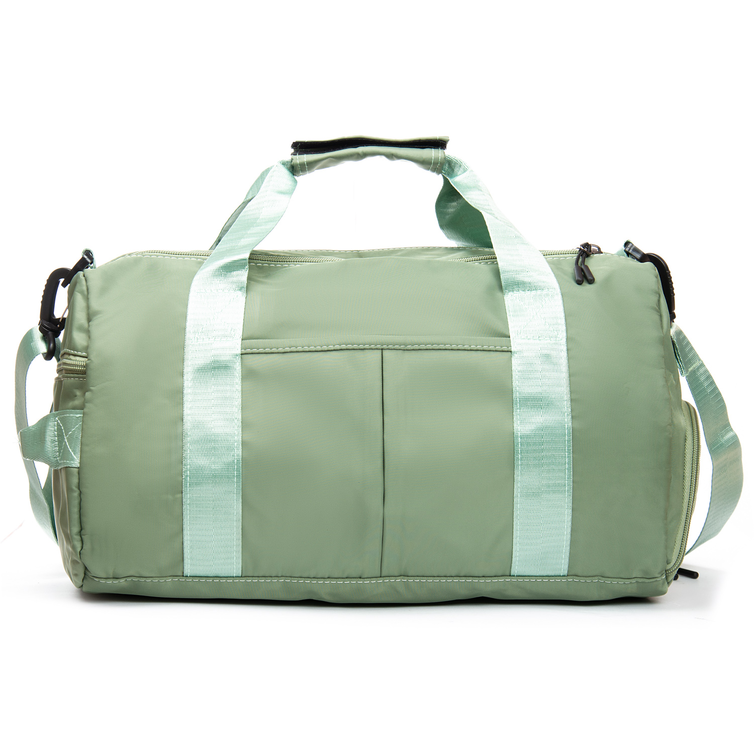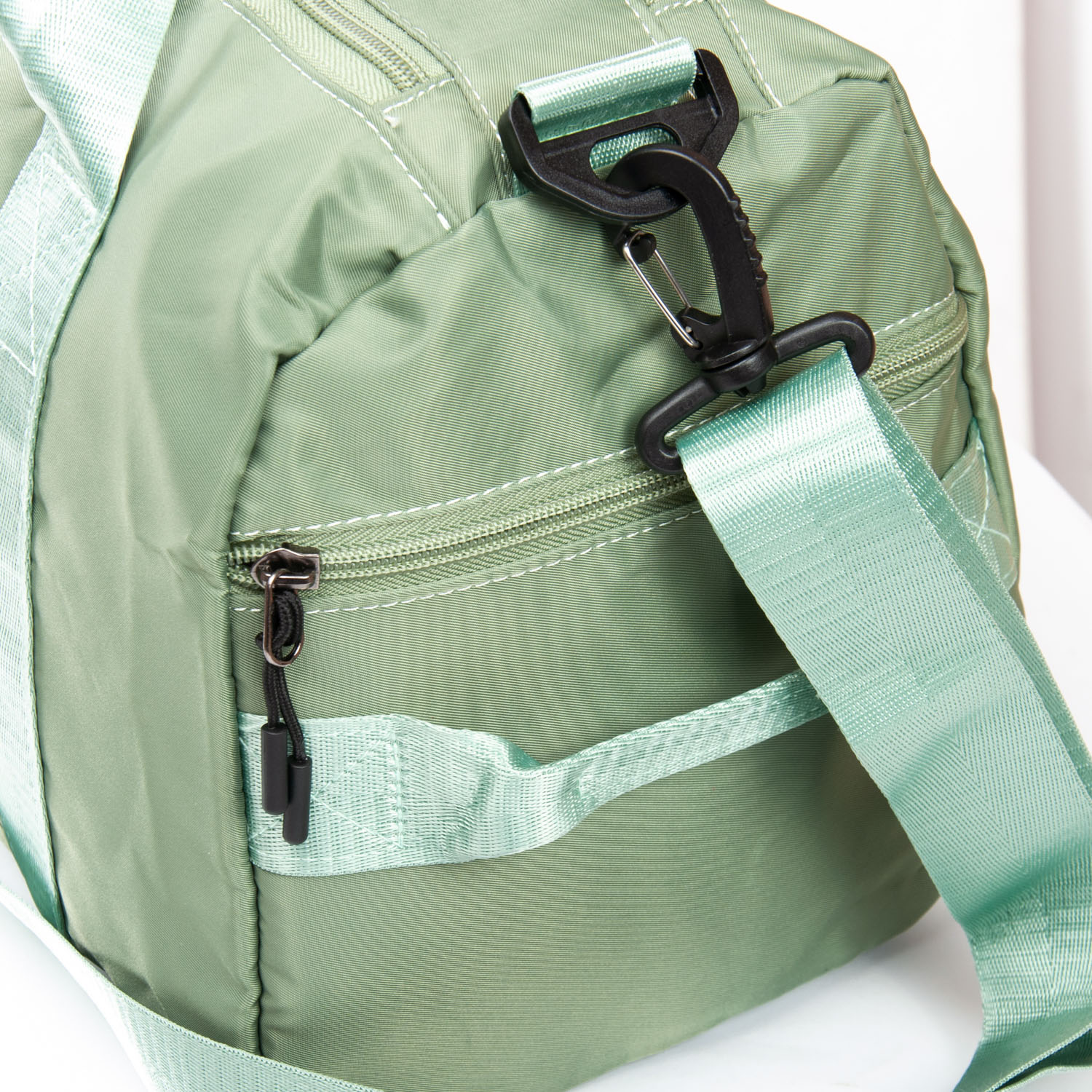 Одно отделение, закрывается на молнию. Внутри отделения есть большой боковой карман на молнии. Снаружи также расположен большой карман-отделение на молнии с герметичной подкладкой. На фасаде находится один открытый карман. На обратной стороне есть крепление на ручку чемодана. На торцах сумки есть два кармана на молнии, один из которых предназначен для обуви.