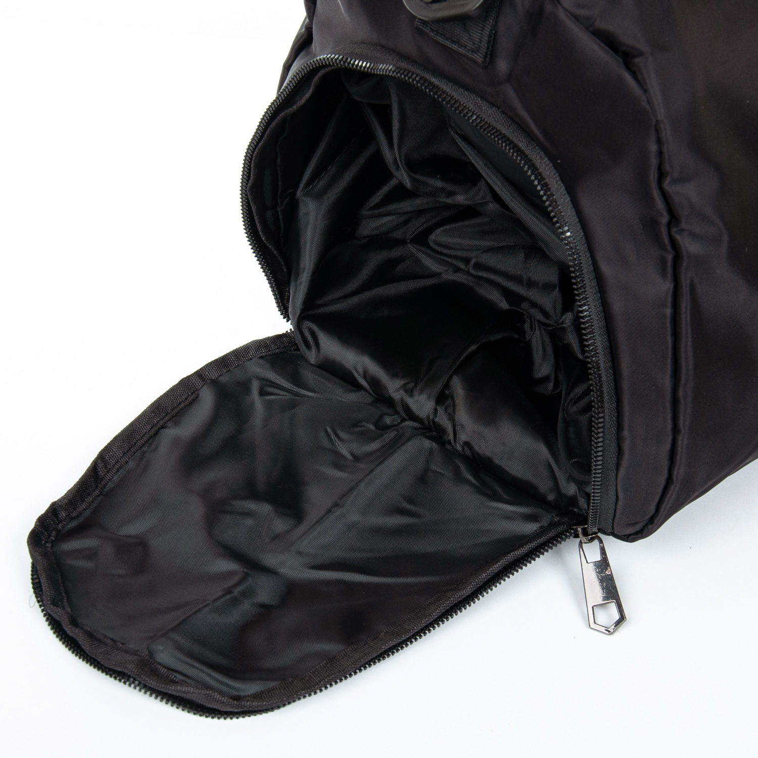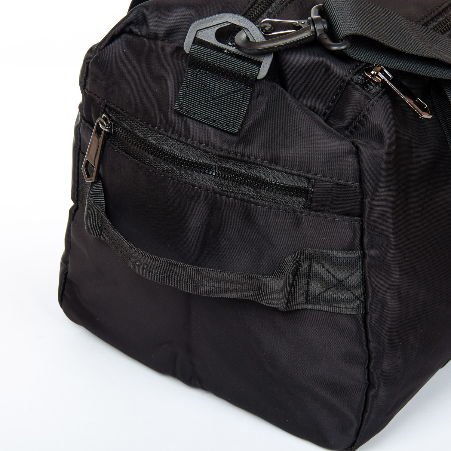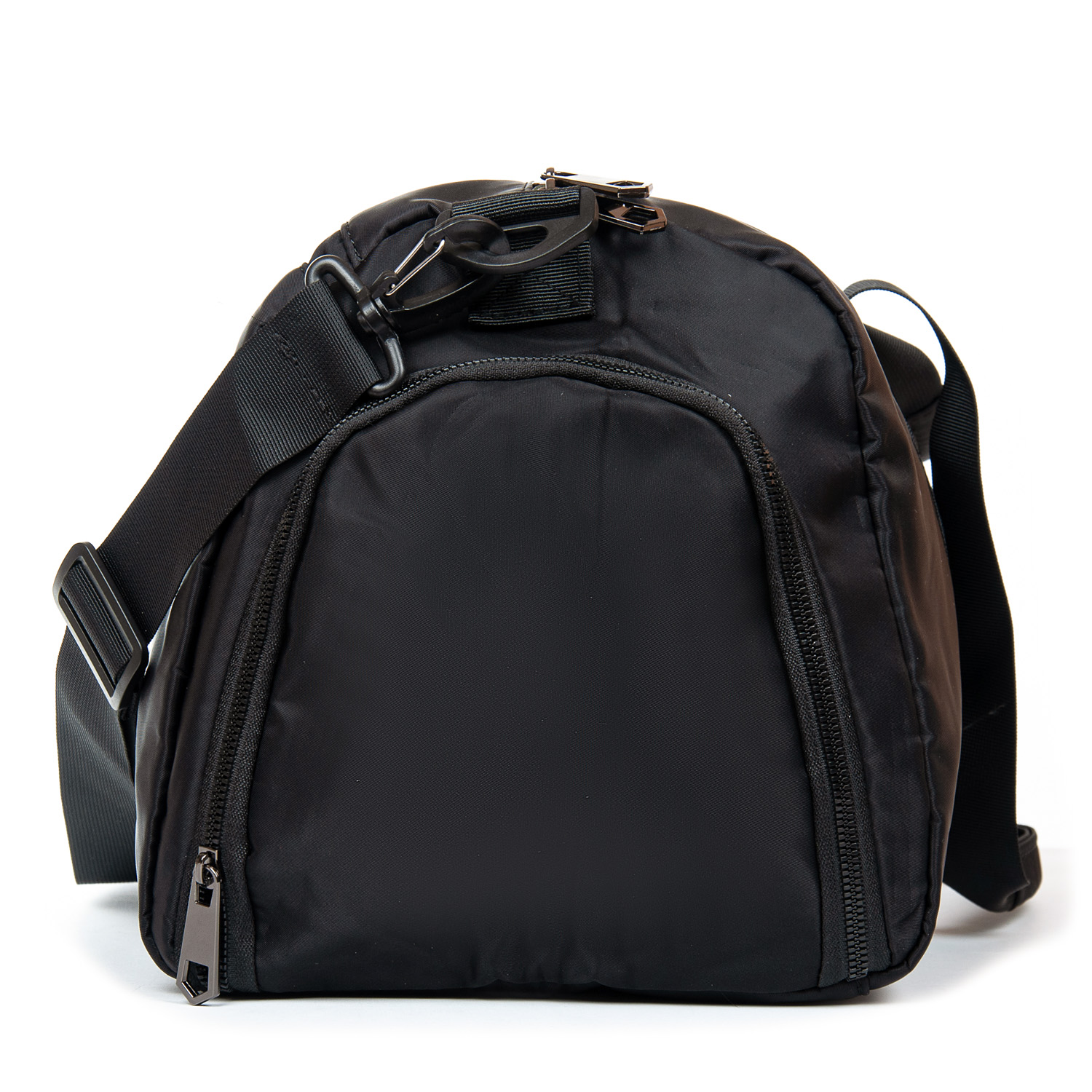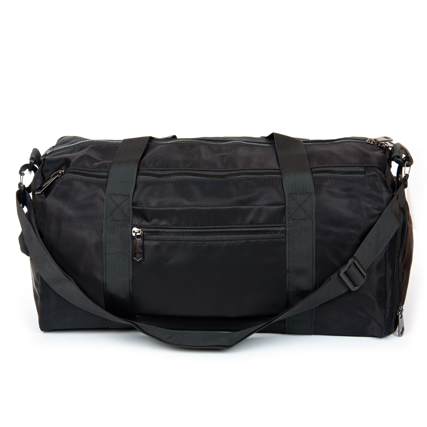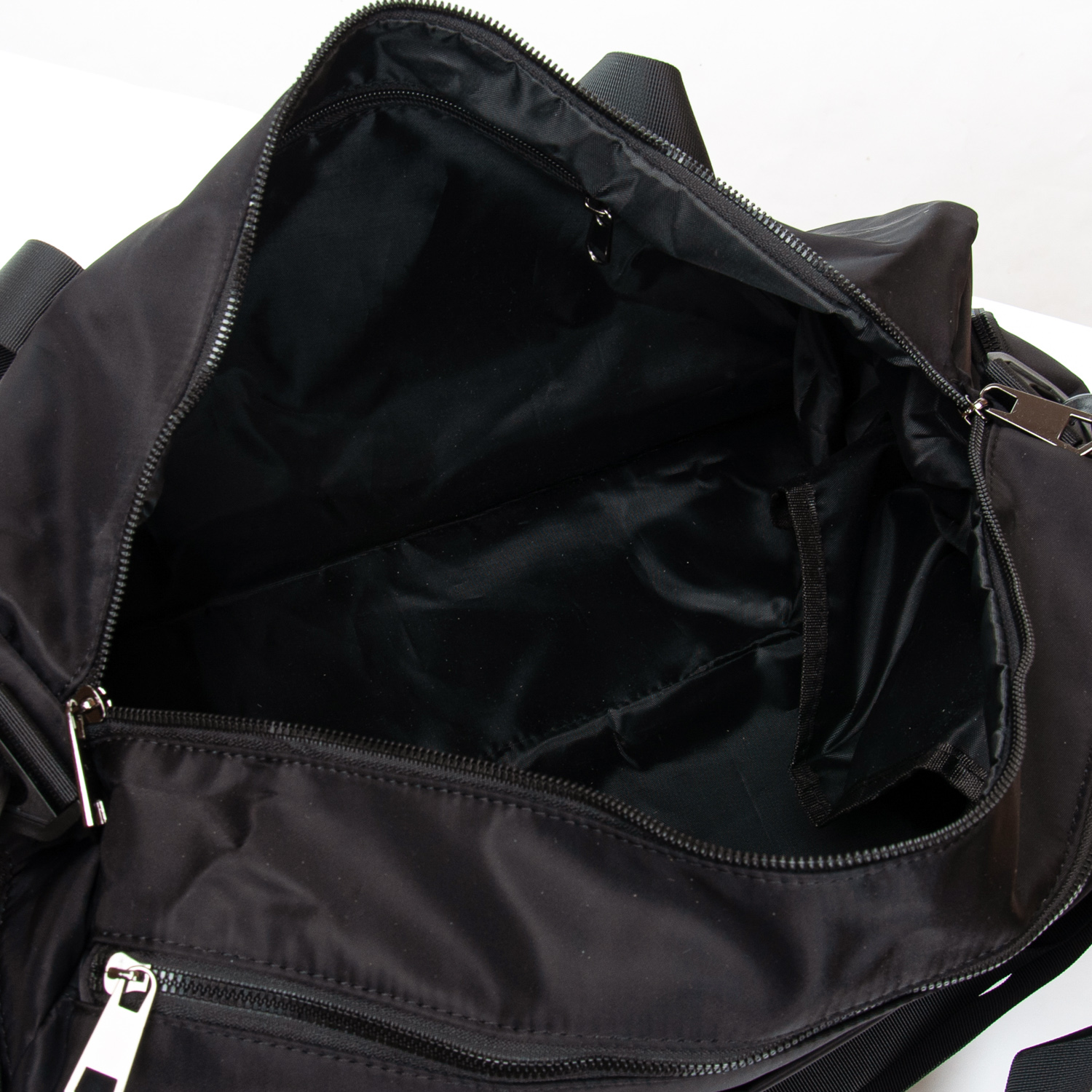 Одно основное отделение, закрывается на молнию. Внутри отделения есть боковой карман на молнии. Дополнительное отделение с герметичной подкладкой предназначено для влажных вещей. На торцах сумки расположены карманы на молнии, один из них предназначен для обуви. На обратной стороне сумки есть крепление на ручку чемодана и карман на молнии.