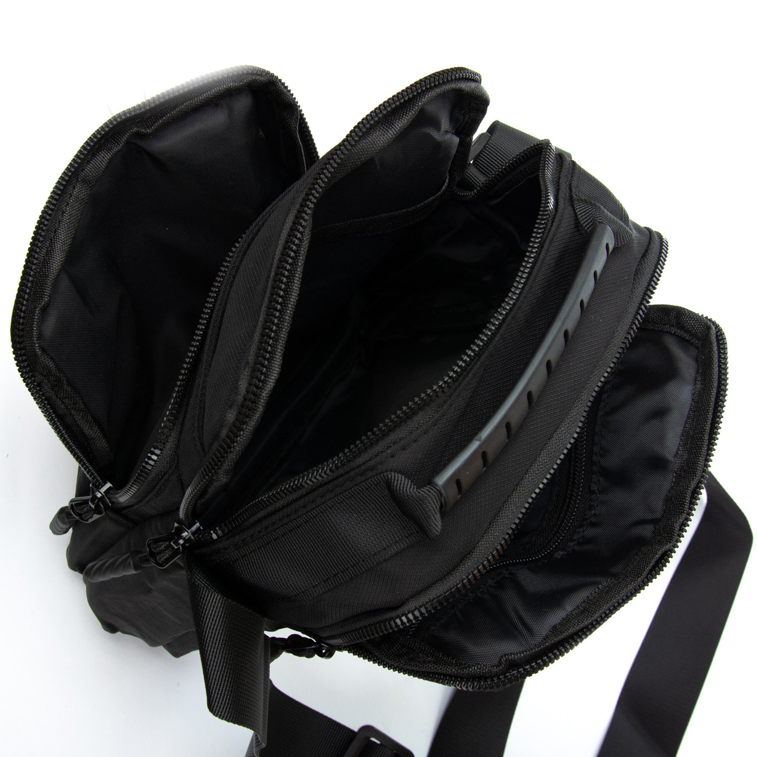 Два больших отделения, закрываются на молнии. Внутри отделений есть боковой карман на молнии и открытый карман. На фасаде расположено два вместительных кармана: один открытый и второй на молнии. На обратной стороне сумки находится один карман на молнии.