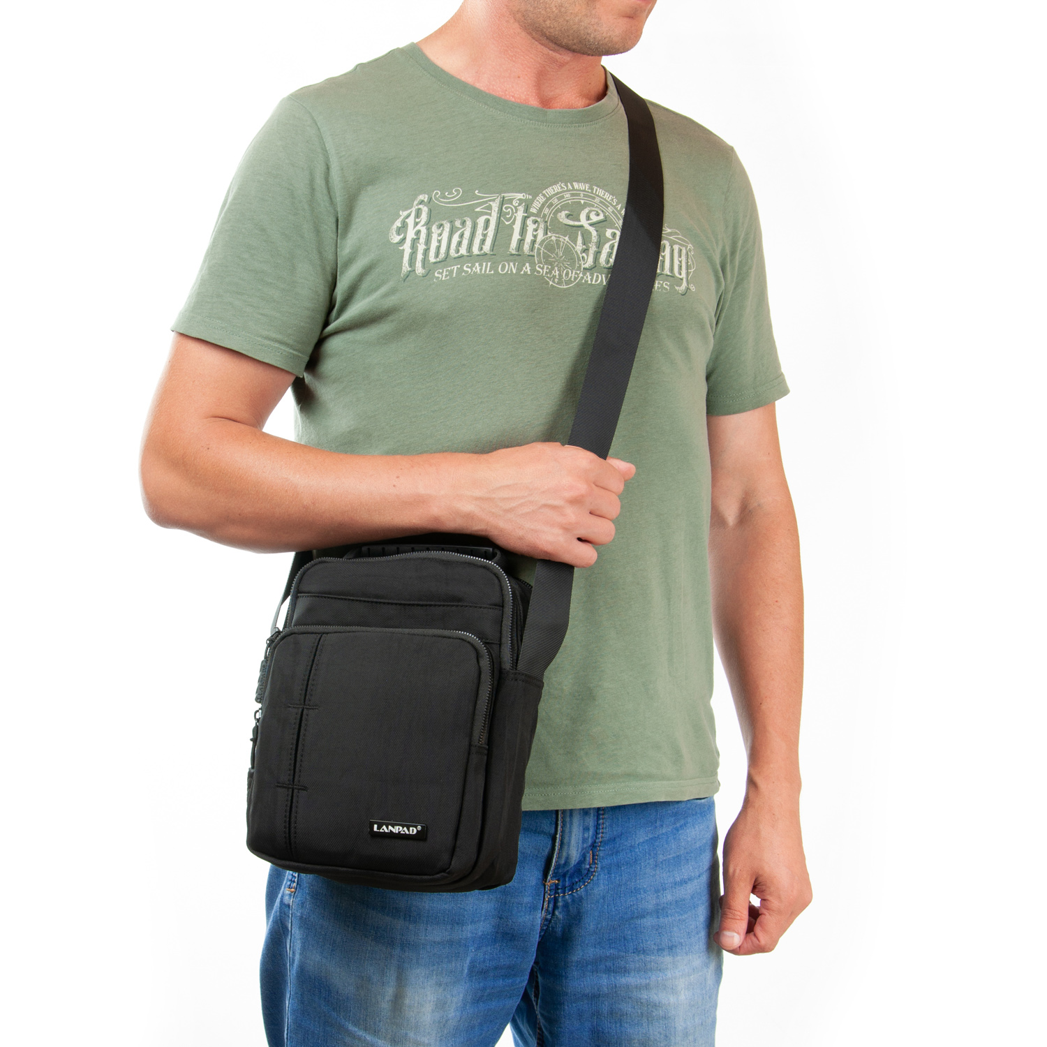 Большая мужская сумка-планшет Lanpad. Изготовлена из водоотталкивающего нейлона.