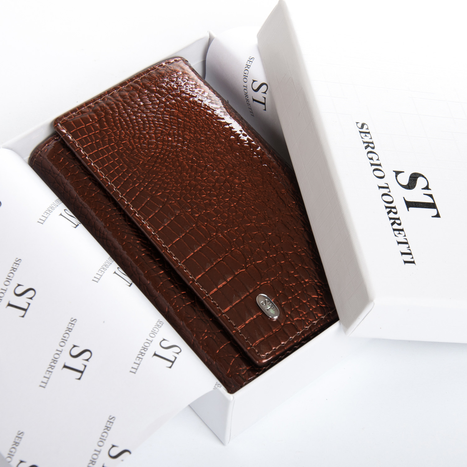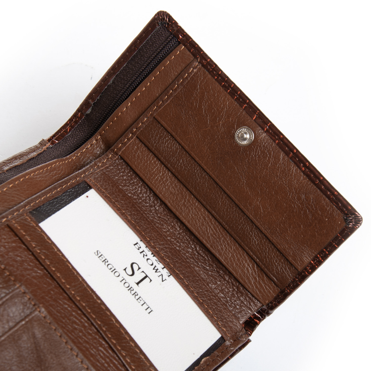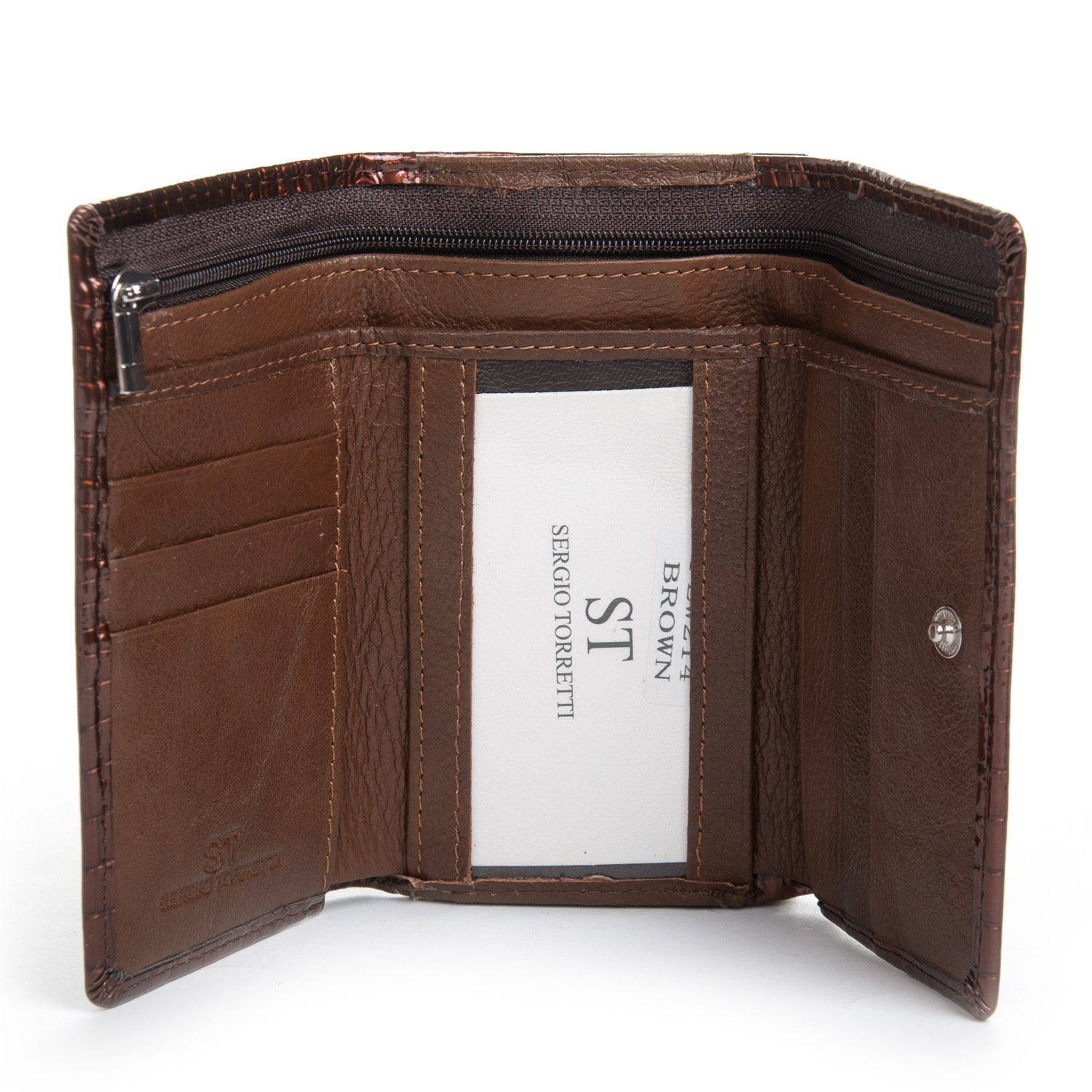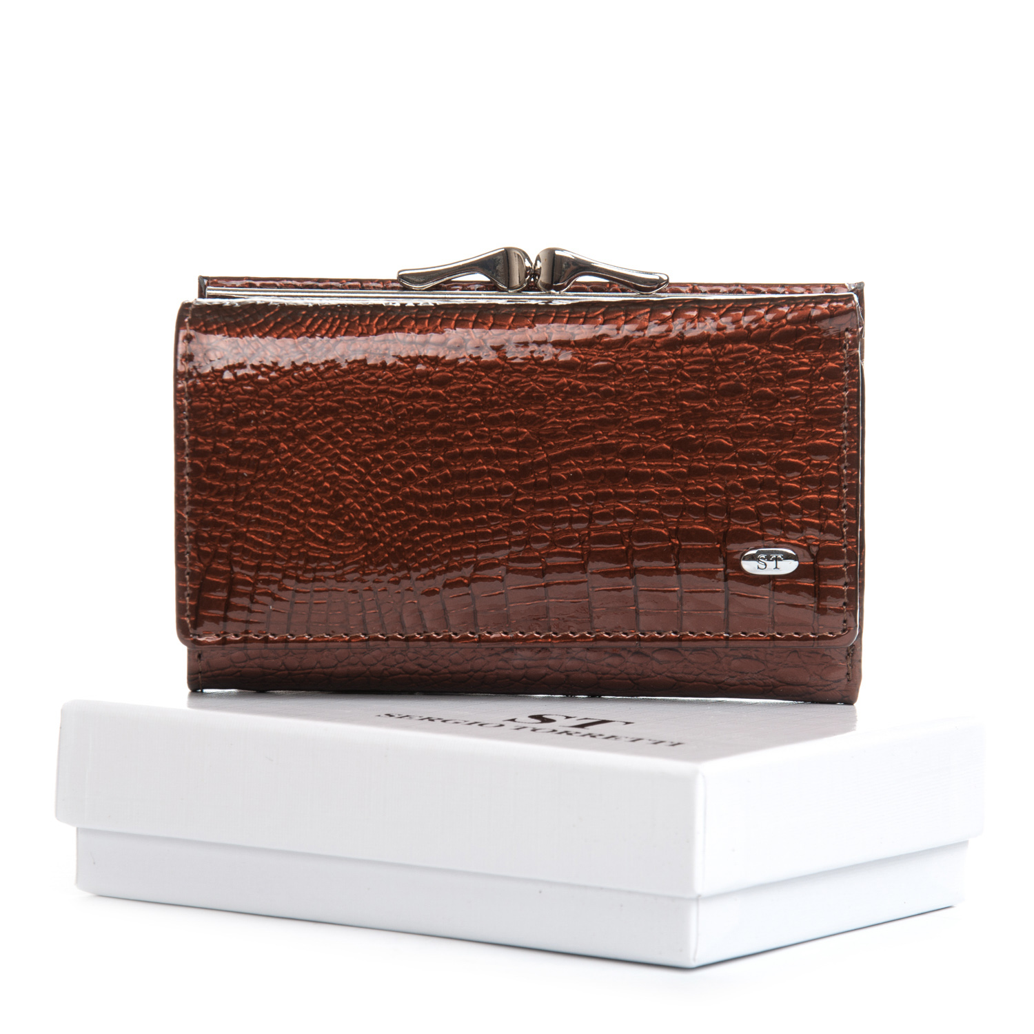 Женский компактный кожаный кошелек Sergio Torretti. Складывается втрое и закрывается на кнопку.