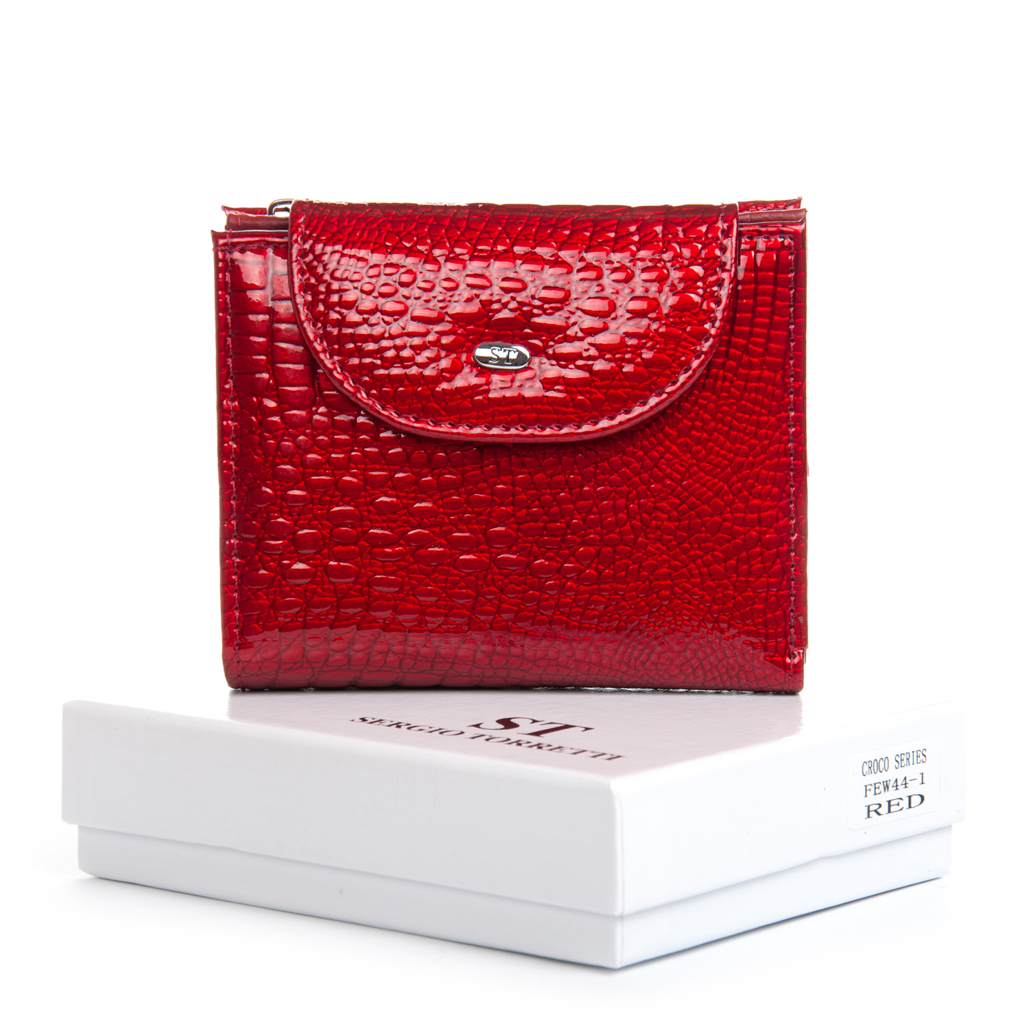 Женский компактный кожаный кошелек Sergio Torretti. Клапан закрывается на магнит.