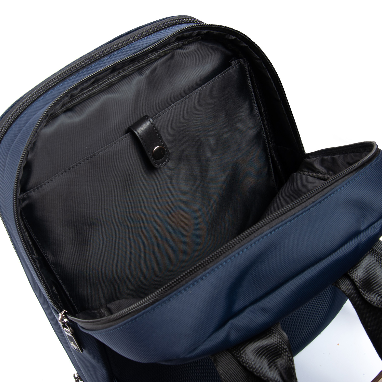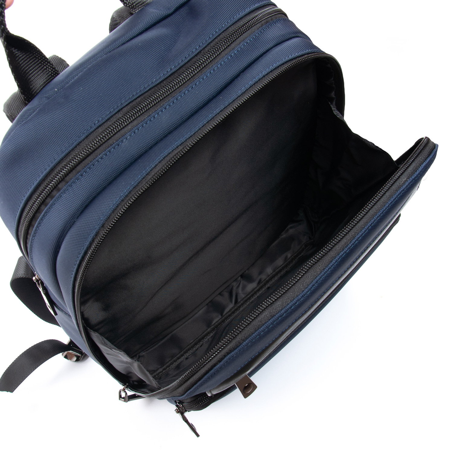Изготовлен из нейлона плотного плетения с кожаными вставками. Два отделения, закрываются на молнии. Внутри отделений находятся большой карман на молнии и карман для нетбука или планшета. На фасаде рюкзака расположен вместительный карман на молнии.
