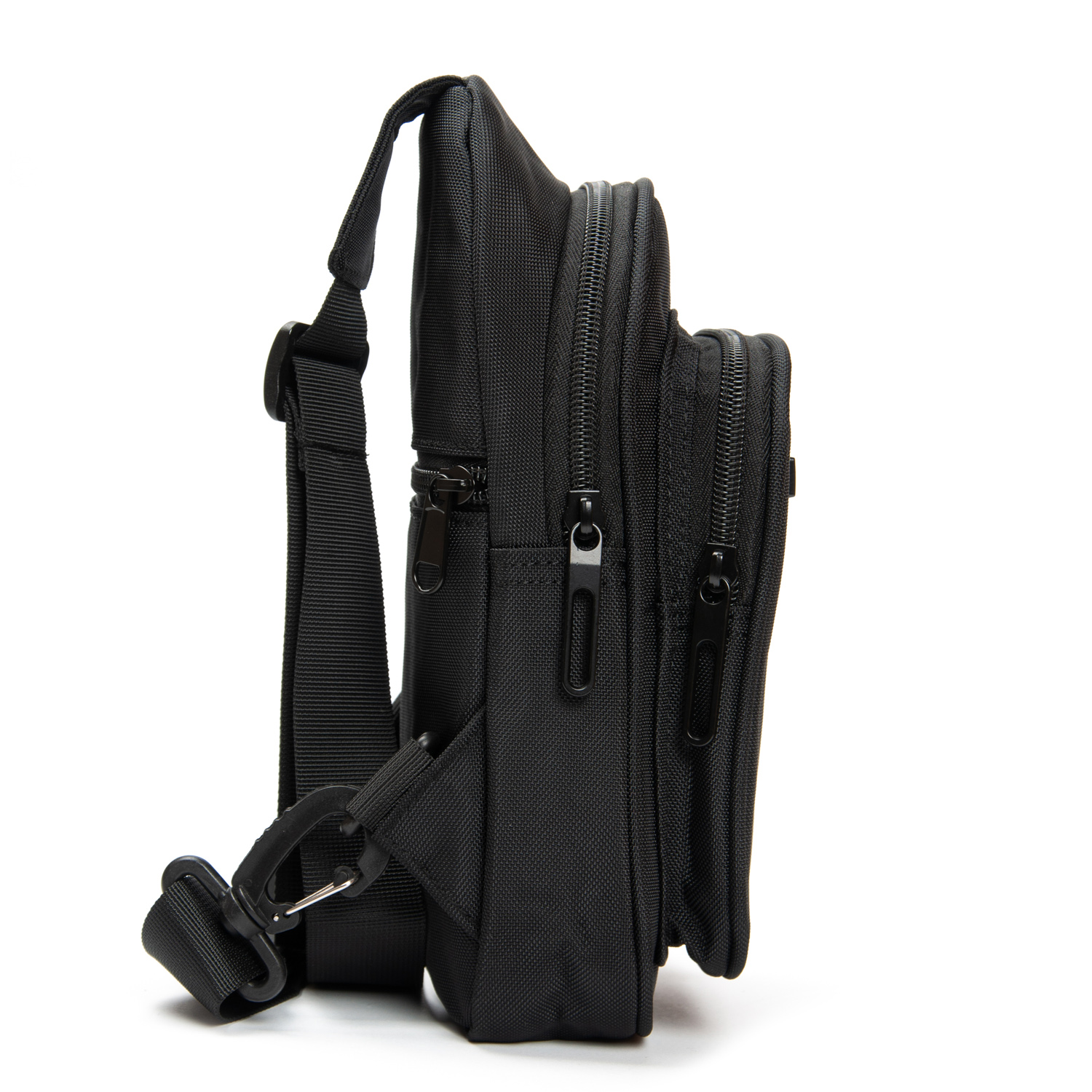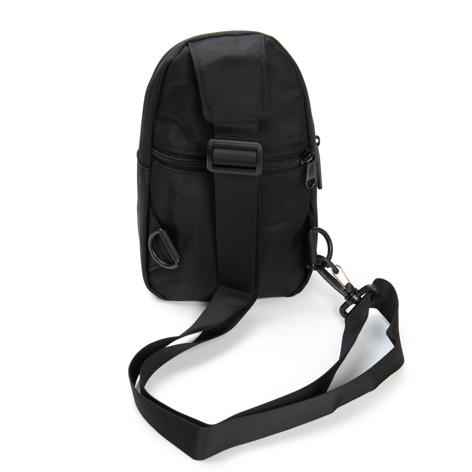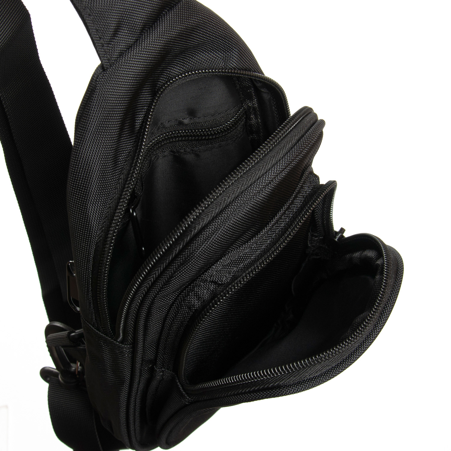 Одно отделение, закрывается на молнию. Внутри отделения есть карман на молнии и открытый карман. На фасаде и на обратной стороне есть карманы на молнии. Плечевой ремень, можно переставлять на левое/правое плечо.