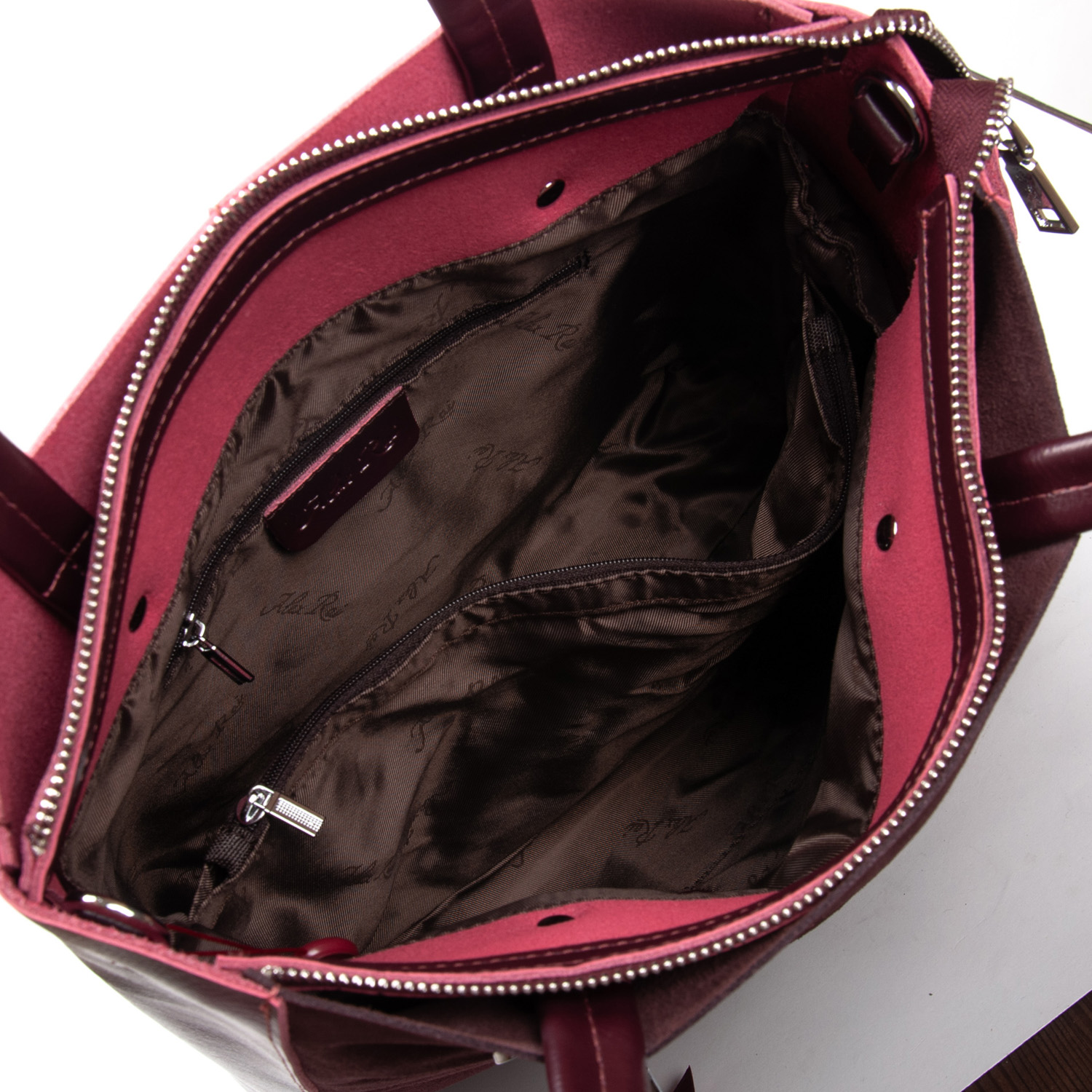Закрывается на молнию. Внутри находится двойное отделение, разделенное карманом-перегородкой на молнии, двойной открытый карман и карман на молнии на внутренних стенках сумки. На фасаде и обратной стороне расположены карманы на молнии. Дно сумки с уплотнением, с металлическими ножками.