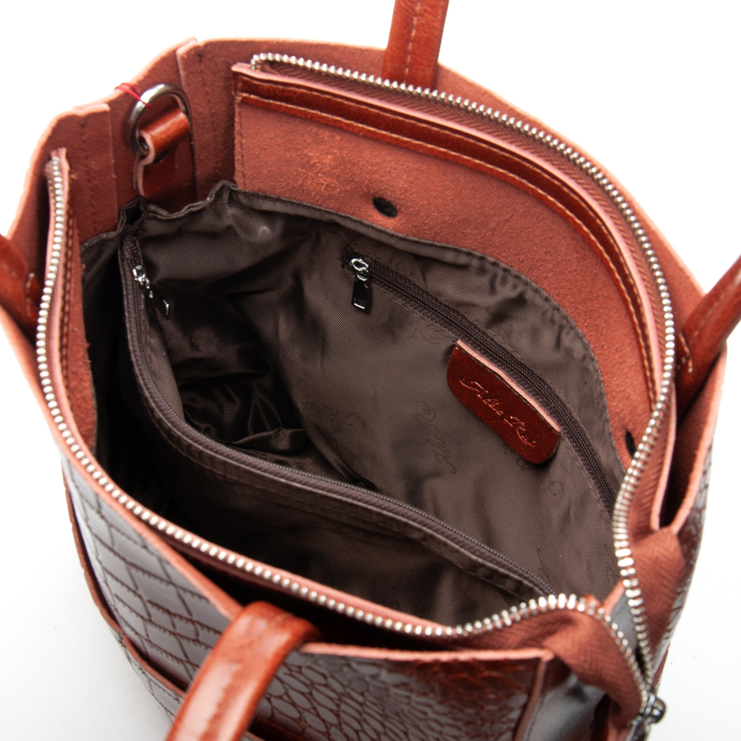 Закрывается на молнию. Внутри находится двойное отделение, разделенное карманом-перегородкой на молнии, открытый карман и боковой карман на молнии. Снаружи сумки на фасаде и обратной стороне есть открытые плоские карманы.