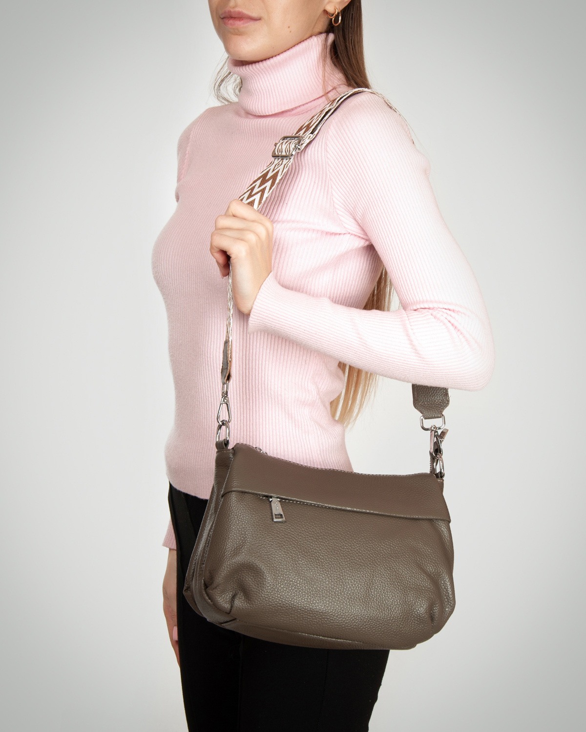 В комплекте регулируемый плечевой ремень и широкий ремень.