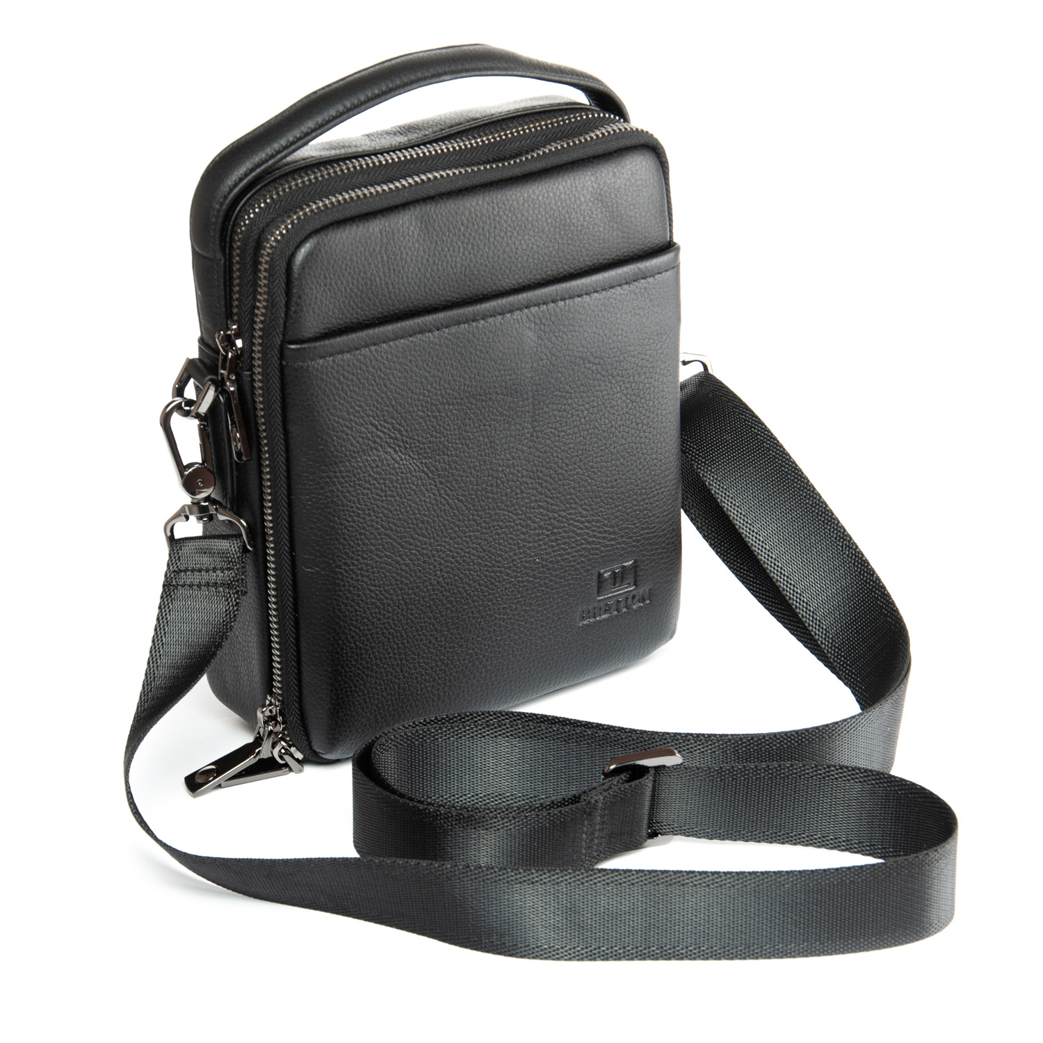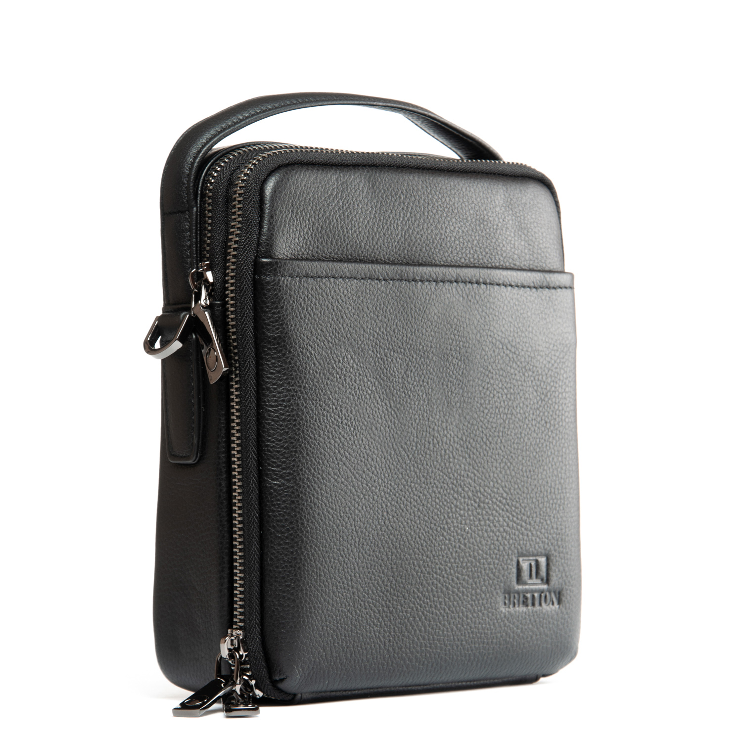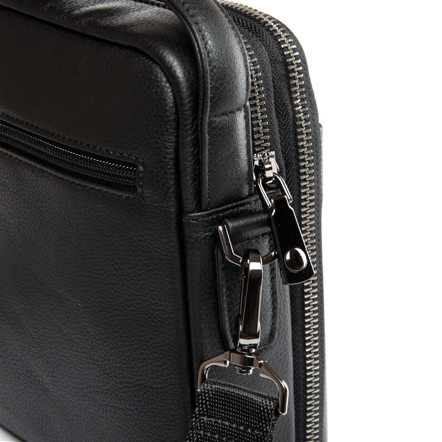 Изготовлена из мягкой натуральной кожи. Два отделения, закрываются на молнию. Внутри отделений есть открытый карман и боковой карман на молнии. Переднее отделение дополнительно разделено перегородкой. На фасаде находится кармана на магнитной кнопке, а на обратной стороне сумки есть один карман на молнии.