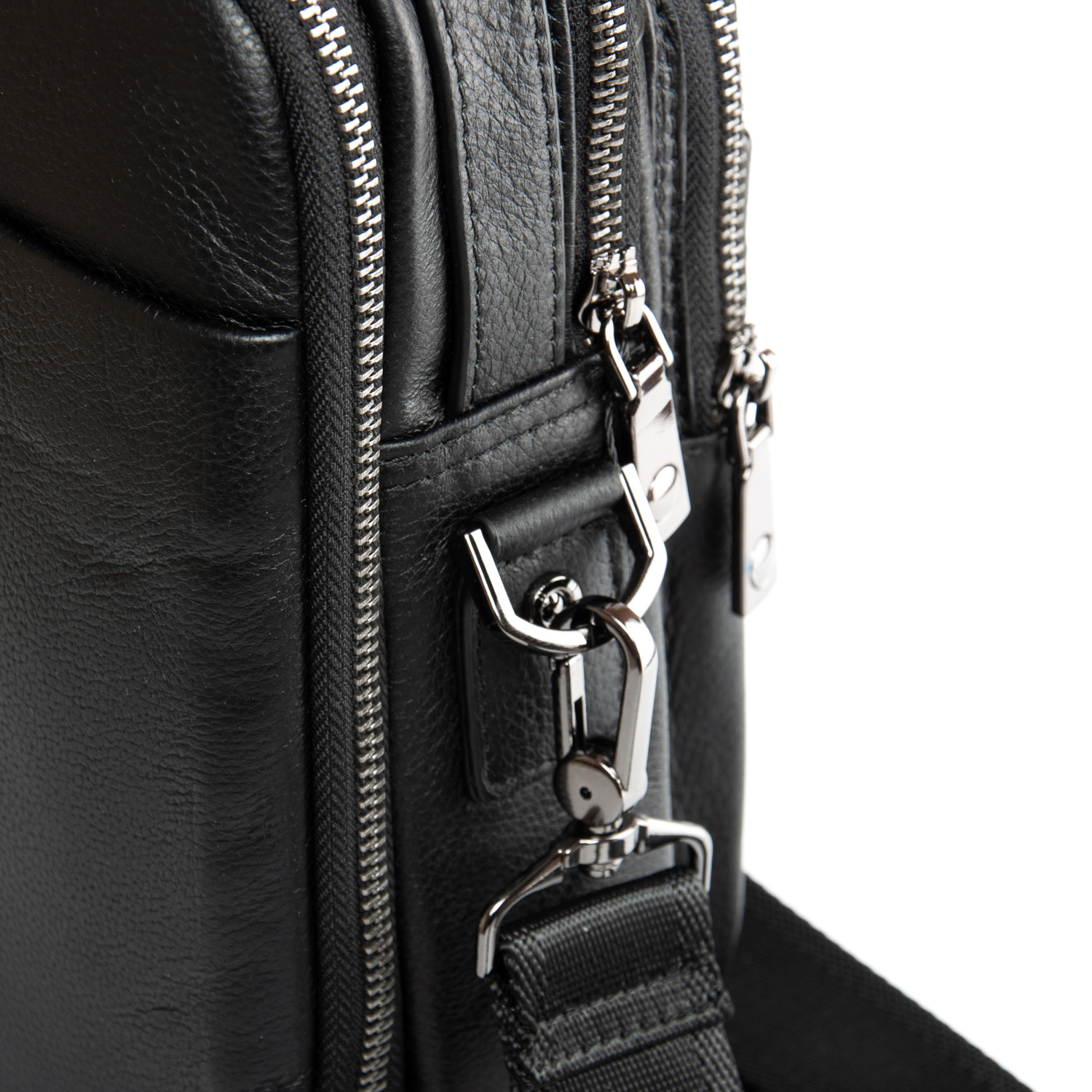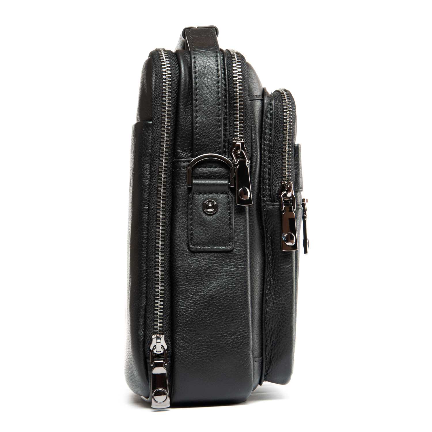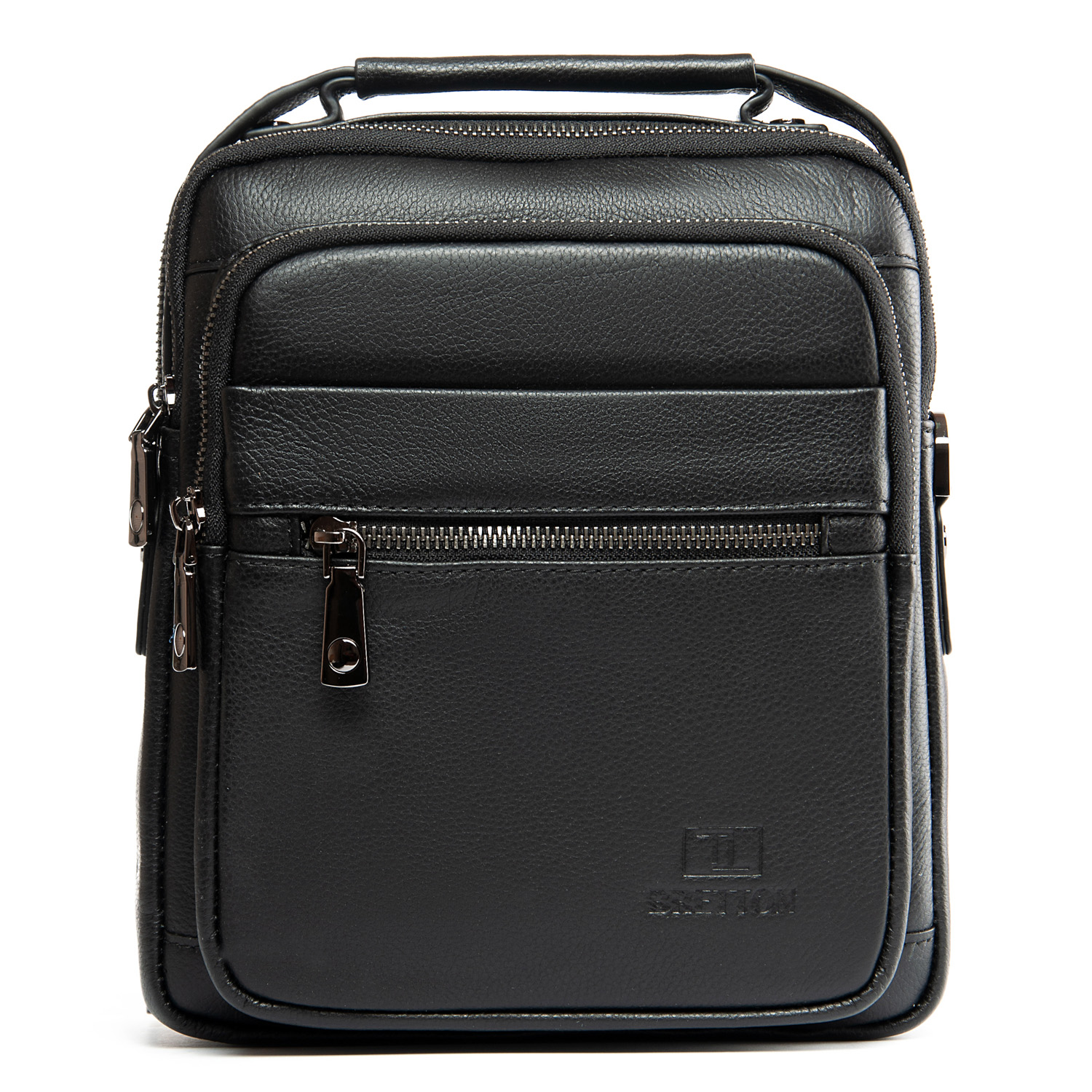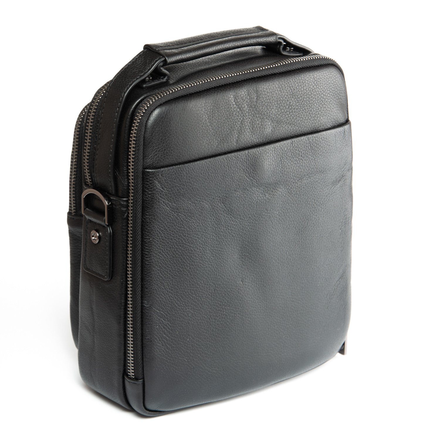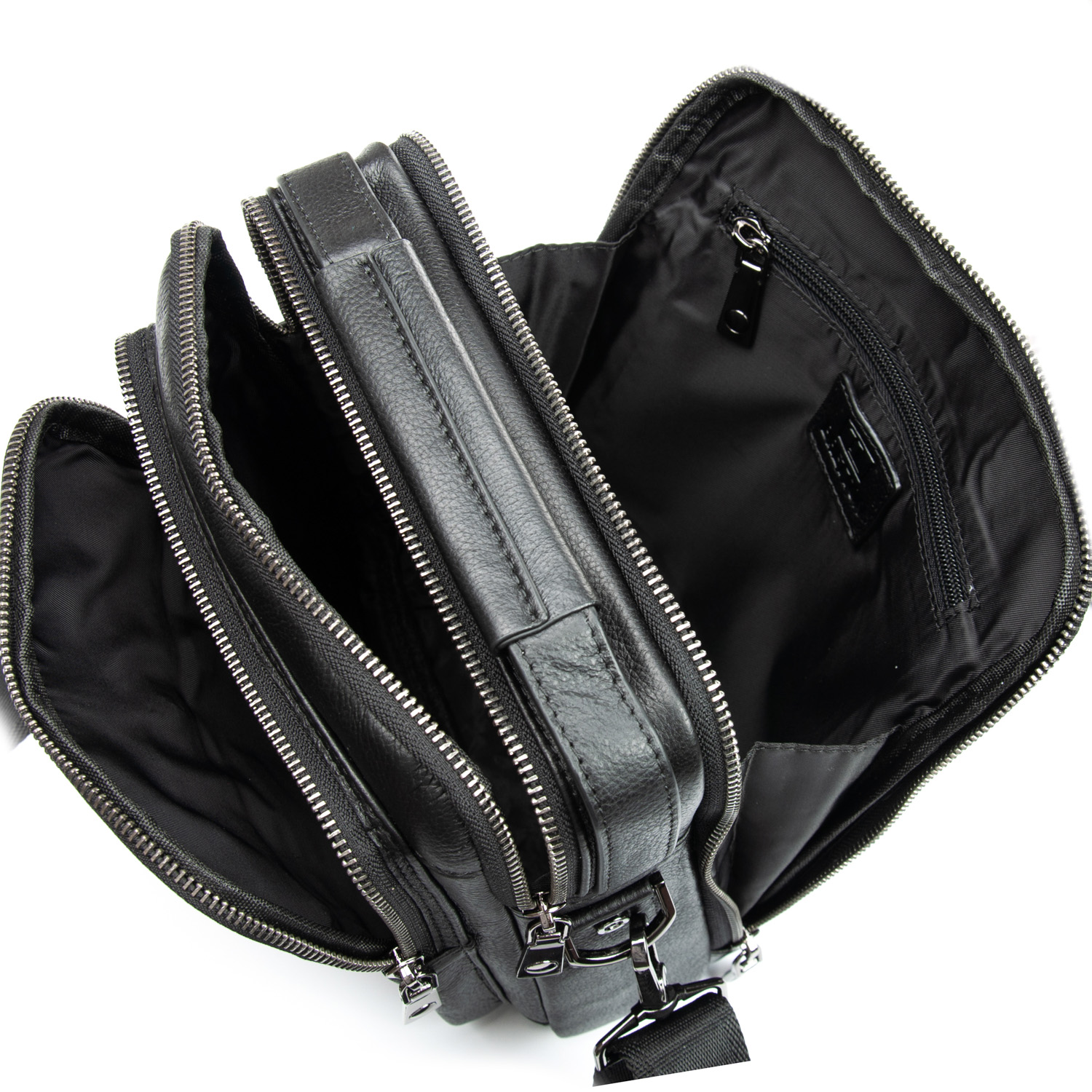 Изготовлена из мягкой натуральной кожи. Два отделения, закрываются на молнию. Внутри отделений есть открытый карман и боковой карман на молнии. На фасаде находятся два кармана на молнии и один на магнитной кнопке, а на обратной стороне сумки есть карман на магнитной кнопке.