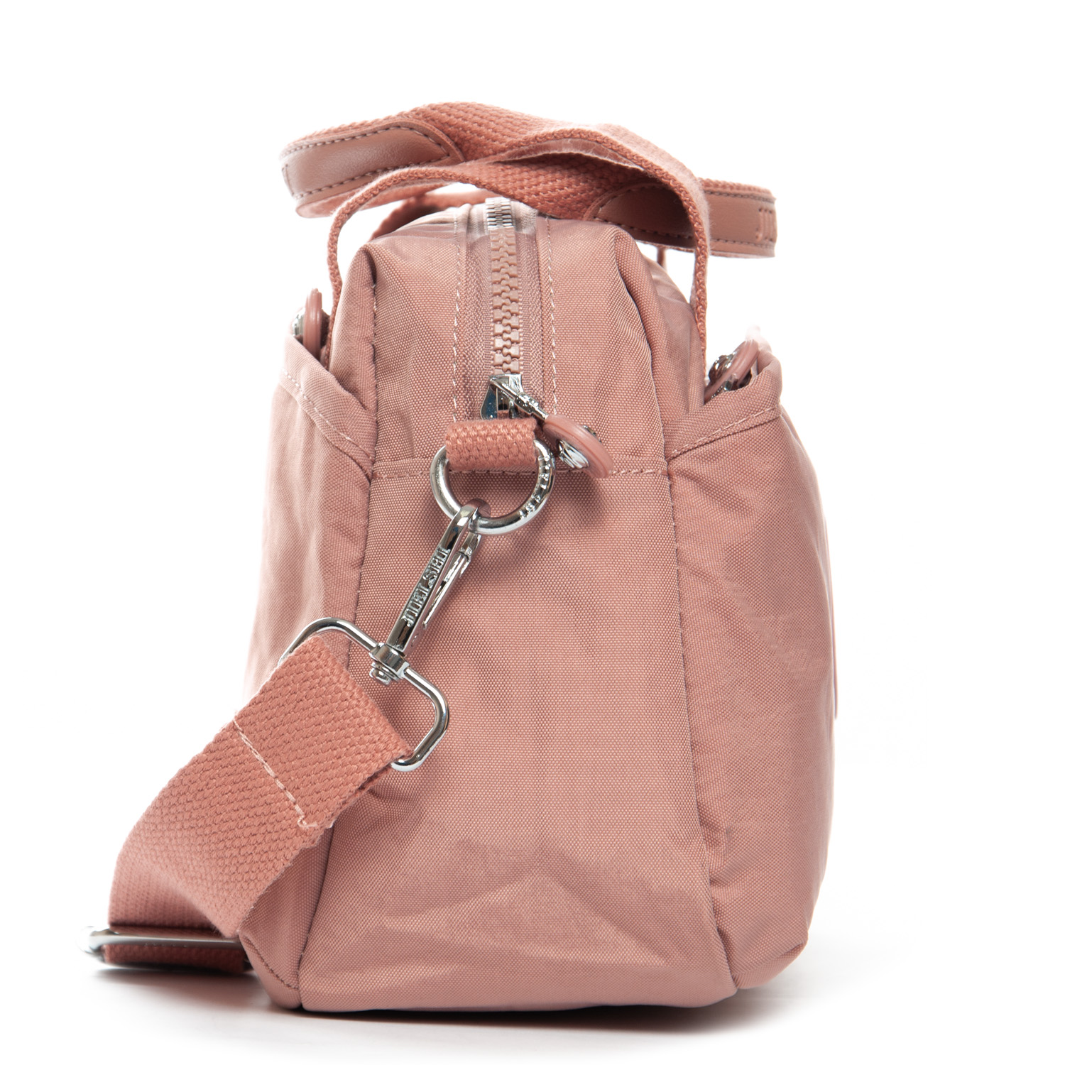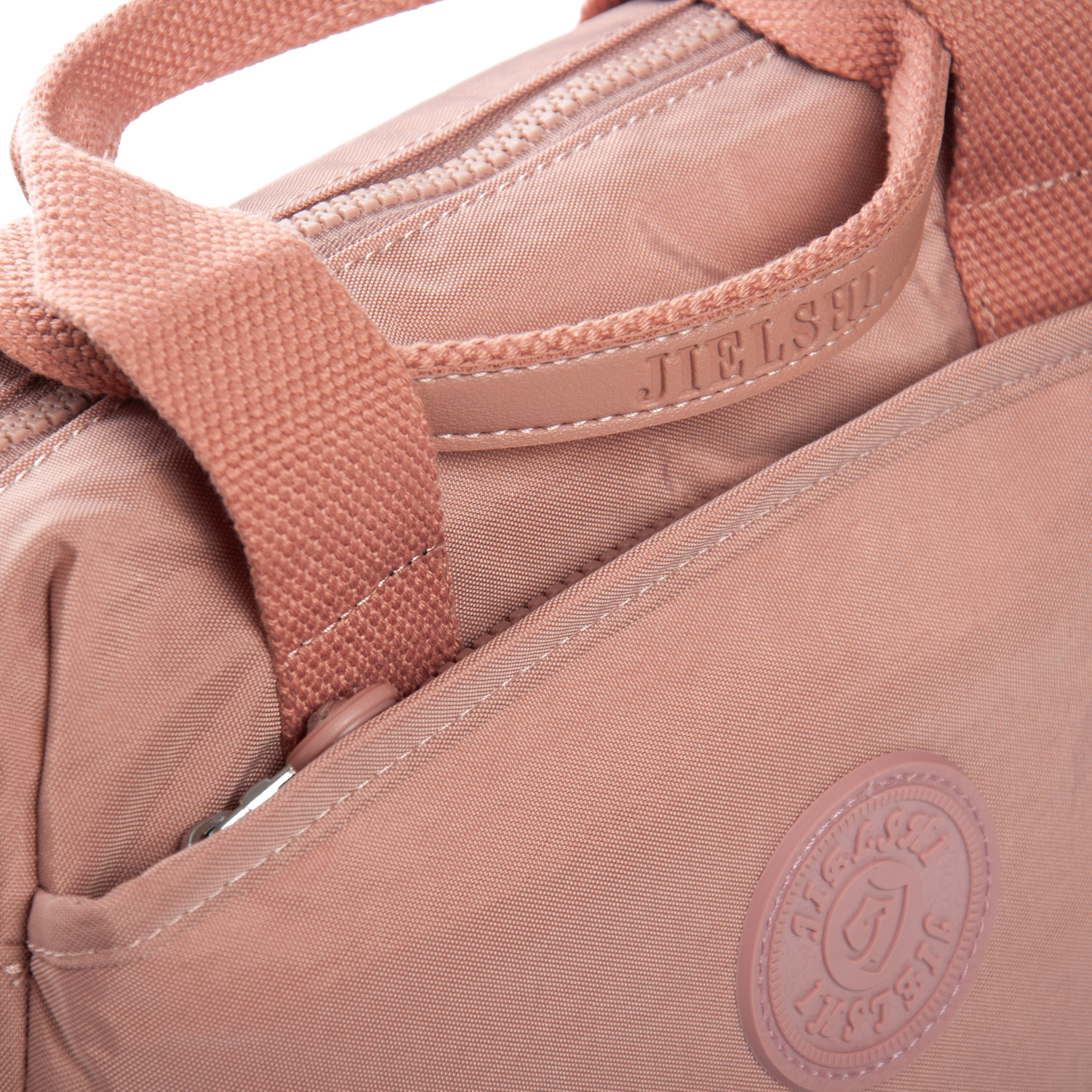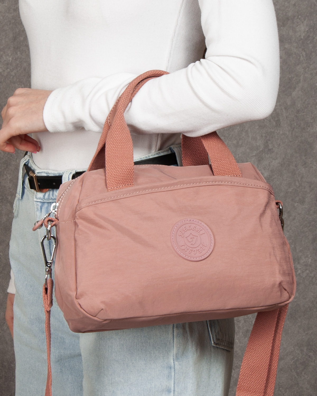 Изготовлена из водоотталкивающего плотного текстиля. Три отделения, закрываются на молнии. Внутри центрального отделения находится большой боковой карман на молнии и открытый двойной карман.