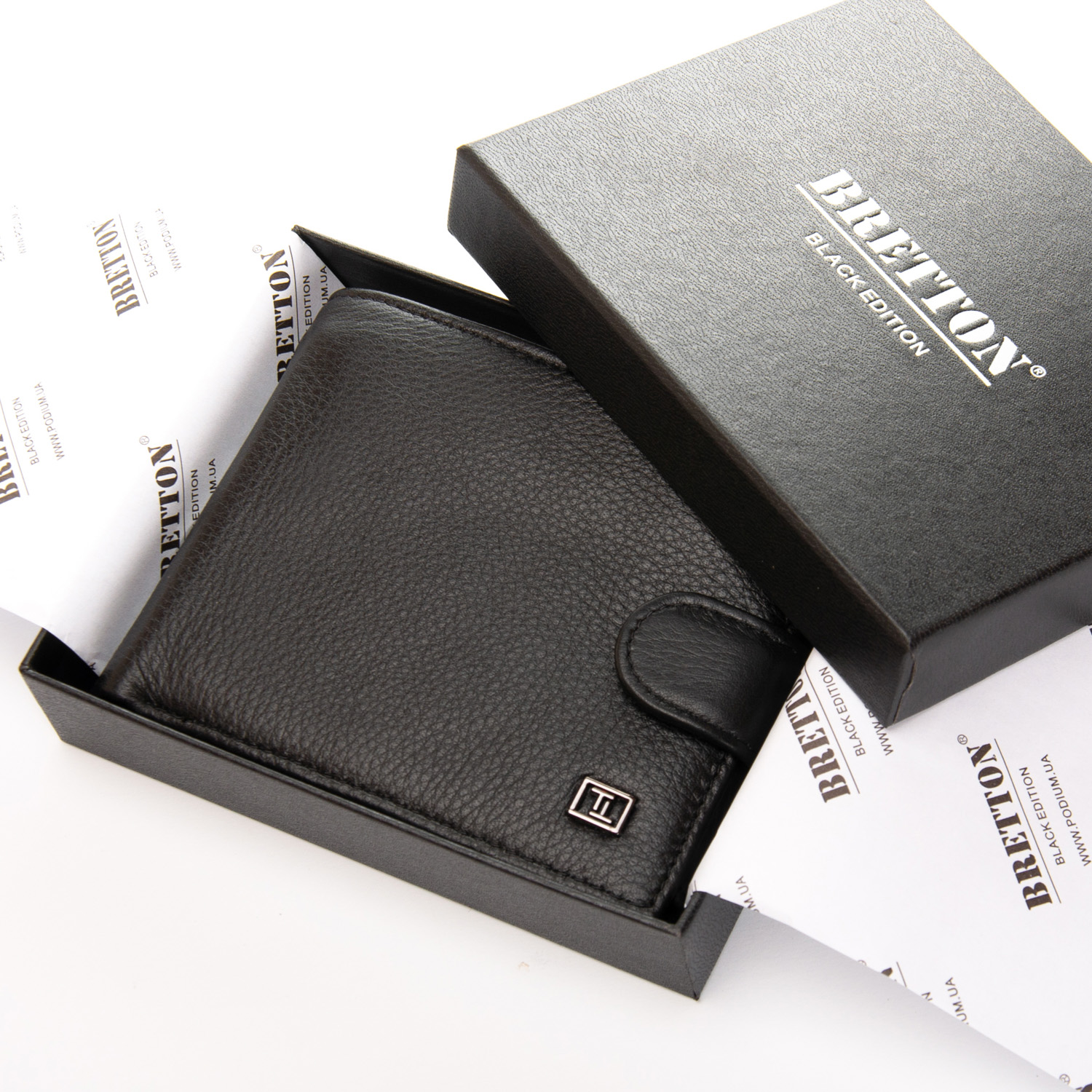 Чоловічий великий шкіряний гаманець Bretton, серія Black Edition.