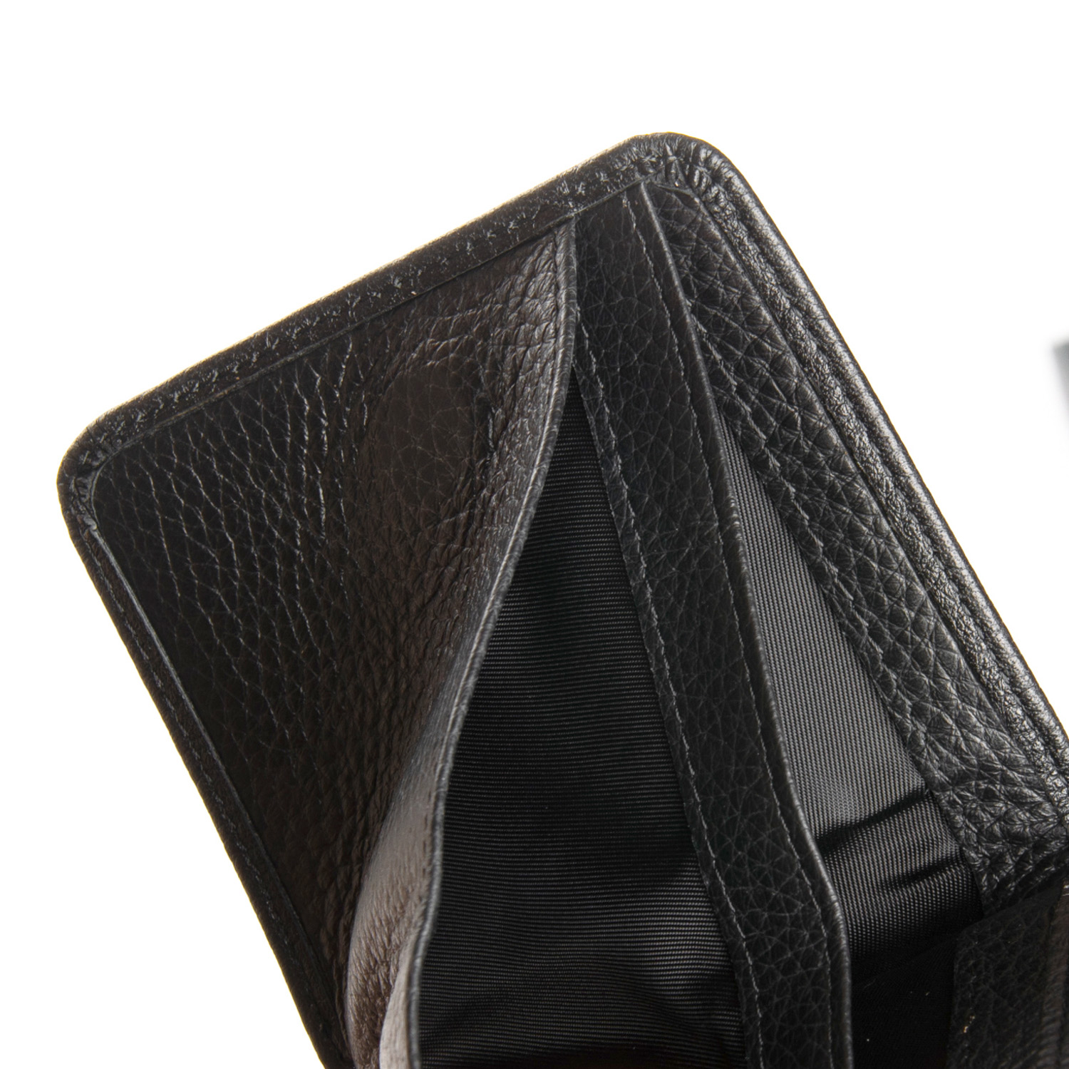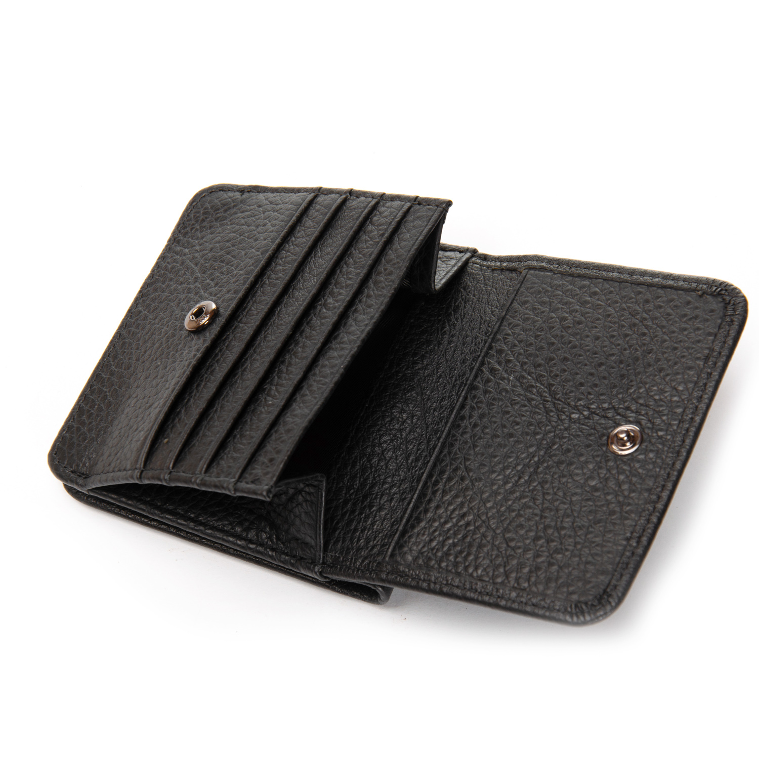 Виготовлений з м'якої натуральної шкіри. Усередині є два відкриті відділення для банкнот. У зовнішньому блоці знаходяться 5 кишень для візитних карт і монетніца на кнопці.