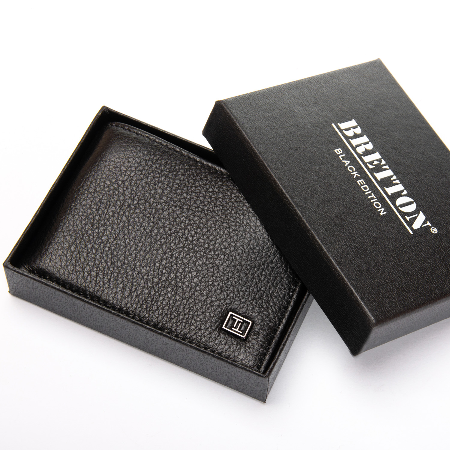 Чоловічий шкіряний гаманець-затиск для банкнотів Bretton, серія Black Edition.