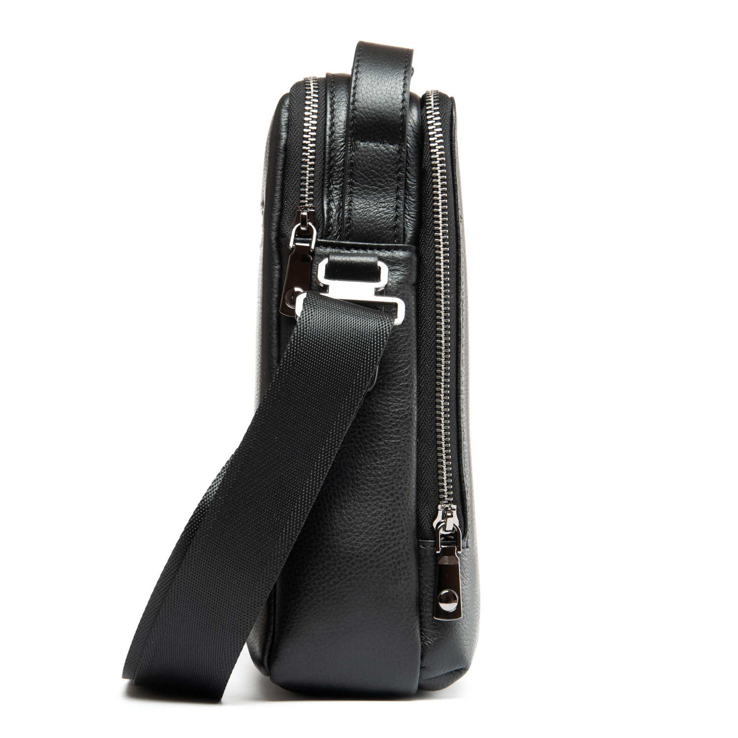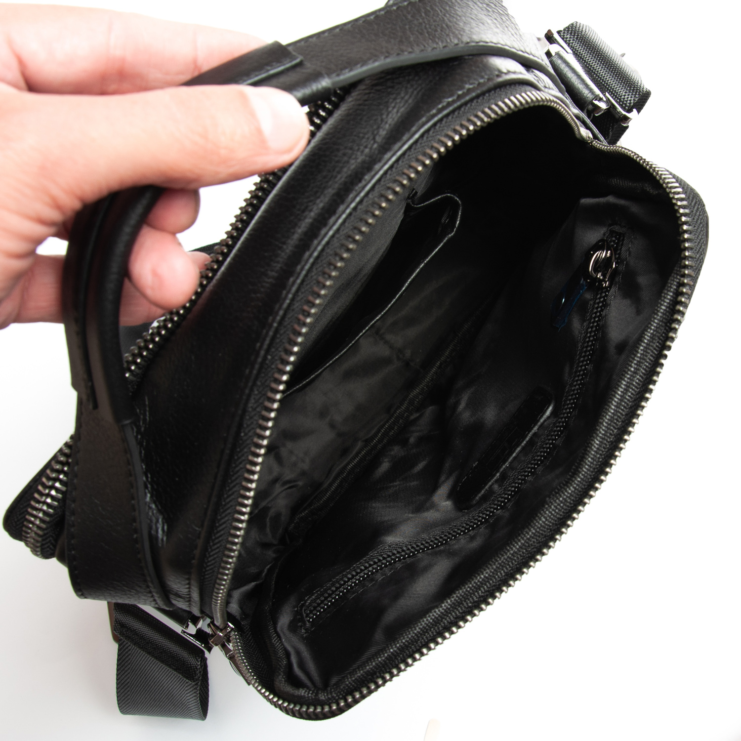 Виготовлена з м'якої натуральної шкіри. Два відділення, закриваються на блискавку. Всередині відділень є відкрита кишеня і бічна кишеня на блискавці. На зворотному боці сумки є кишеня на блискавці.