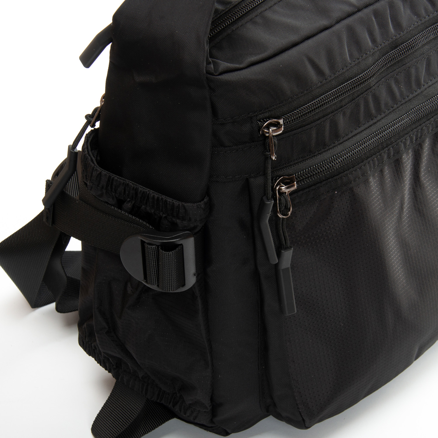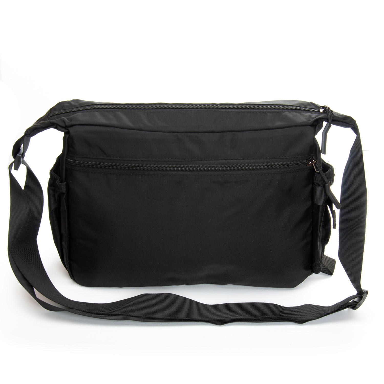 Закривається на блискавку. Усередині знаходиться подвійне відділення, розділене перегородкою, кишеня на блискавці та відкрита подвійна кишеня. На фасаді та зворотному боці знаходяться місткі кишені на блискавці. На торцях сумки також розташовані відкриті кишені. Регульований плечовий ремінь шириною 4см.