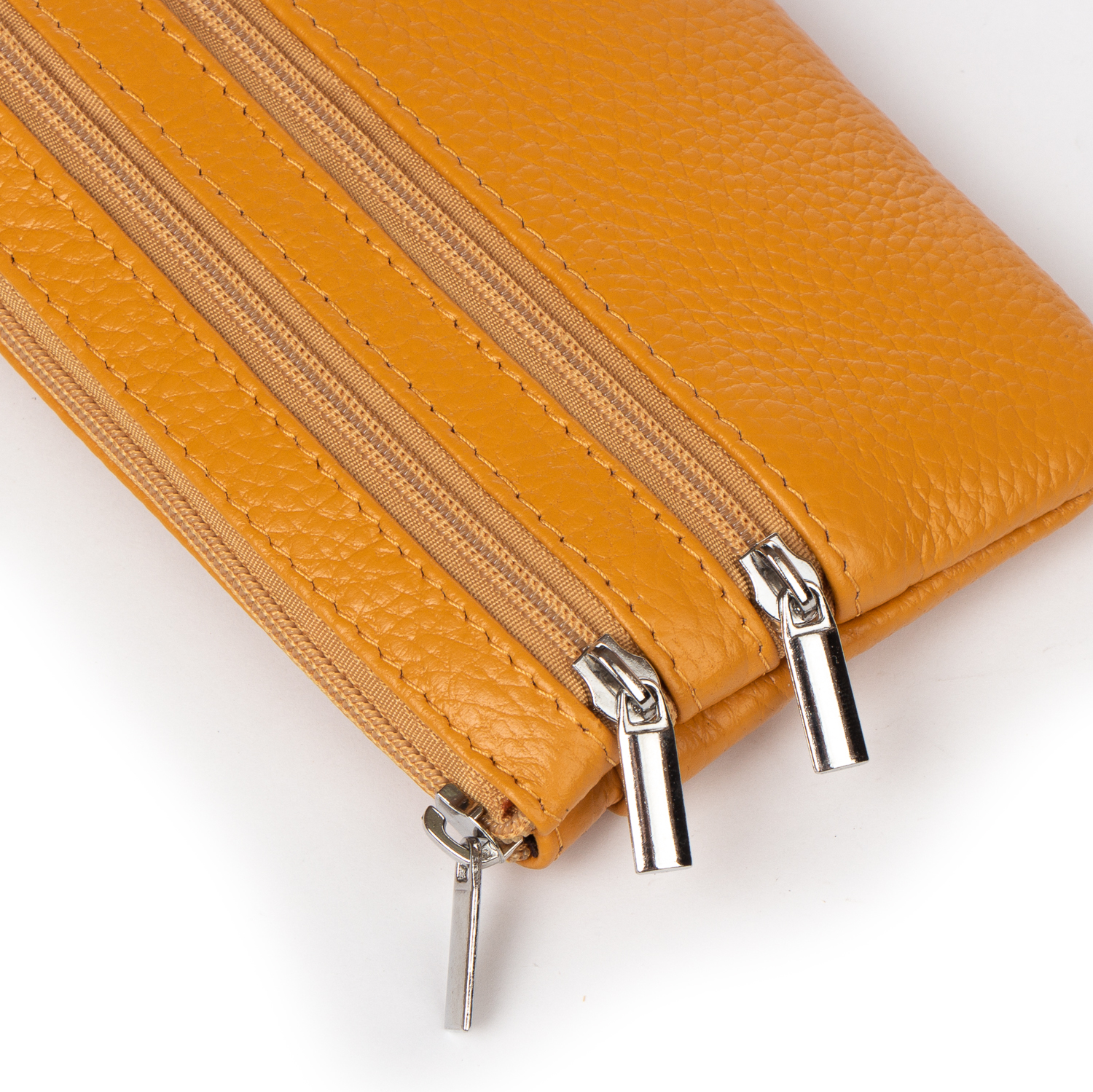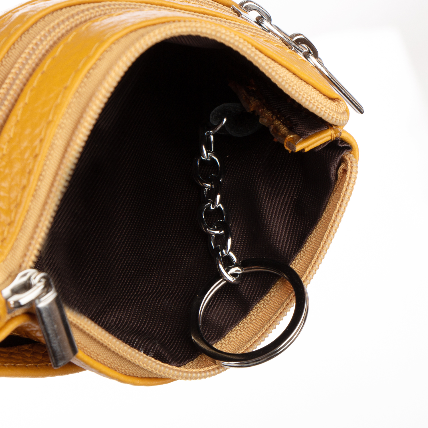 Жіноча шкіряна косметичка – ключниця. Одне відділення для ключів закривається на блискавку. На фасаді розташовані дві кишені на блискавці, а на звороті одна відкрита кишеня.