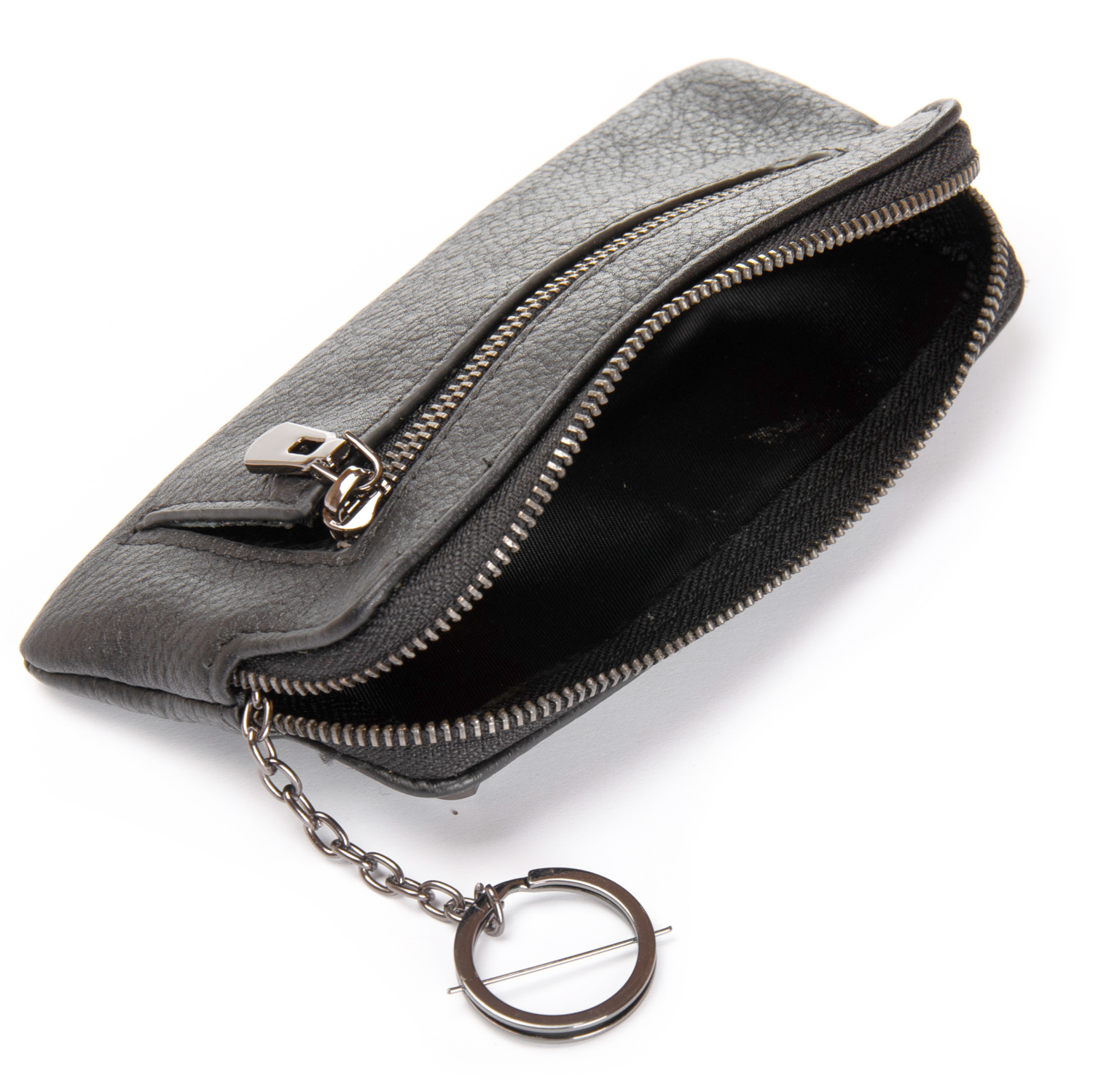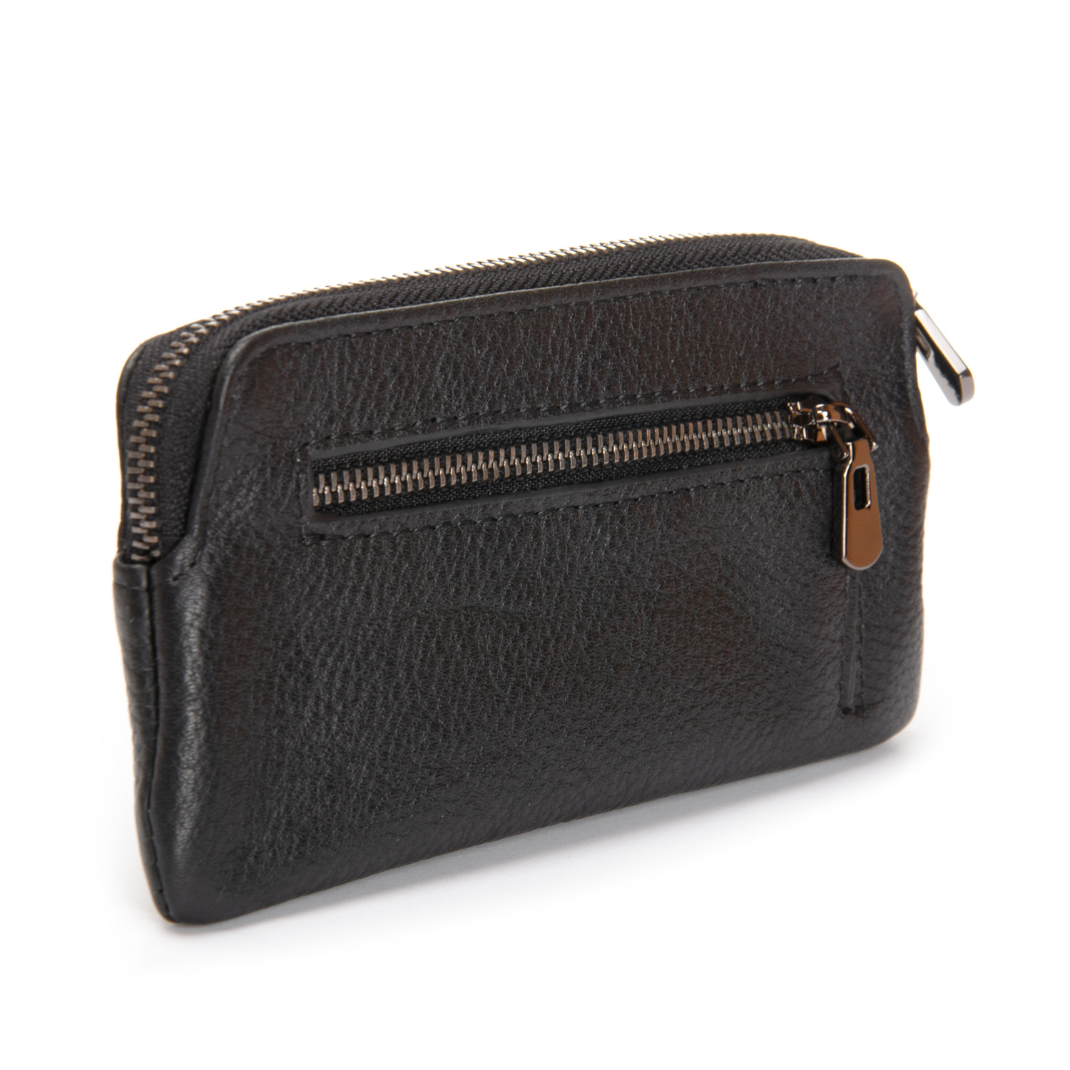 Виготовлений із м'якої натуральної шкіри. Основне відділення для ключів закривається на блискавку. Зовні, на фасаді та на звороті є кишені на блискавці.