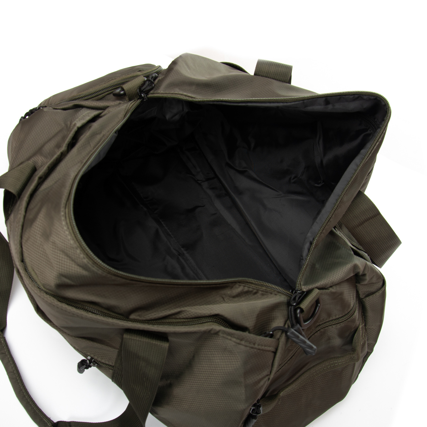 Одне відділення, закривається на блискавку. Всередині відділення є велика бічна кишеня на блискавці. Зовні також розташована велика кишеня-відділення на блискавці з герметичною підкладкою. На фасаді знаходяться три відкриті кишені. На зворотному боці розташована кишеня на блискавці і кріплення на ручку валізи. На торцях сумки є дві кишені на блискавці, одна з яких призначена для взуття.