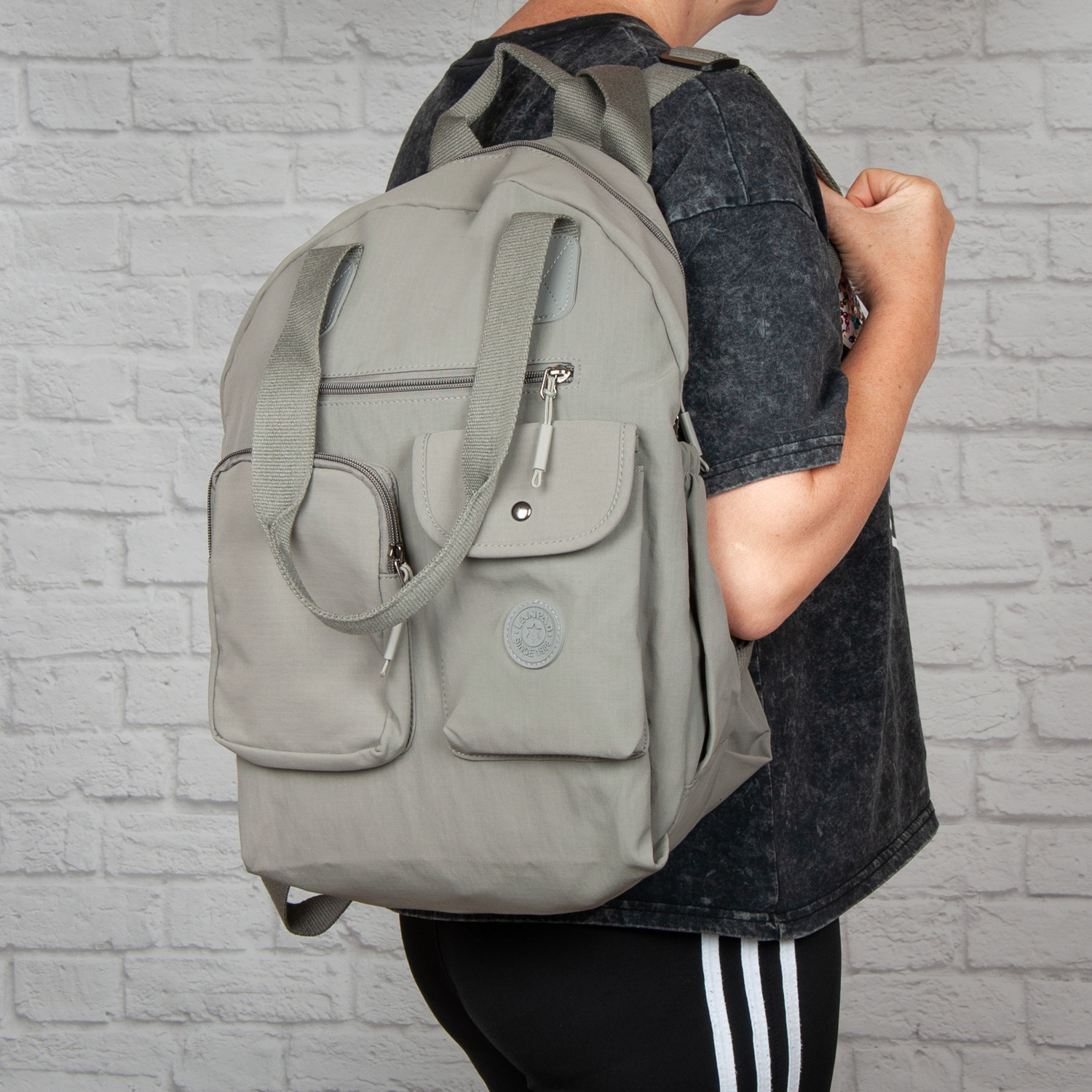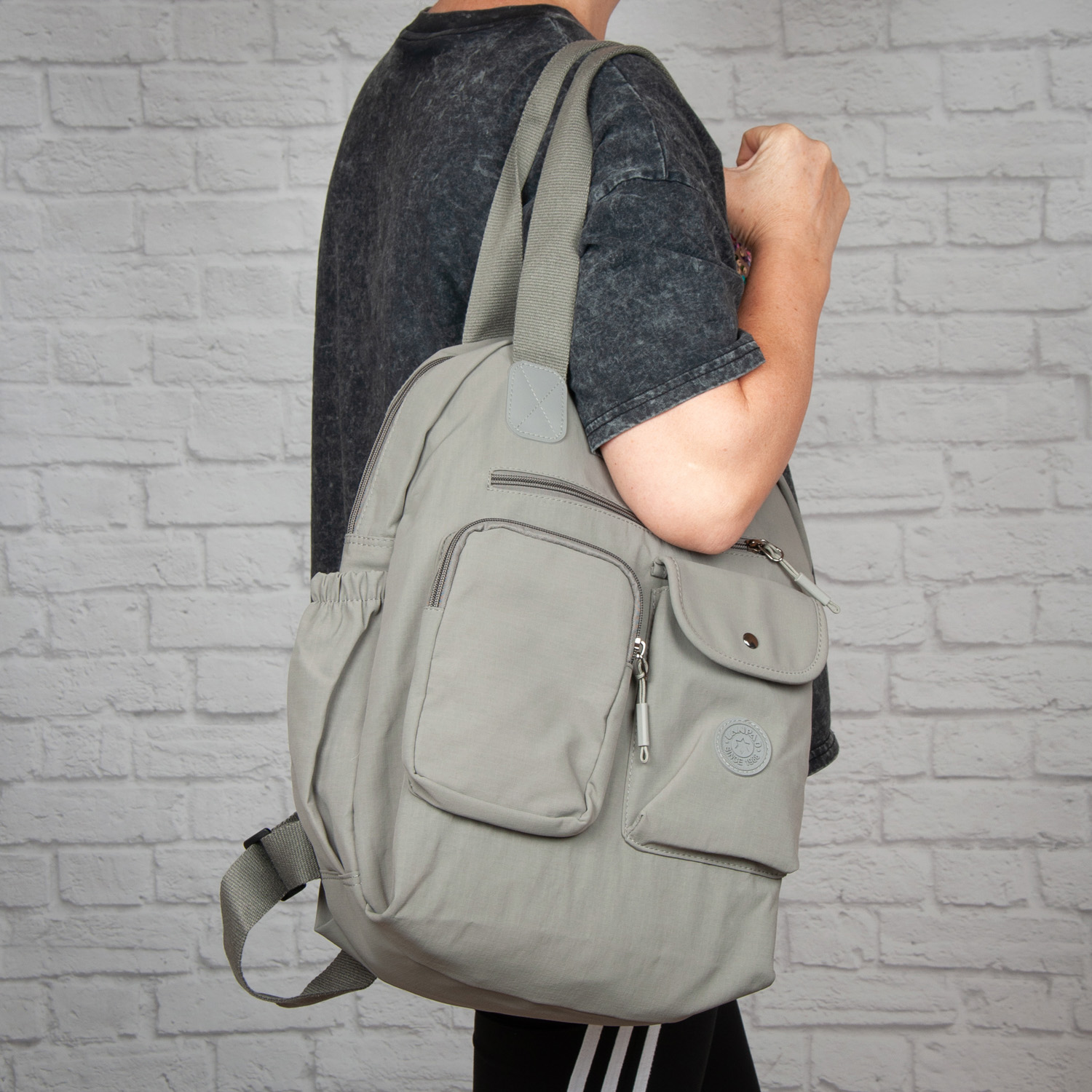 Можна носити як сумку за ручки, на плечі або як рюкзак на спині.