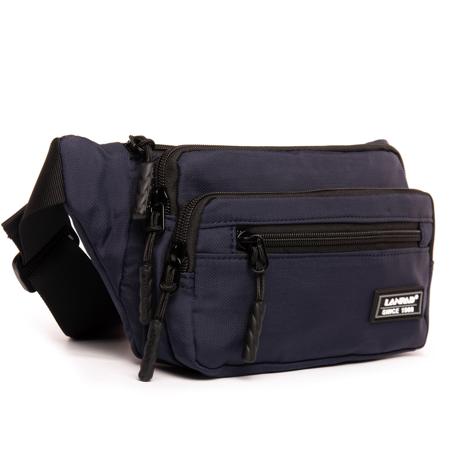 Чоловіча сумка на пояс/плече Lanpad. Два відділення, закриваються на блискавку. В основному відділенні є бічна кишеня на блискавці. На фасаді сумки знаходяться місткі кишені на блискавці.