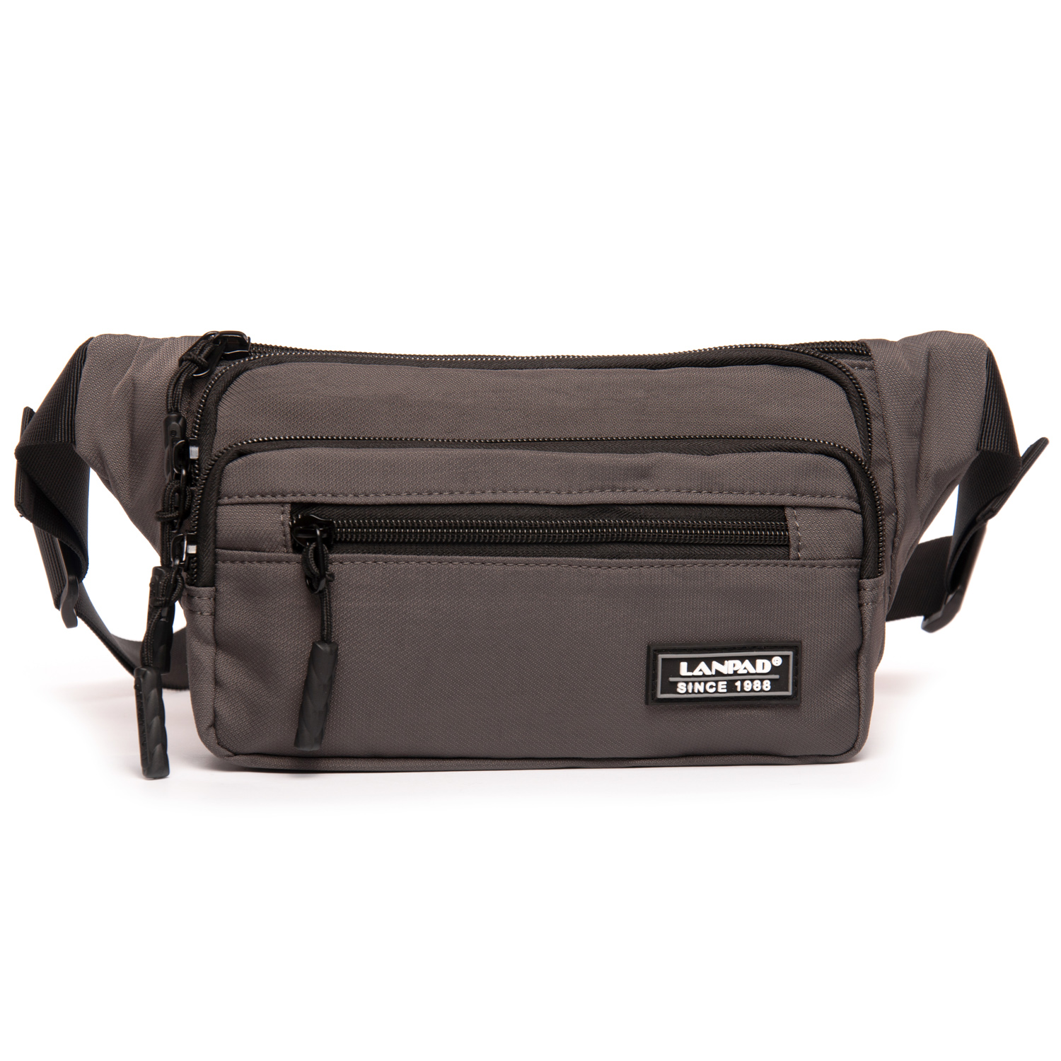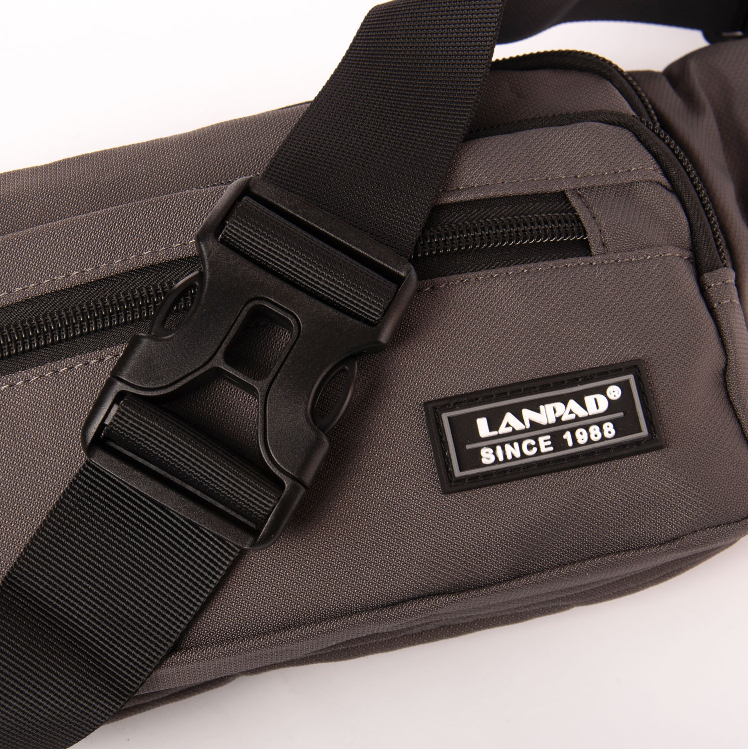 Чоловіча сумка на пояс/плече Lanpad. Два відділення, закриваються на блискавку. В основному відділенні є бічна кишеня на блискавці. На фасаді сумки знаходяться місткі кишені на блискавці.