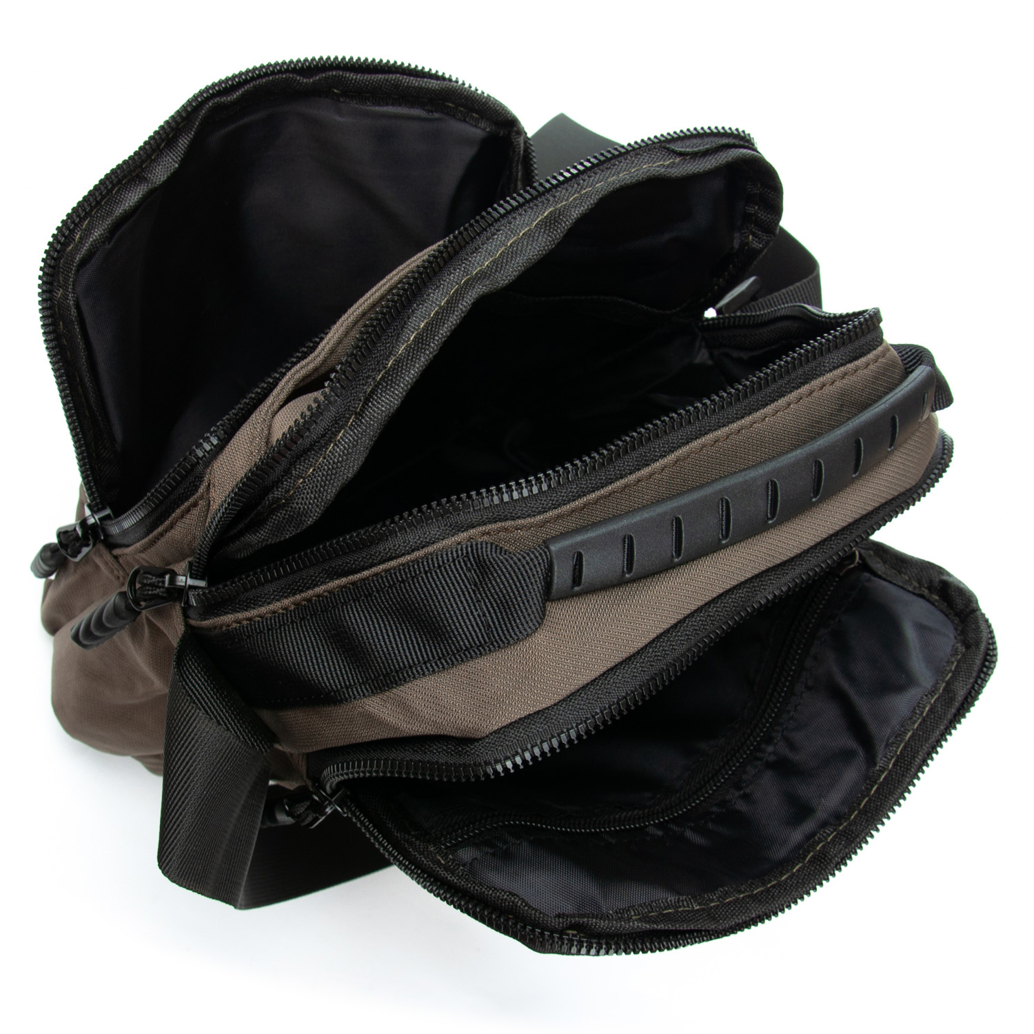 Два великих відділення, закриваються на блискавку. Всередині відділень є бічна кишеня на блискавці і відкрита кишеня. На фасаді розташовані дві місткі кишені: одна відкрита і друга на блискавці. На зворотному боці сумки знаходиться одна кишеня на блискавці.