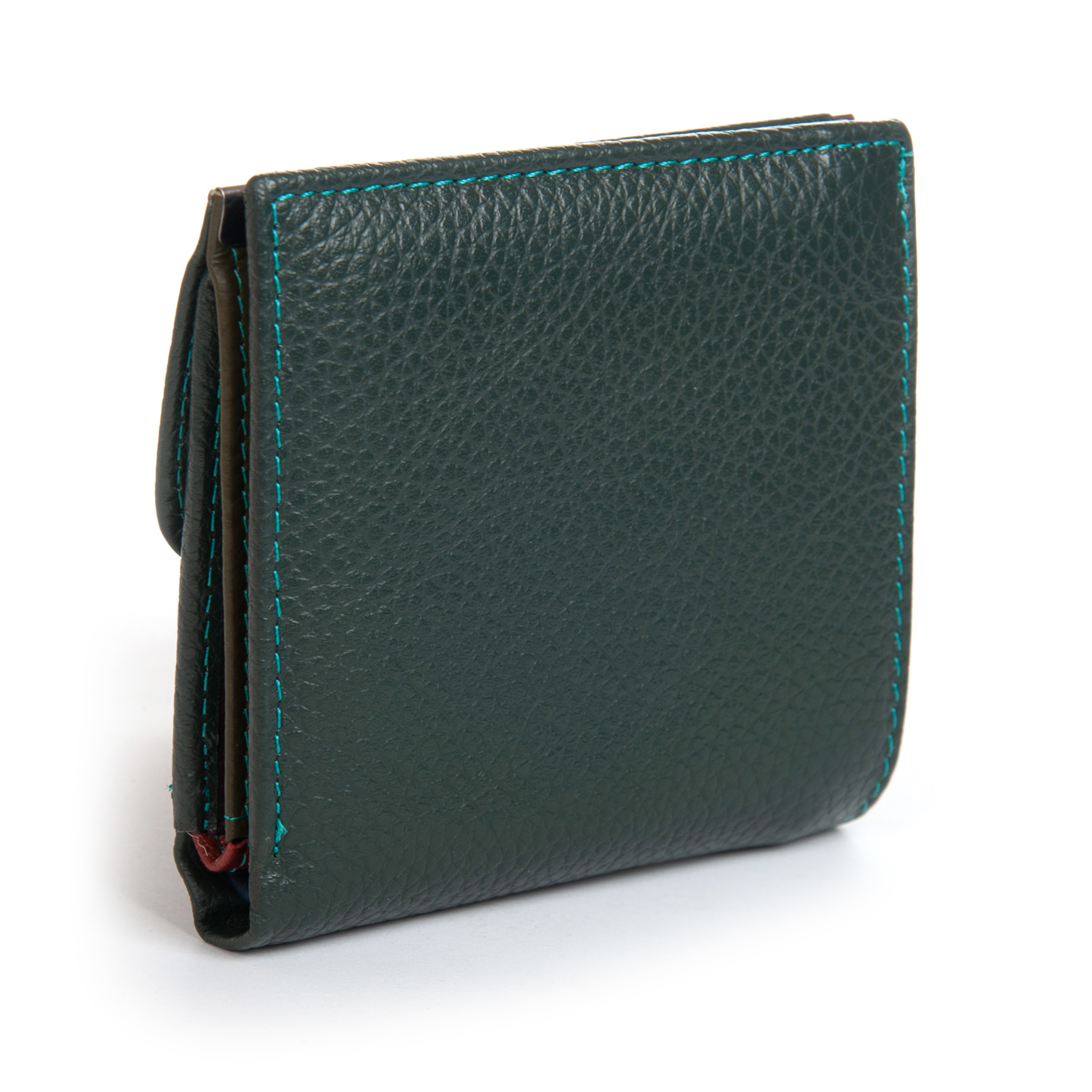 Всередині знаходяться 2 відкритих відділення для банкнот, розділені шкіряною перегородкою і одне відділення на блискавці, 5 кишень для візитних карток. Зовні гаманця на фасаді розташована кишеня-монетниця під клапаном на кнопці.