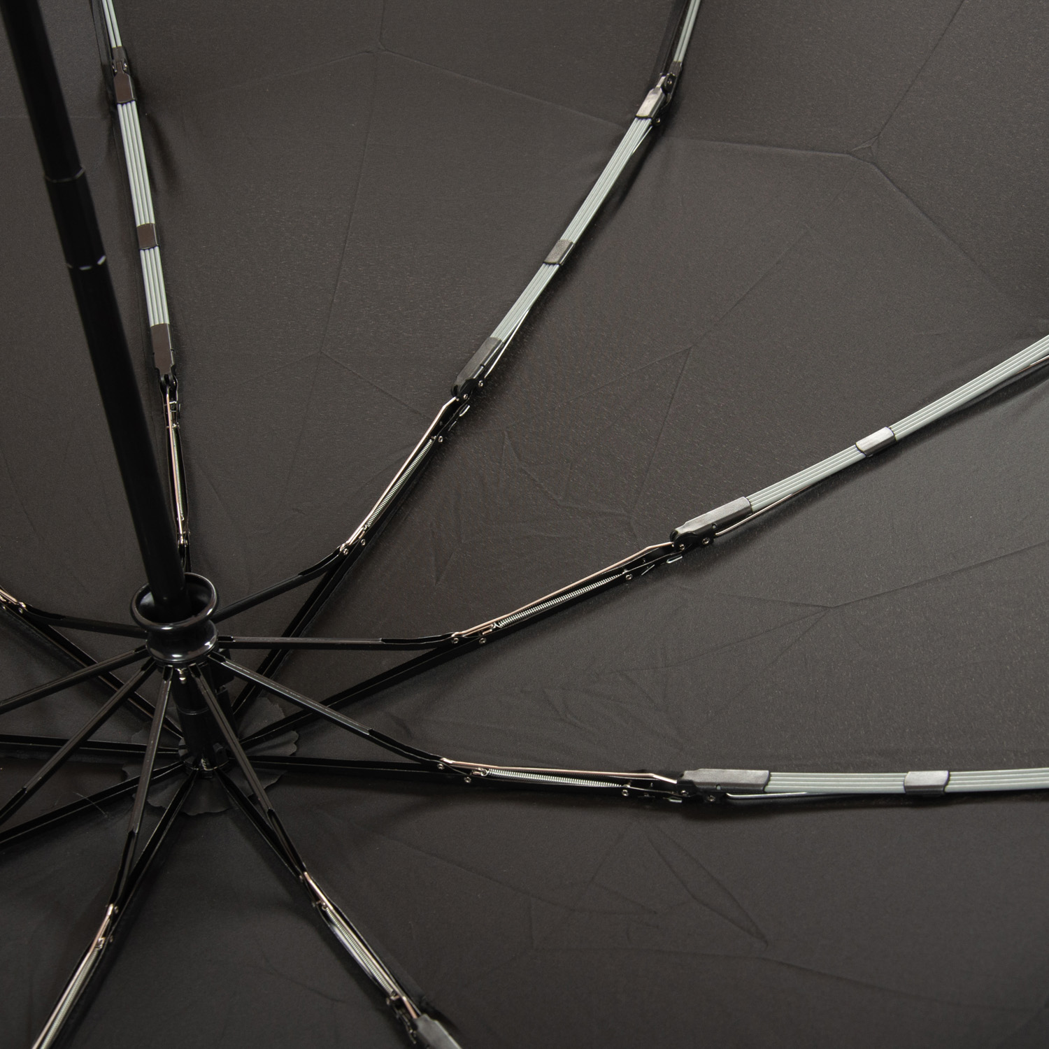Три складання, вітронепроникний купол виконаний з pongee. Вентильовані спиці з вітрозахистом з металу + карбон (9 шт.). Купол 100 см, стрижень 62 см (у складеному стані 32 см).