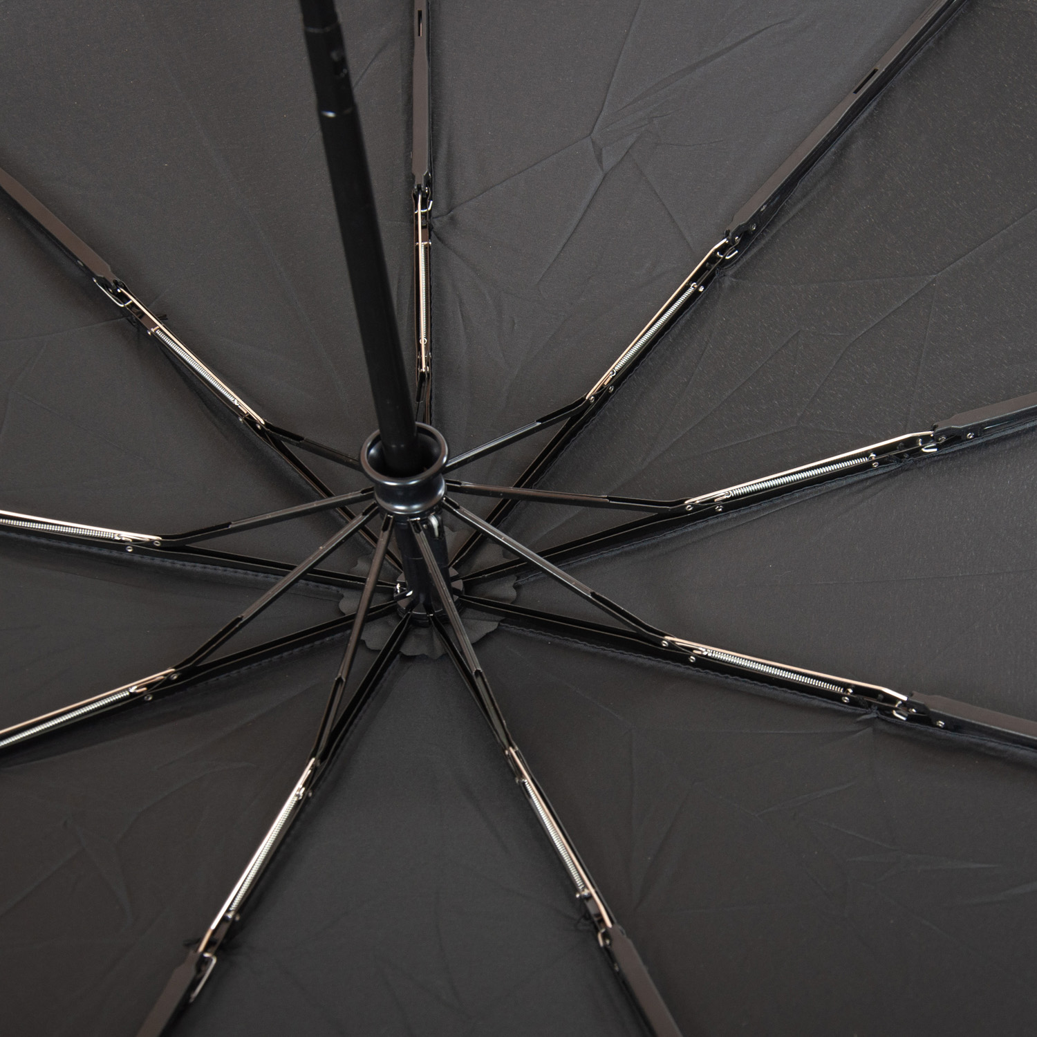 Три складання, вітронепроникний купол виконаний з pongee. Вентильовані спиці з вітрозахистом з металу + карбон (9 шт.). Купол 100 см, стрижень 62 см (у складеному стані 32 см).