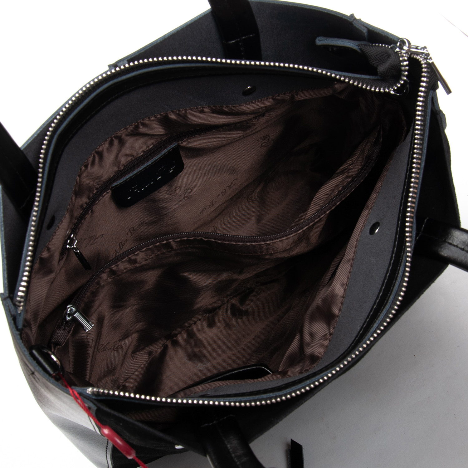 Застібається на блискавку. Всередині знаходиться подвійне відділення, розділене кишенею-перегородкою на блискавці, подвійна відкрита кишеня та кишеня на блискавці на внутрішніх стінках сумки. На фасаді та зворотному боці розташовані кишені на блискавці. Дно сумки з ущільненням, з металевими ніжками.