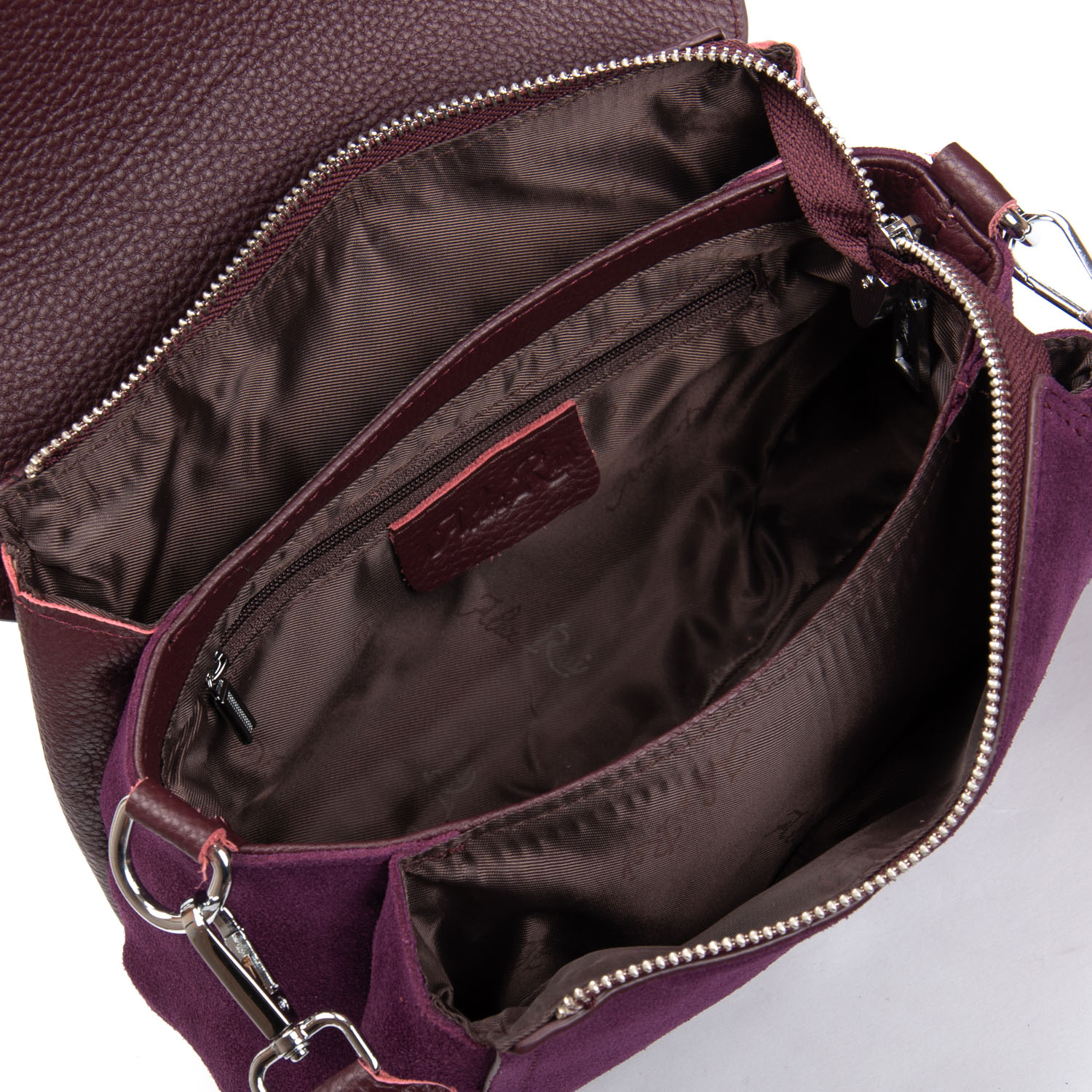 Під клапаном знаходяться три відділення, які додатково закриваються на загальну блискавку. Усередині центрального відділення є бічна кишеня на блискавці та відкрита кишеня. Зовні сумки на зворотному боці знаходиться кишеня на блискавці. Клапан закривається на магнітну кнопку.