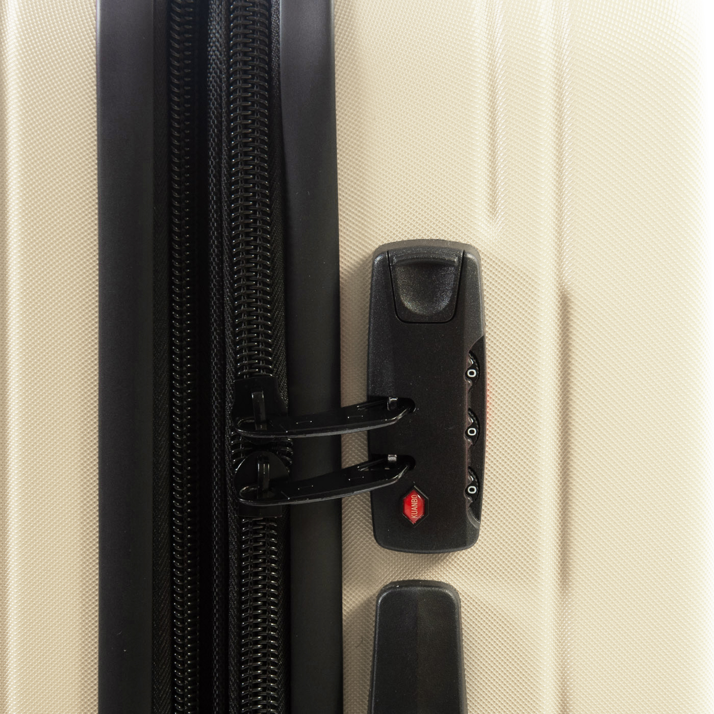 Пластикова валіза, виконана з удароміцного ABS пластику. Закривається на блискавку із кодовим замком. Об'єм валізи можна збільшити використовуючи блискавку розширення (збільшує глибину валізи на 3см). 4 поліуретанові подвійні колеса. Всередині валізи є подвійне відділення з кишенею-перегородкою на блискавці для дрібних речей та стяжки-гумки для фіксації багажу.