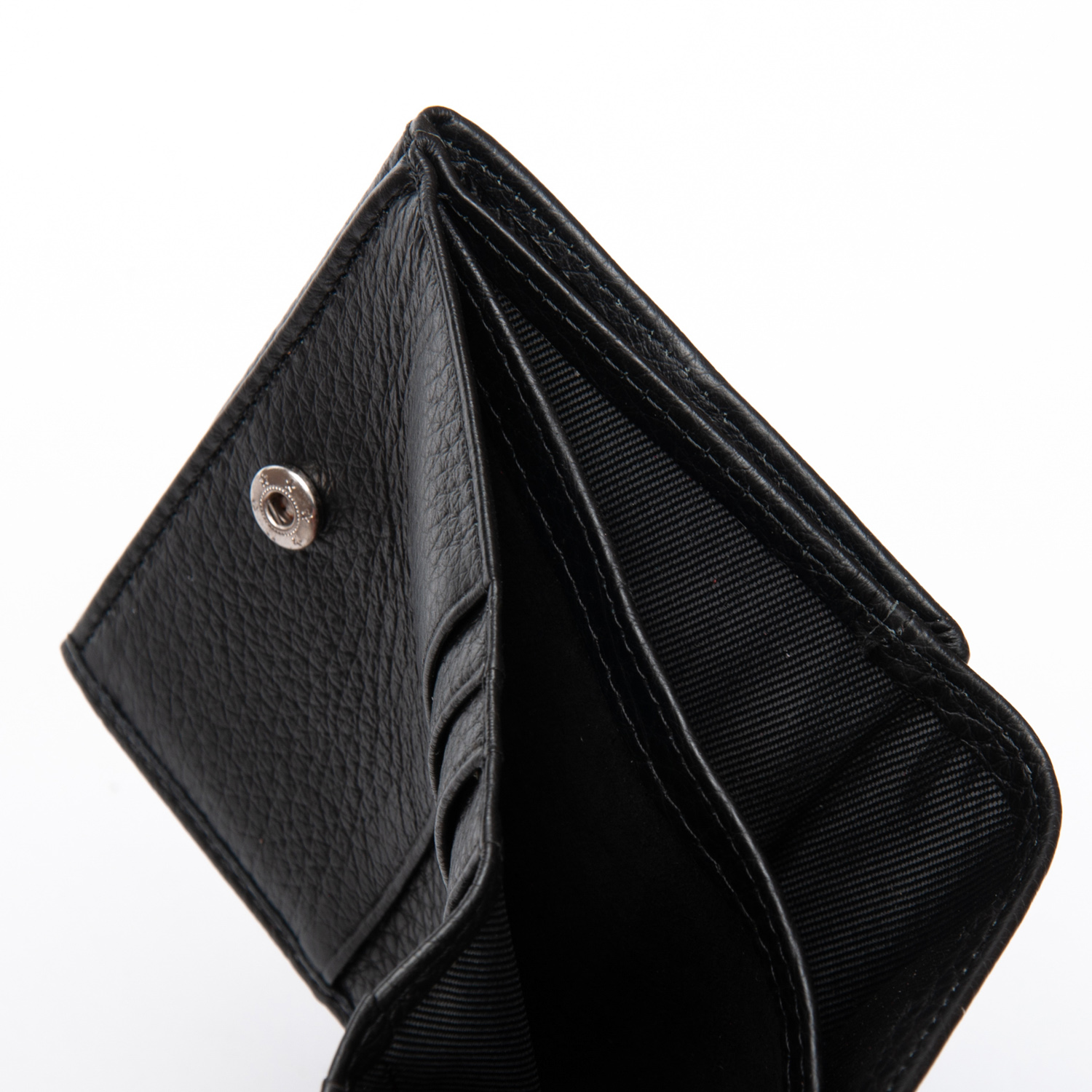 Всередині знаходяться два відкритих відділення для банкнот (розділені шкіряною перегородкою) і 8 кишень для візитних карток. Зовні гаманця на фасаді розташована монетниця під клапаном на кнопці.