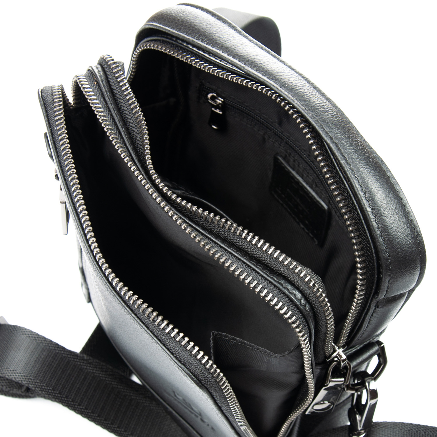 Виготовлена з м'якої натуральної шкіри. Два відділення, закриваються на блискавку. Всередині відділень є відкрита кишеня і бічна кишеня на блискавці. На фасаді і на зворотному боці сумки є кишені на блискавці.