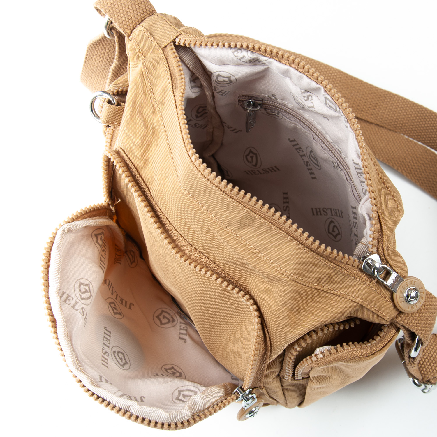 Виготовлена з водовідштовхувального щільного текстилю. Одне основне відділення, закривається на блискавку. Всередині знаходиться бічна кишеня на блискавці. На фасаді, зворотному боці і торцях сумки є кишені на блискавці.